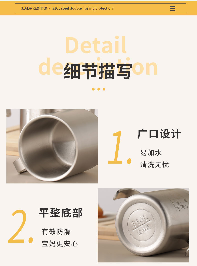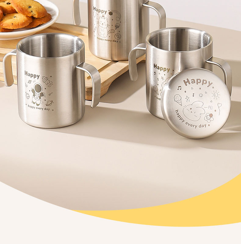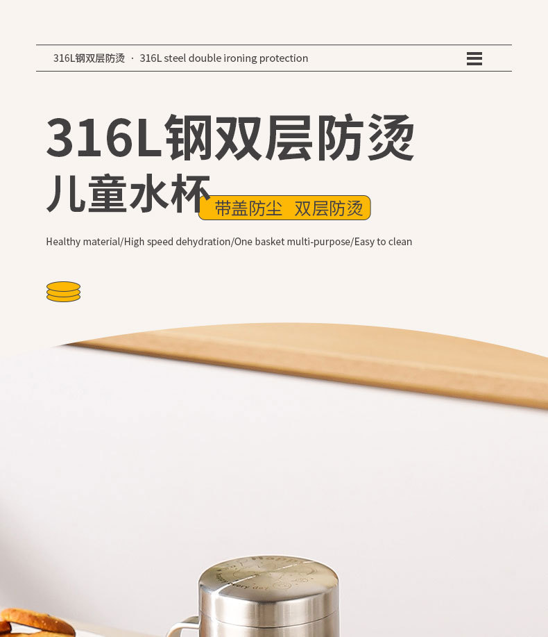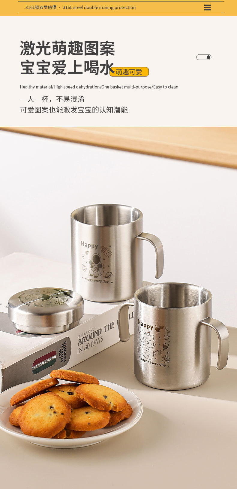 316 스테인레스 스틸 워터 컵, 이중층 화상 방지 어린이 컵, 뚜껑이 있는 방진 머그, 휴대용 사무실 마시는 컵
