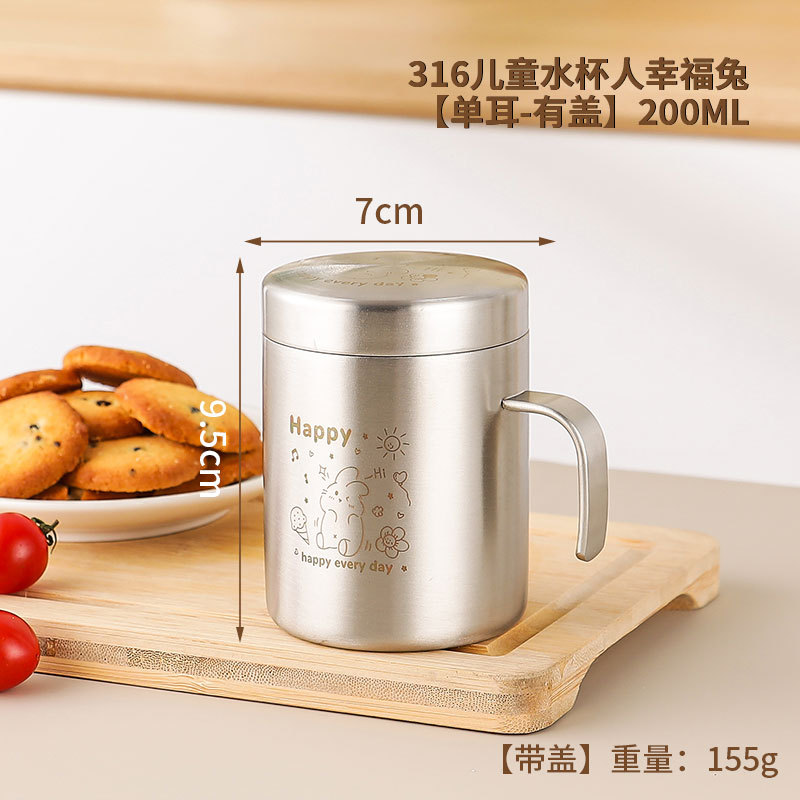 • 316 어린이 물컵 맨행복토끼 [단귀-뚜껑포함]