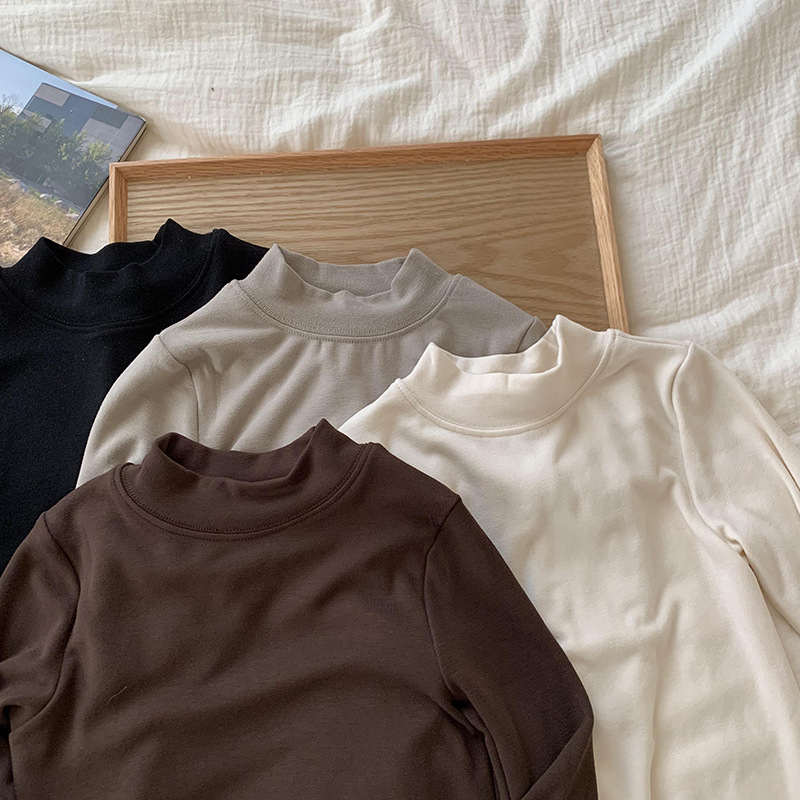 남학생 병 셔츠 마스크 T 긴팔 봄과 가을 반팔 터틀넥 중간 칼라 부드러운 단색 아기 긴팔 티셔츠 트렌디스토어 가기