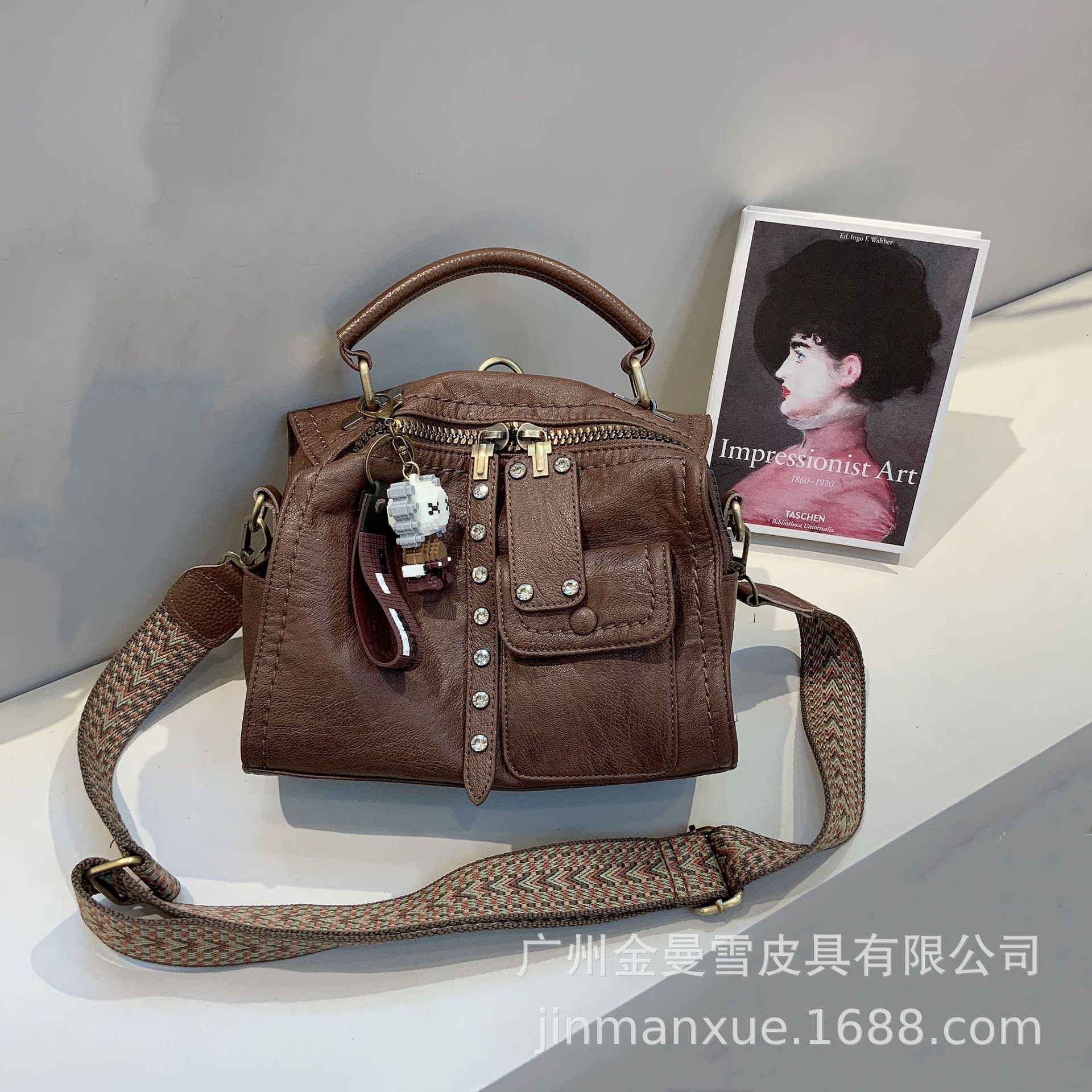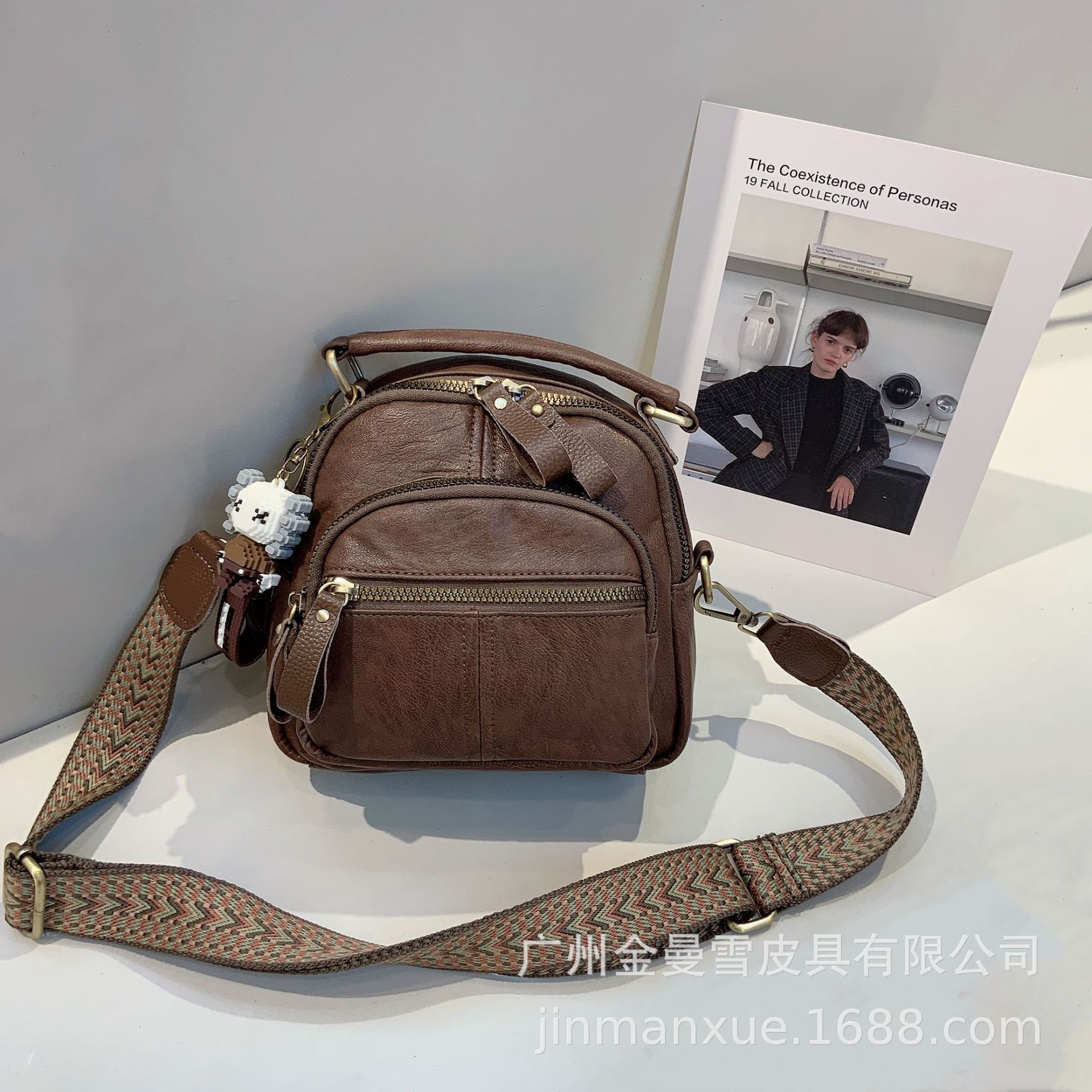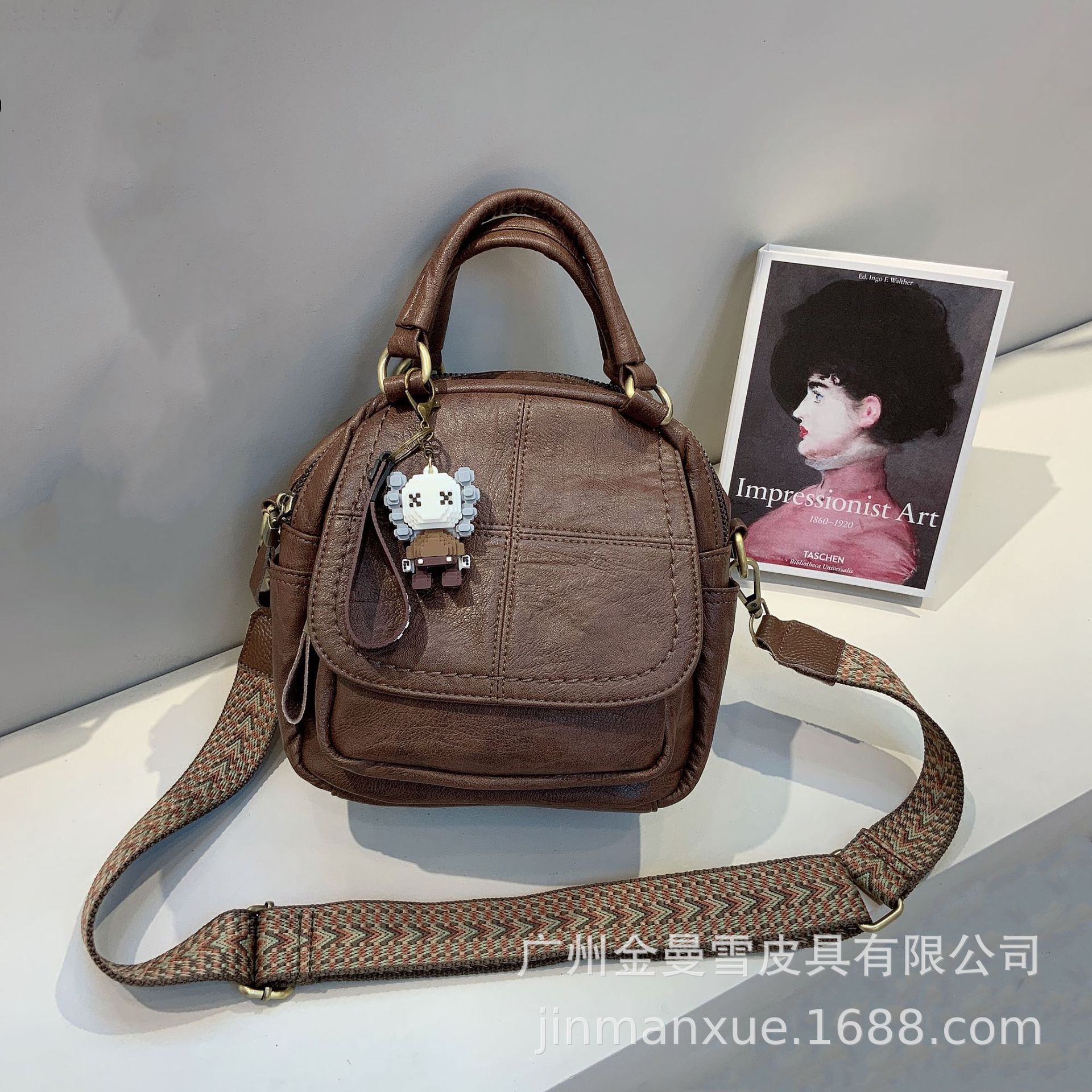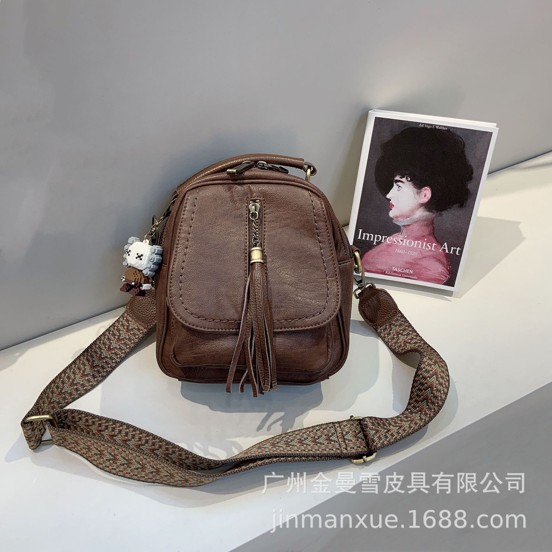 크로스보더 2025 뉴 티카미수 오리지널 핸드메이드 컬리지 레트로 심플 크로스바디 캐주얼 숄더백 백팩스토어 가기