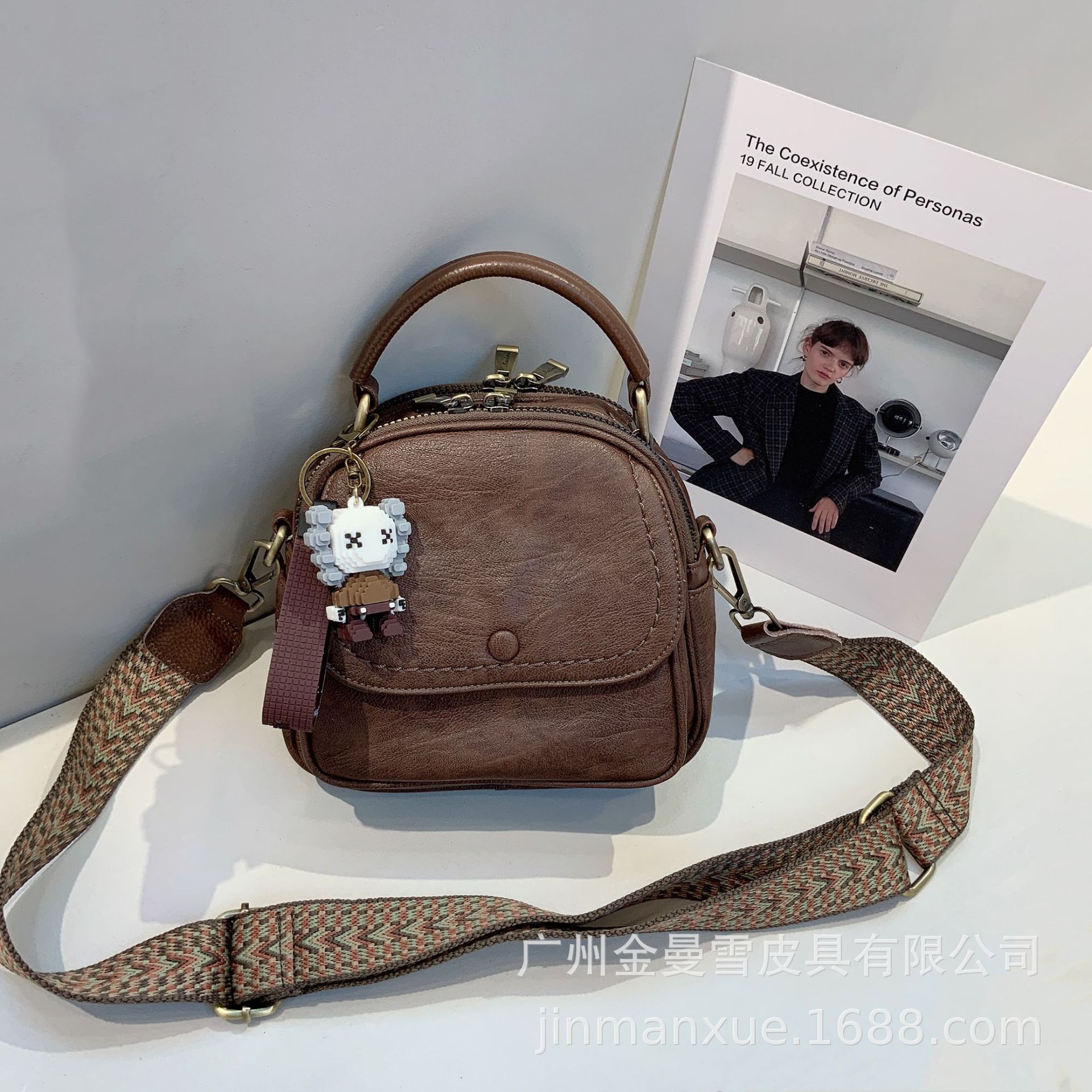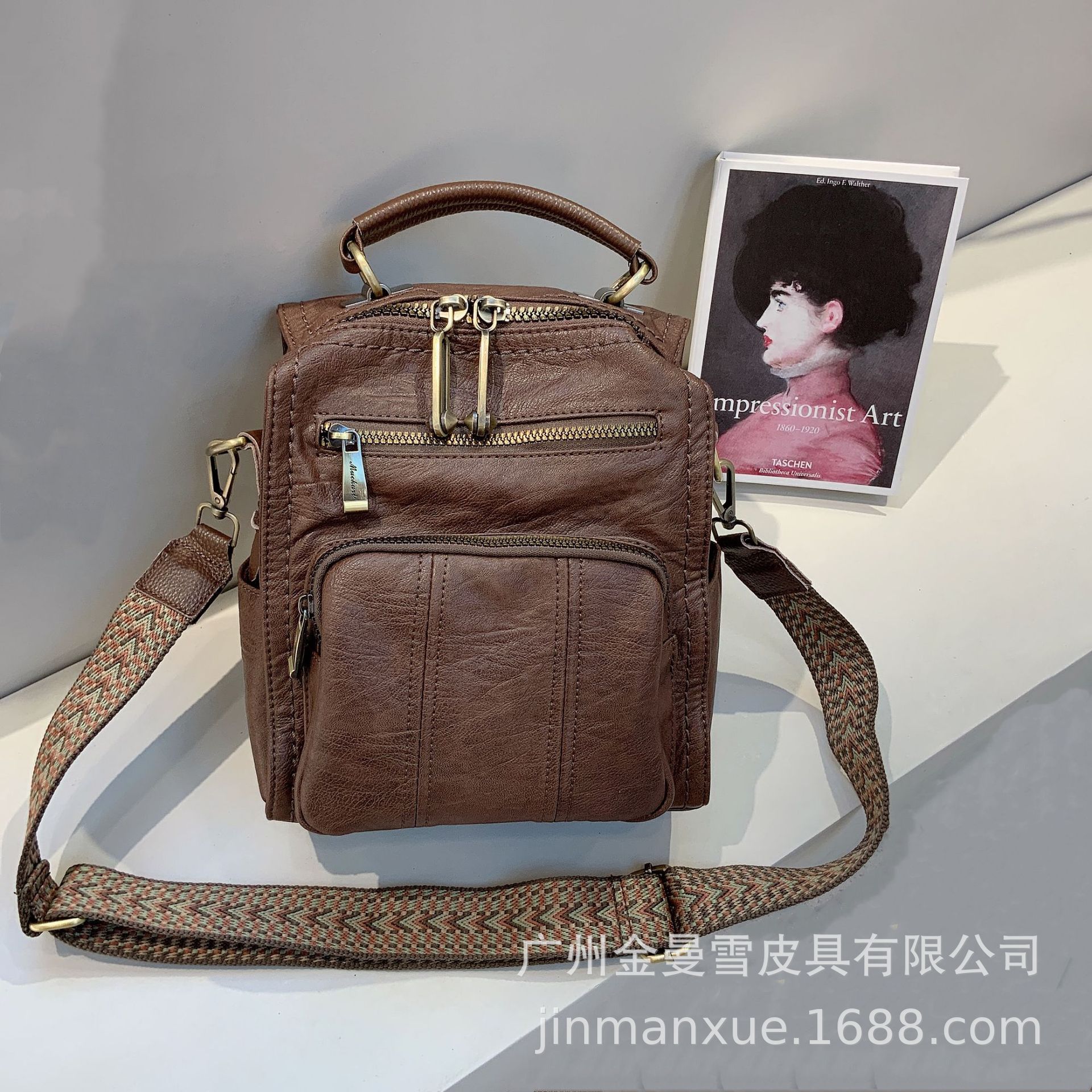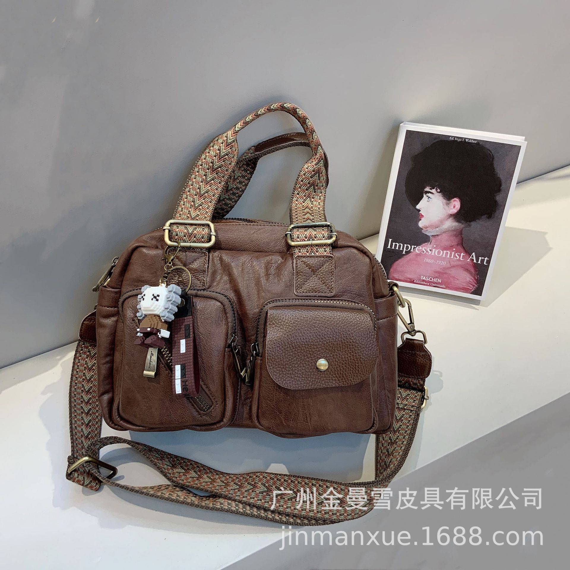 크로스보더 2025 뉴 티카미수 오리지널 핸드메이드 컬리지 레트로 심플 크로스바디 캐주얼 숄더백 백팩스토어 가기