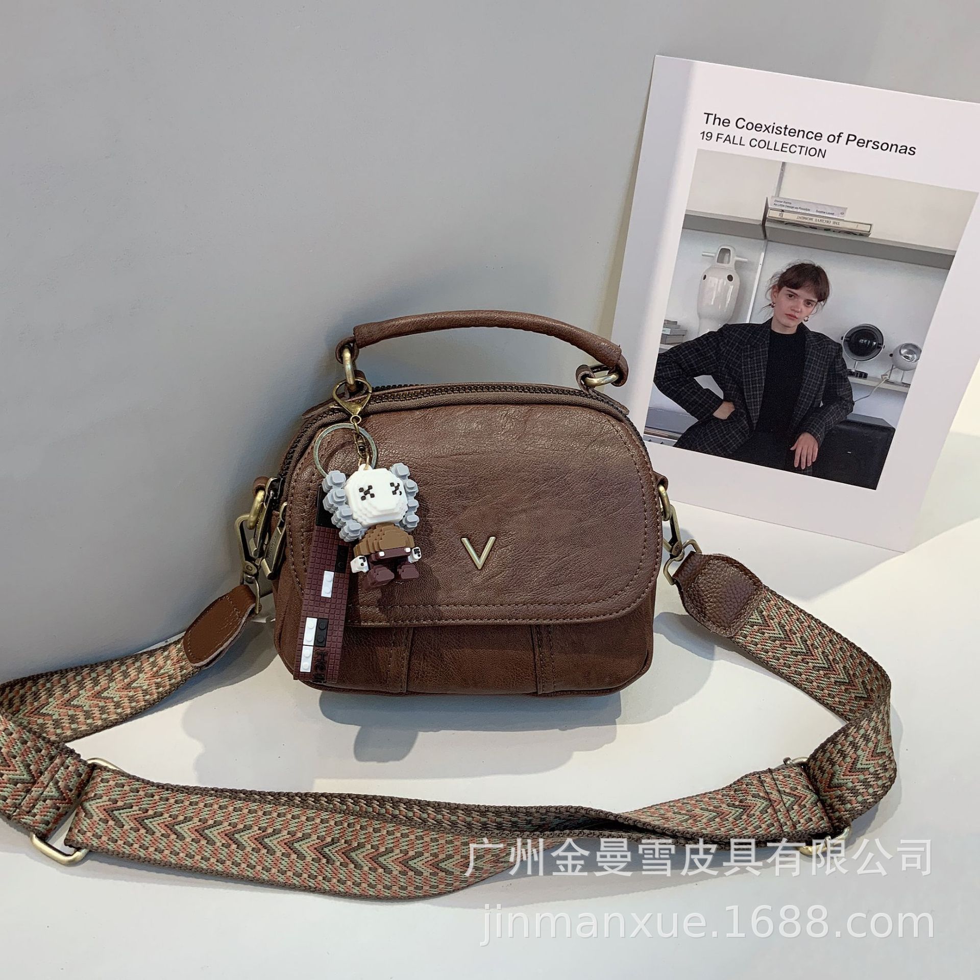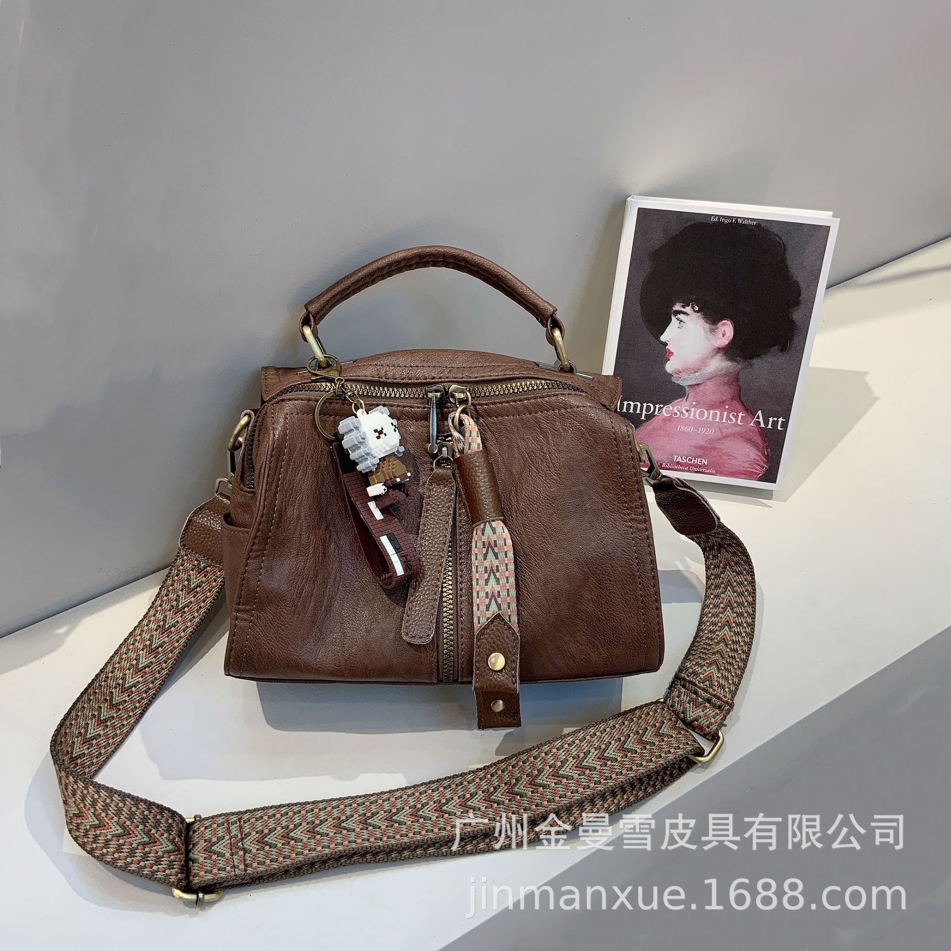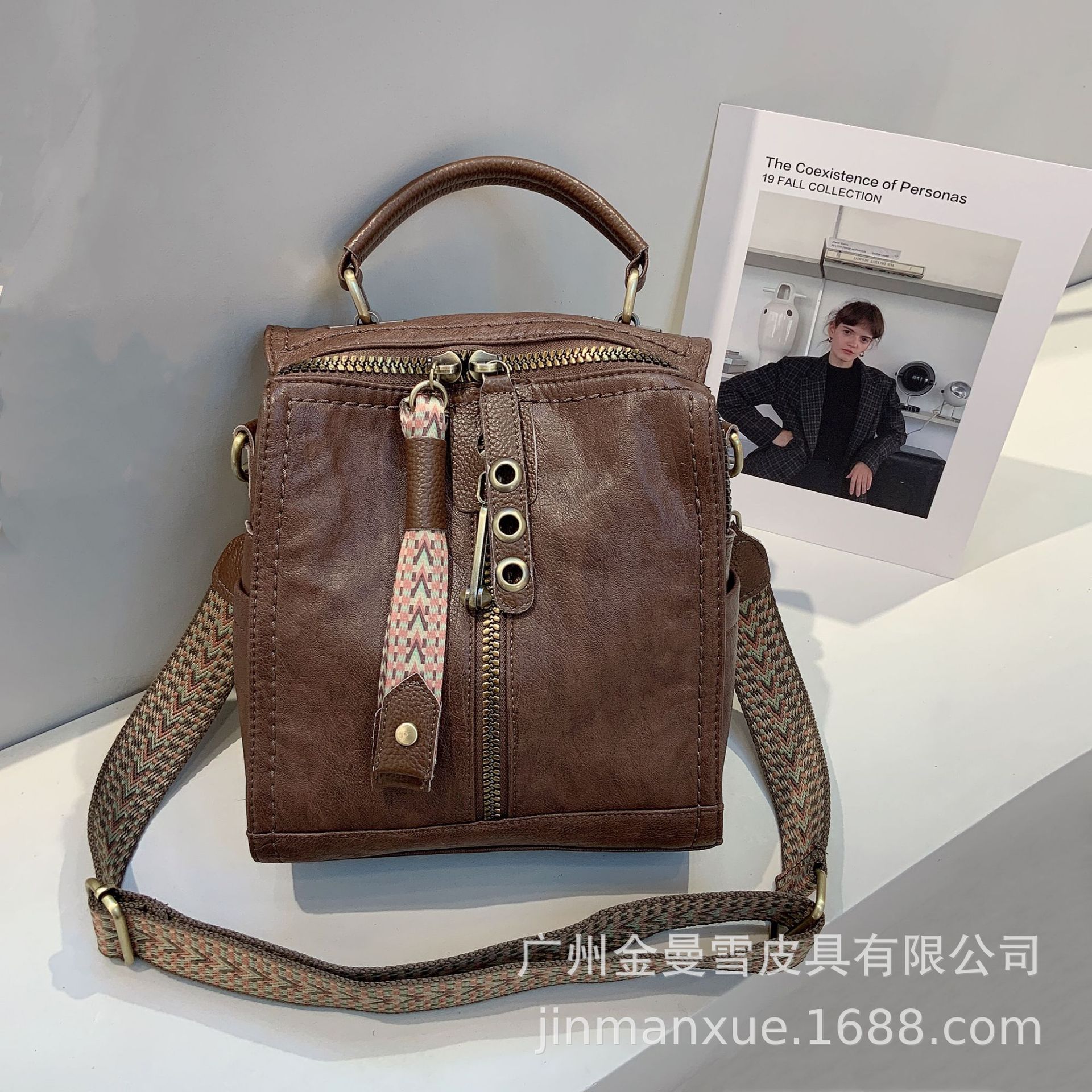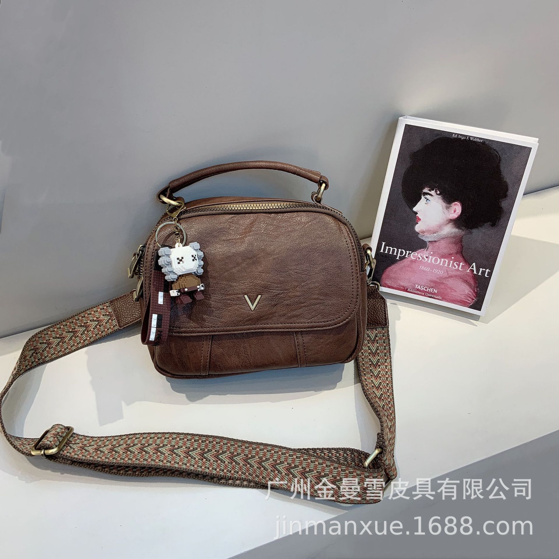 크로스보더 2025 뉴 티카미수 오리지널 핸드메이드 컬리지 레트로 심플 크로스바디 캐주얼 숄더백 백팩스토어 가기