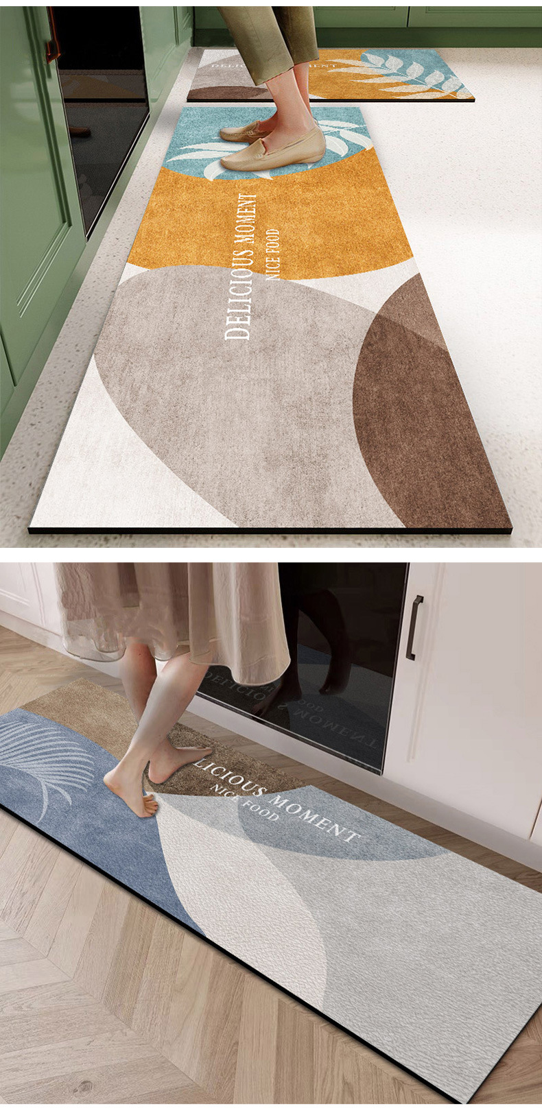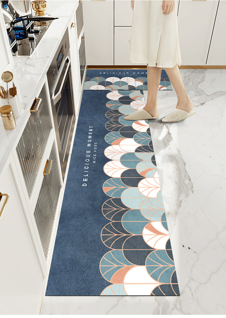 P66D 노르딕 주방 매트 지울 수 있고 청결없는 미끄럼 방지 오일 먼지 방지 방수 가죽 긴 카펫 입장 문스토어 가기