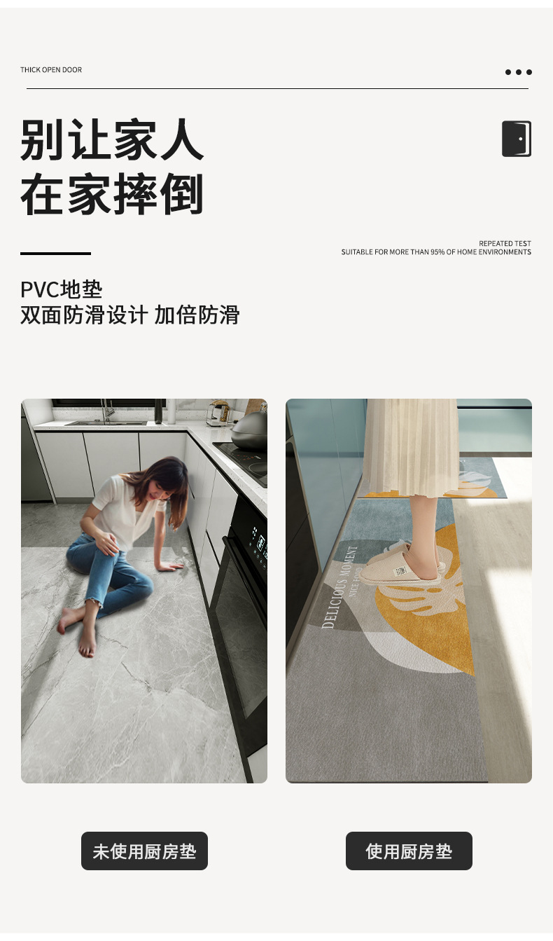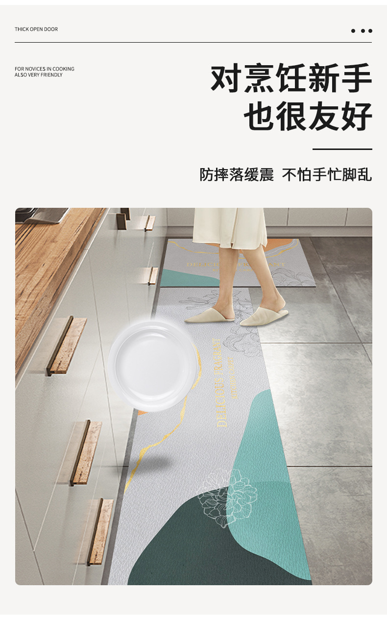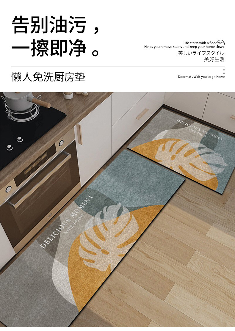 P66D 노르딕 주방 매트 지울 수 있고 청결없는 미끄럼 방지 오일 먼지 방지 방수 가죽 긴 카펫 입장 문