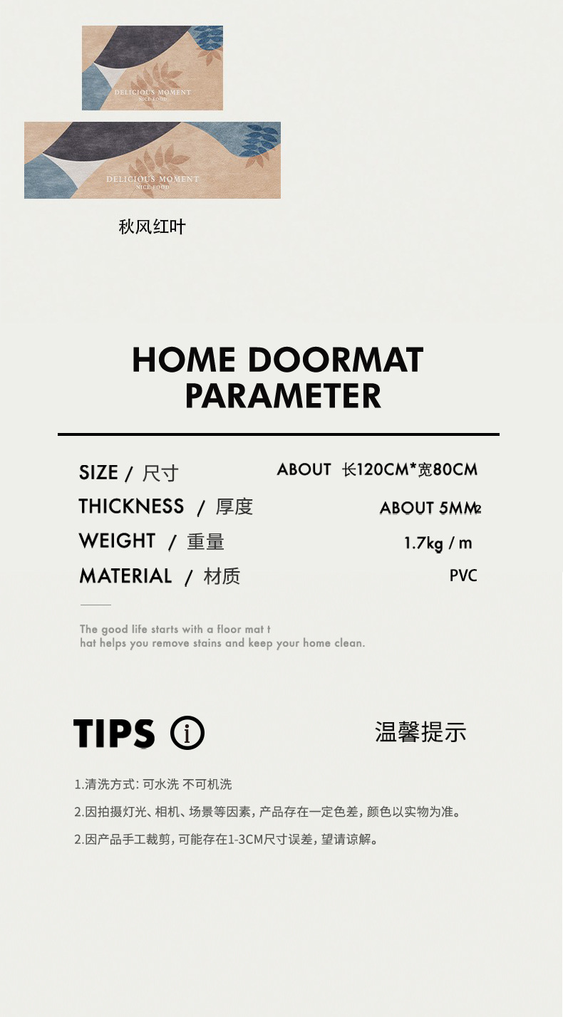 • 가을 색상 - 고객 서비스에 문의하시면 기간 한정 구매 시 동일한 스타일의 현관 매트를 무료로 받으실 수 있습니다!