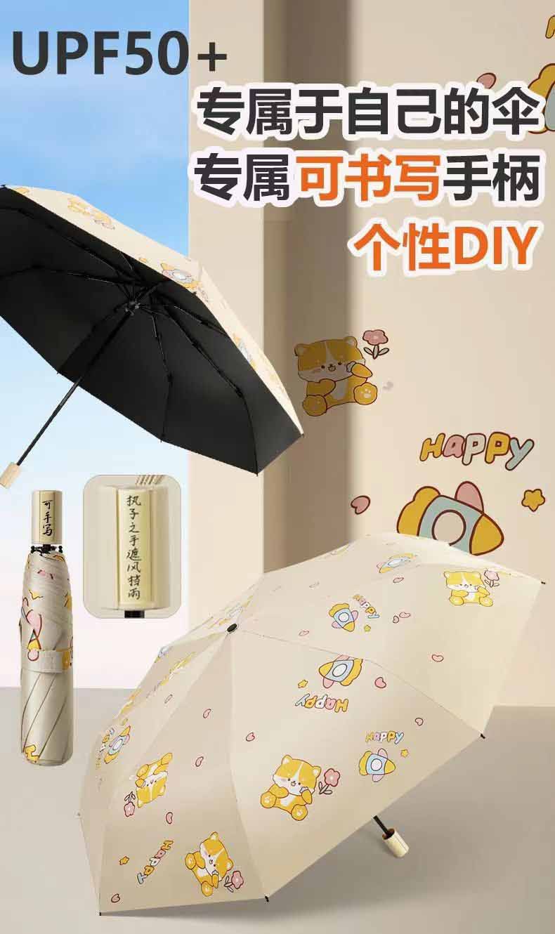 남학생과 여학생 및 어린이를위한 쓰기 가능한 학생 이름 전용 우산 맑고 비오는 접는 햇빛 방풍 선 스크린 우산