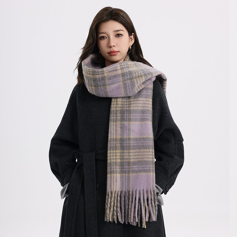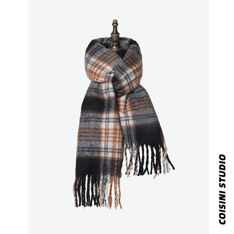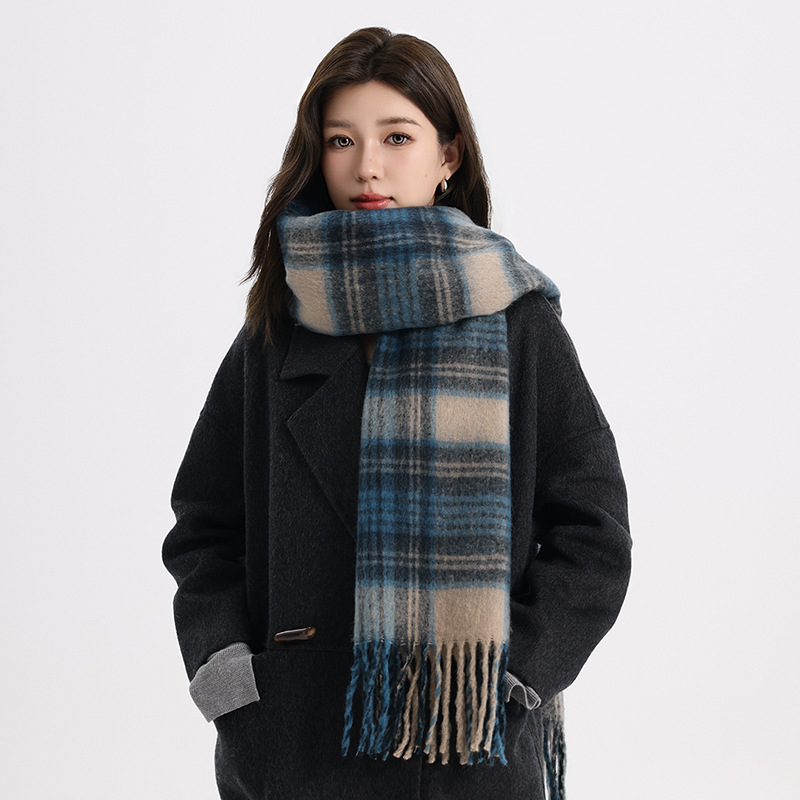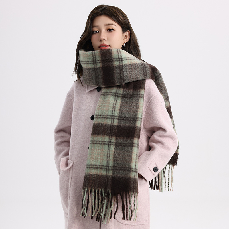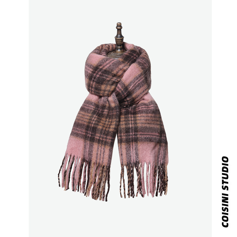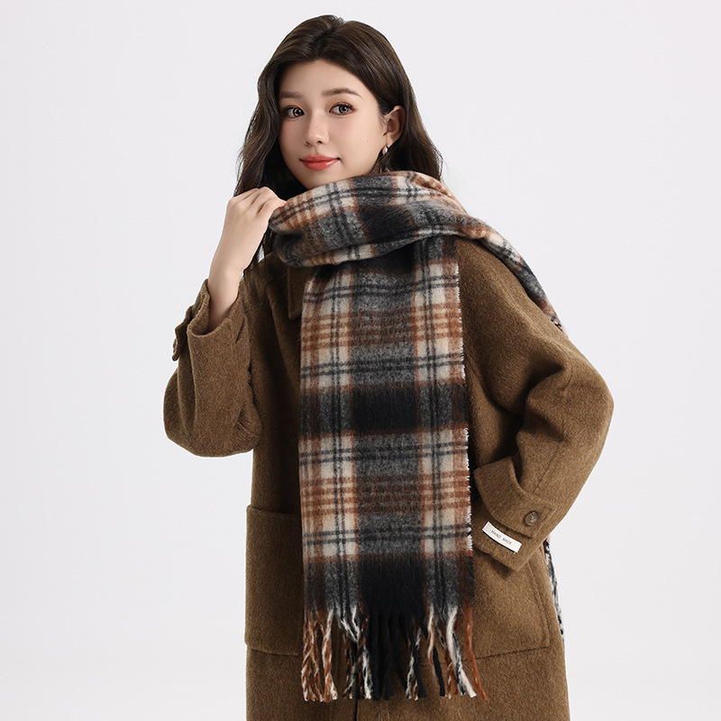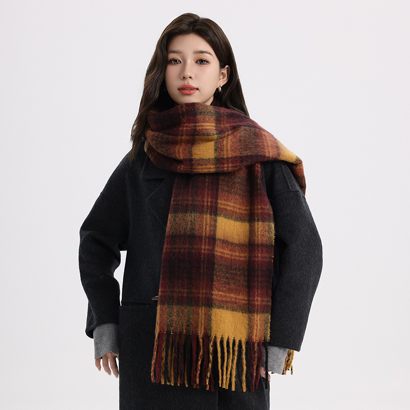 2024 새로운 스타일 맞춤형 분위기 격자 무늬 스카프 여성의 겨울 빈티지 두꺼운 따뜻한 큰 목도리 술 스카프스토어 가기