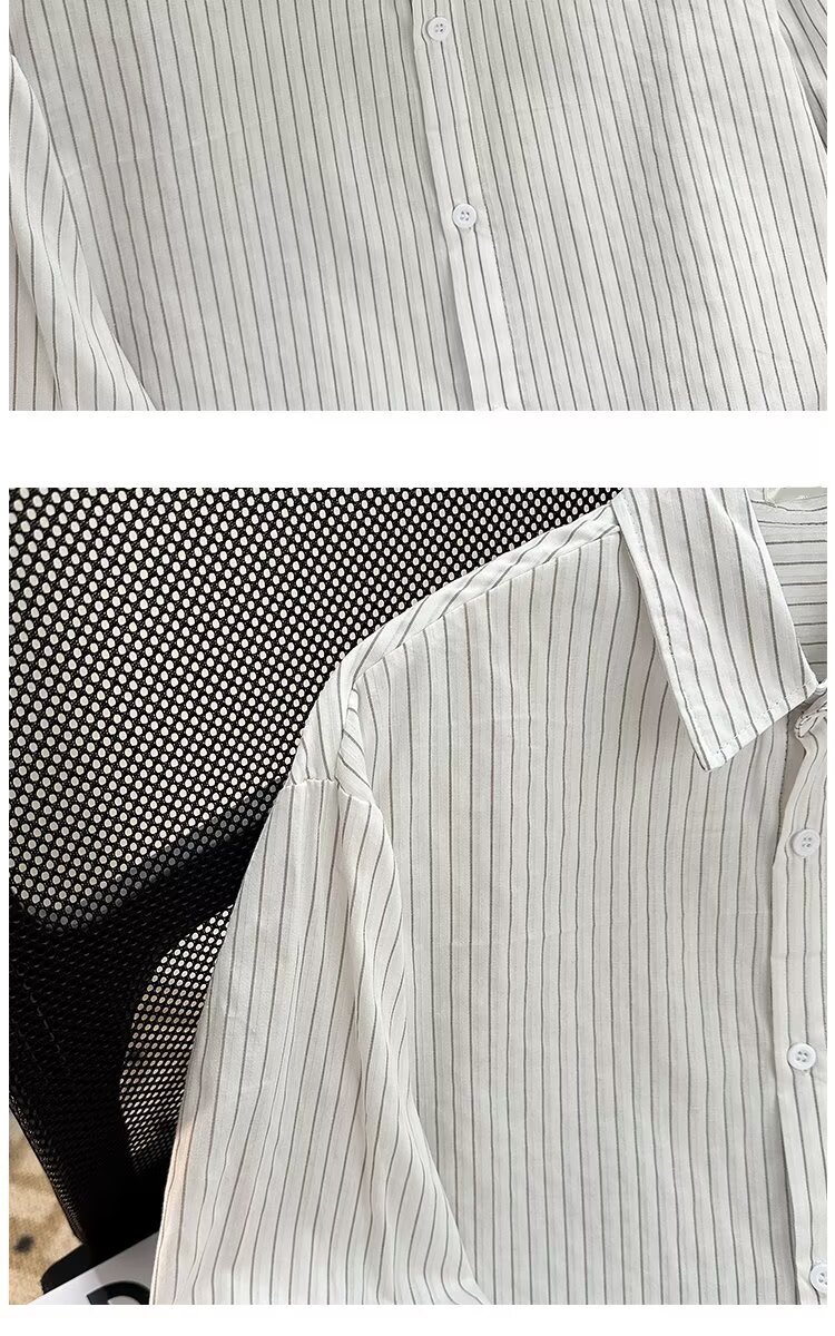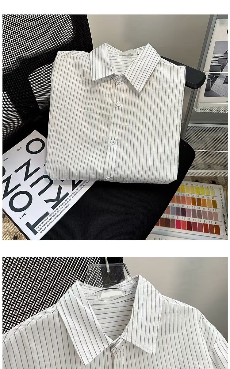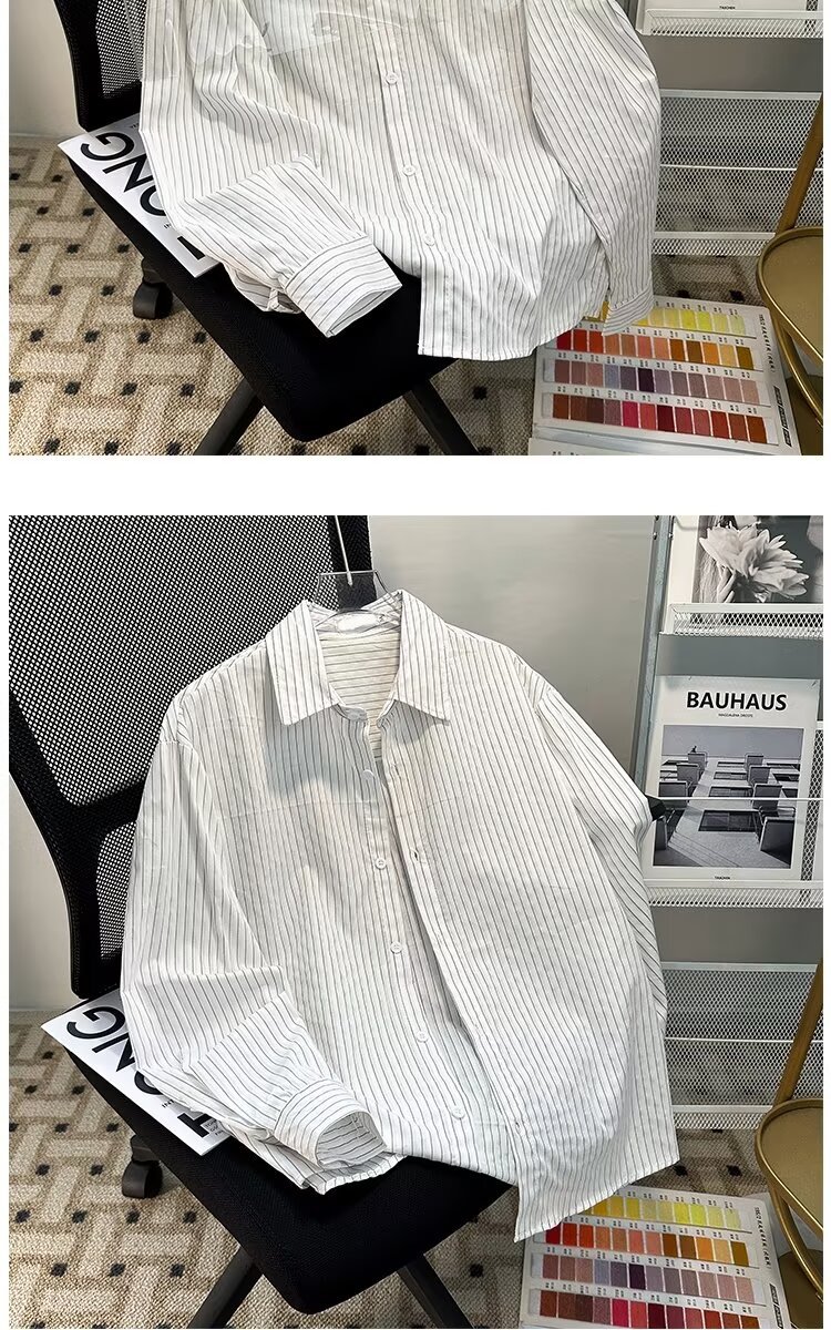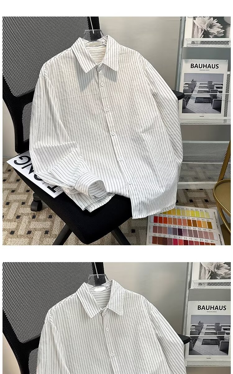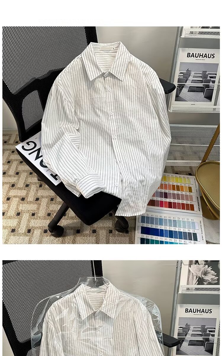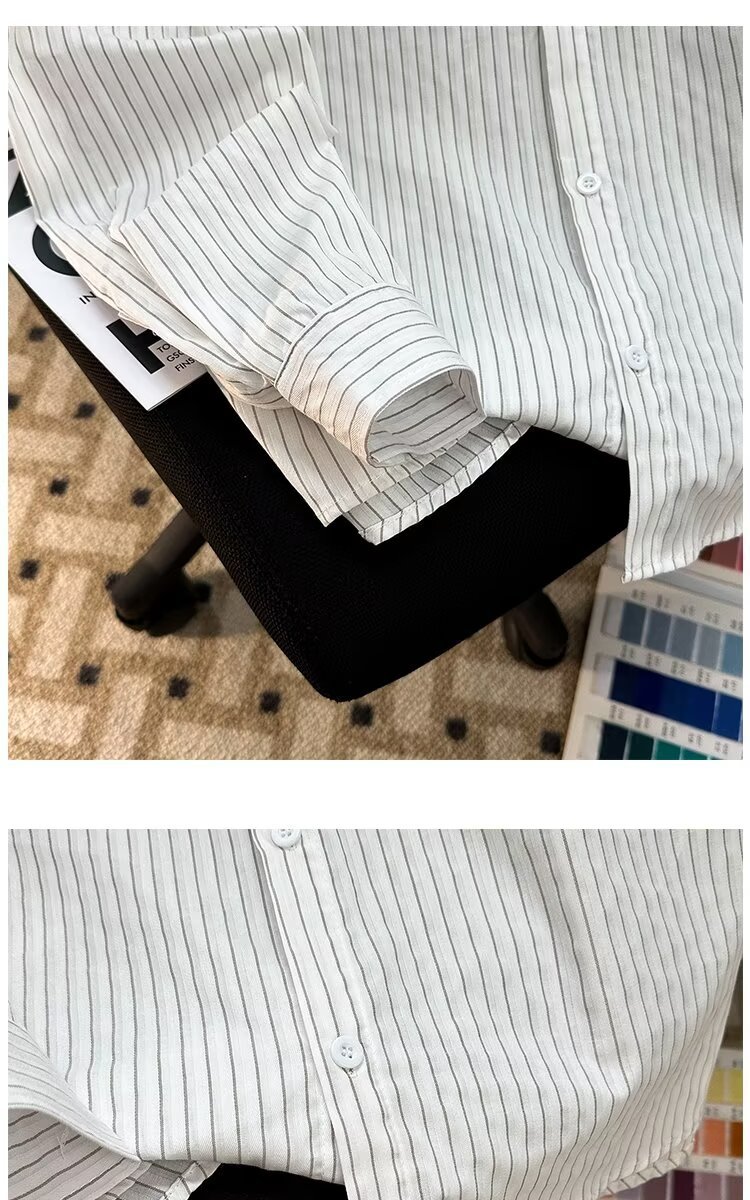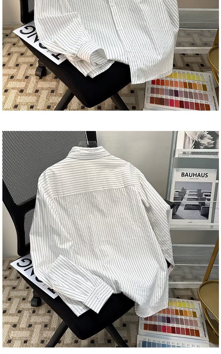 순수 코튼 스트라이프 긴팔 셔츠 남자의 가을 얇은 느슨한 캐주얼 유행 브랜드 포장 틈새 지방 잘 생긴 셔츠 재킷스토어 가기