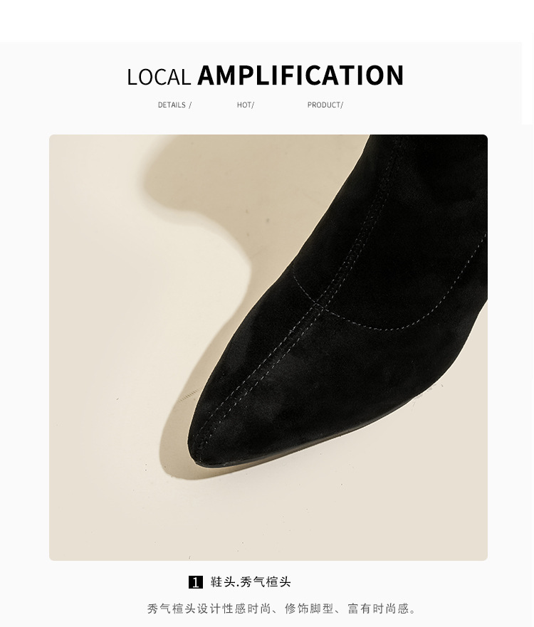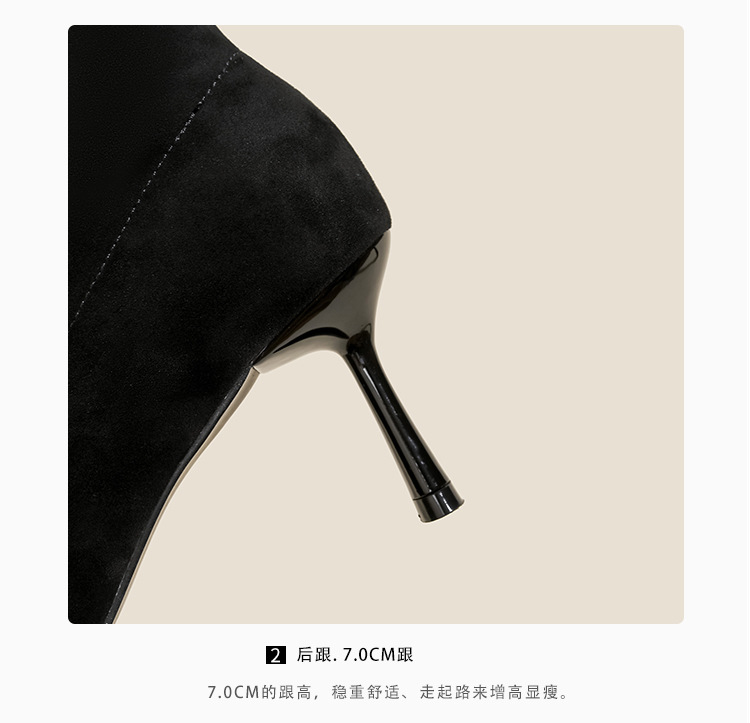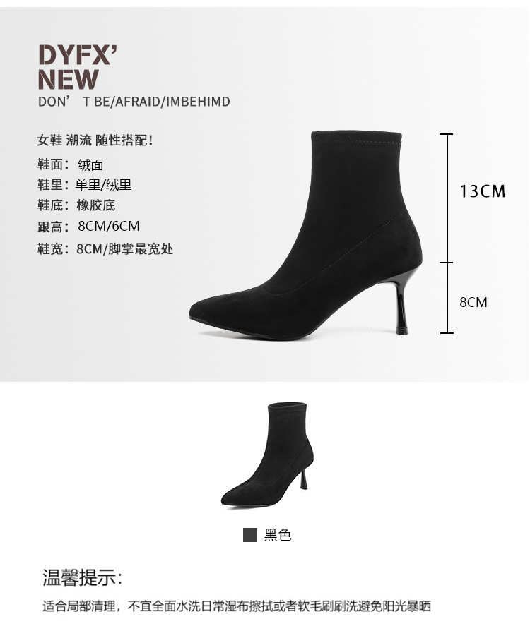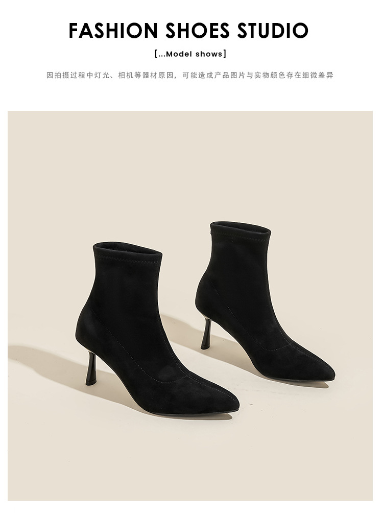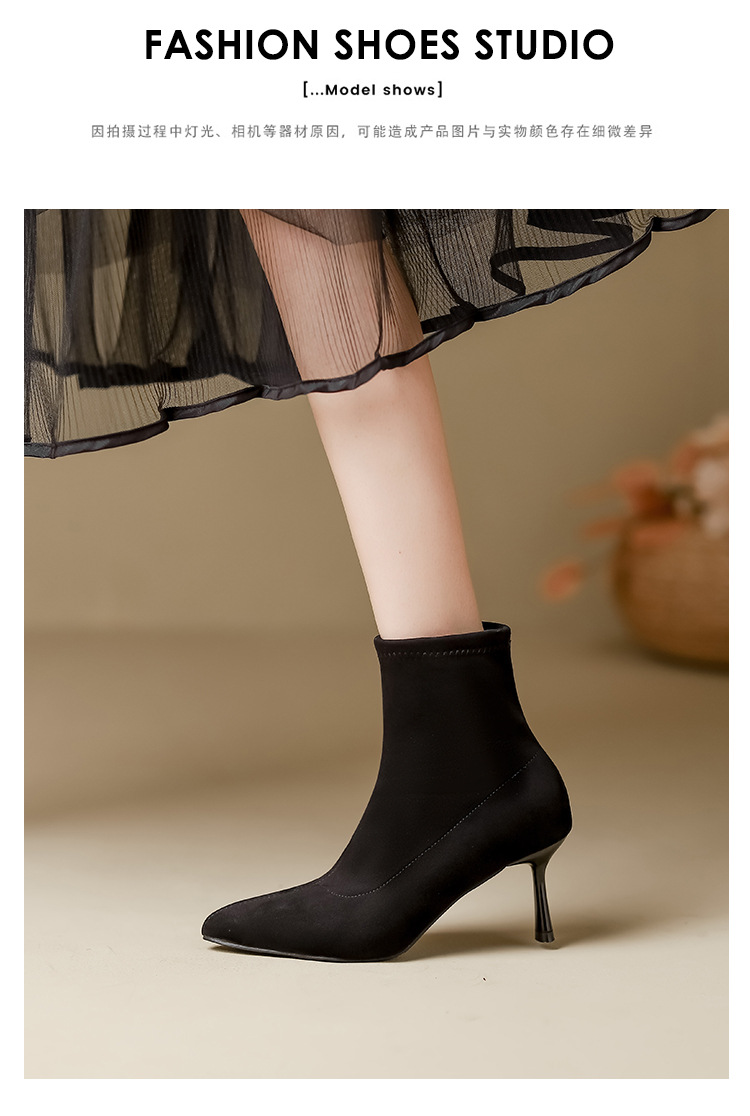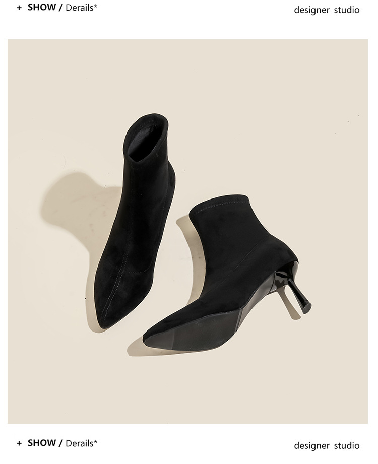 2024 가을과 겨울 새로운 얇은 힐 블랙 스웨이드 스트레치 얇은 부츠 양말 부츠 뾰족한 하이힐 짧은 부츠 여성스토어 가기