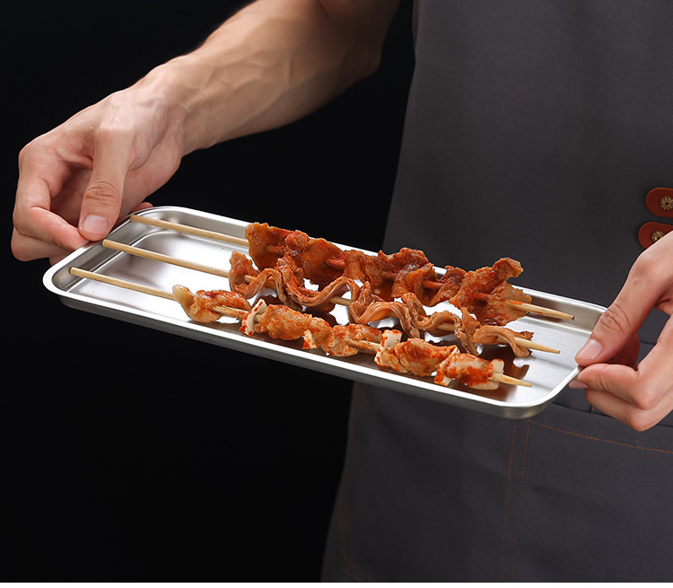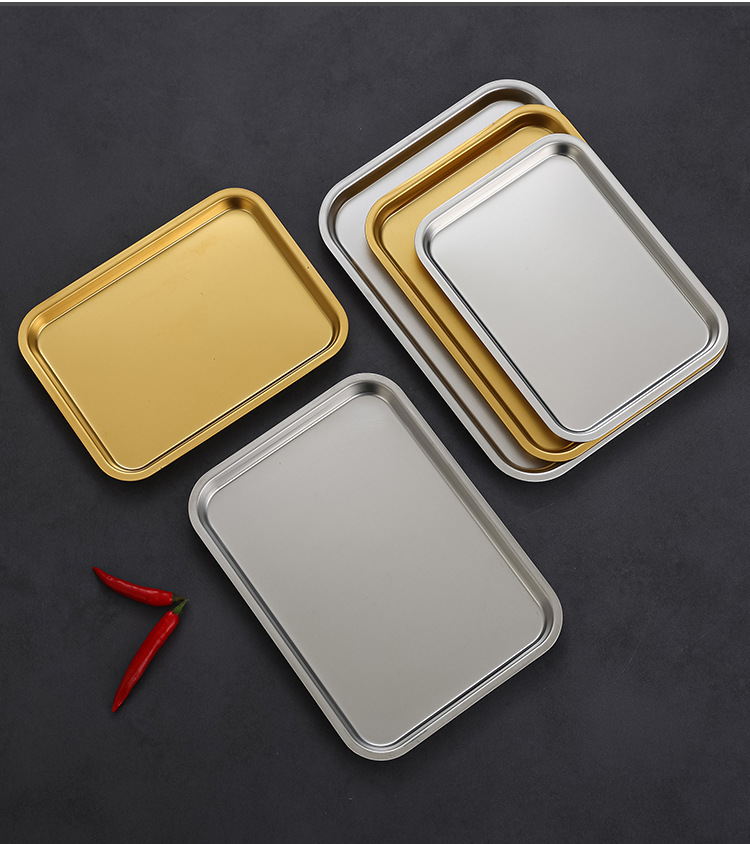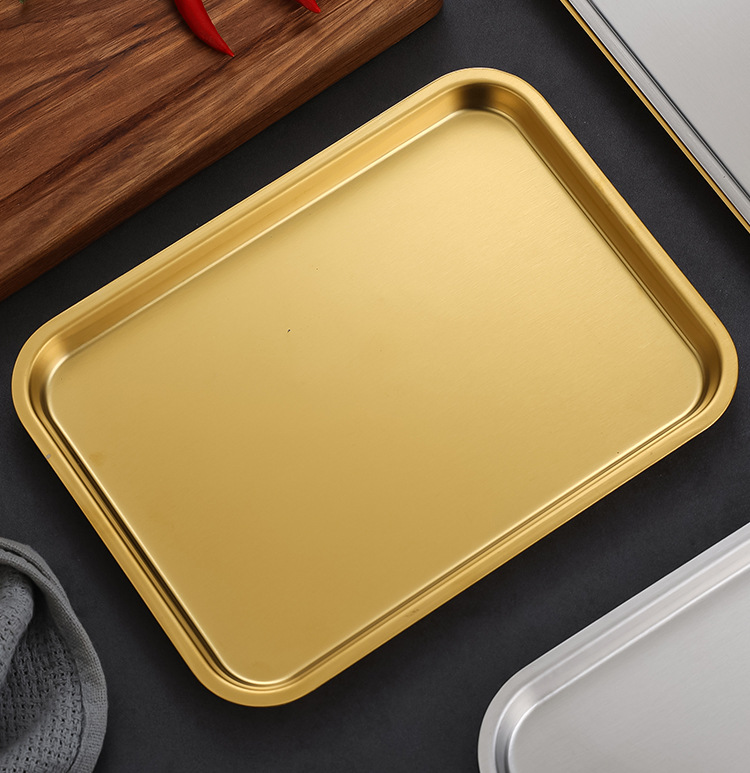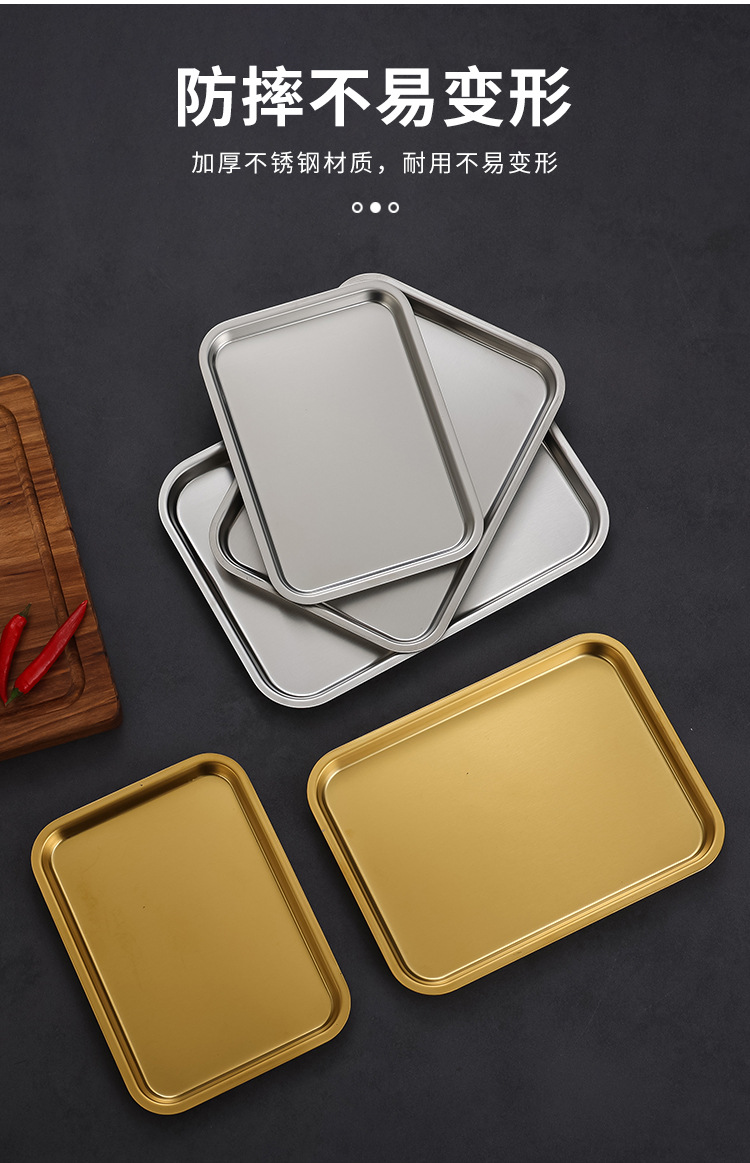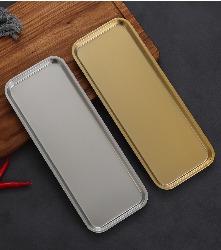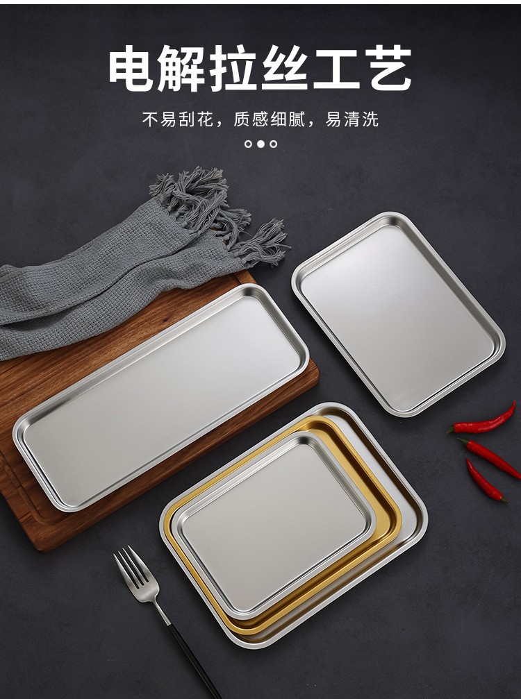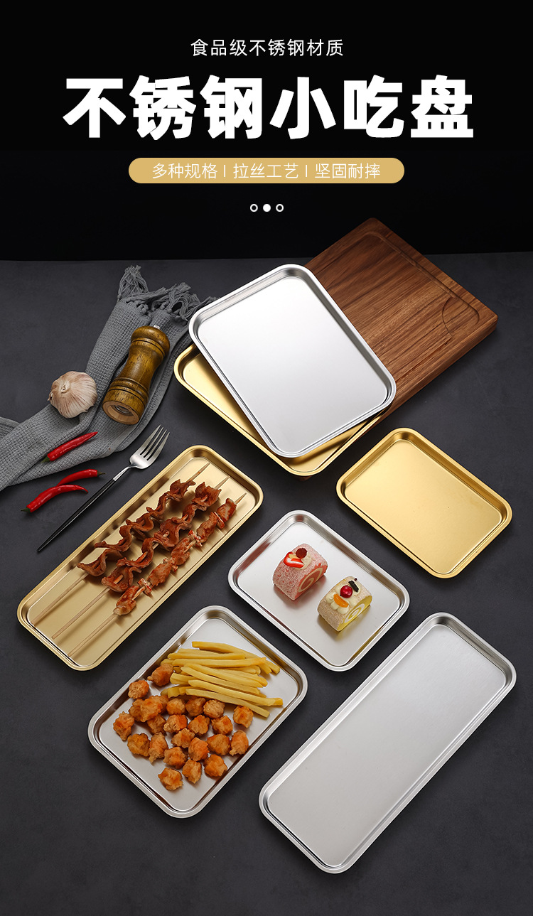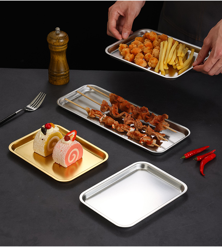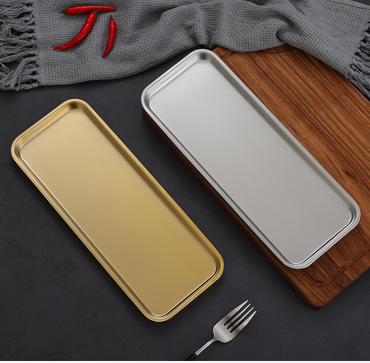 스테인레스 스틸 크리 에이 티브 골든 직사각형 플레이트 트레이 바베큐 디스플레이 플레이트 절인 고기 요리 음식 Malatang 핫 팟 레스토랑 디너 플레이트