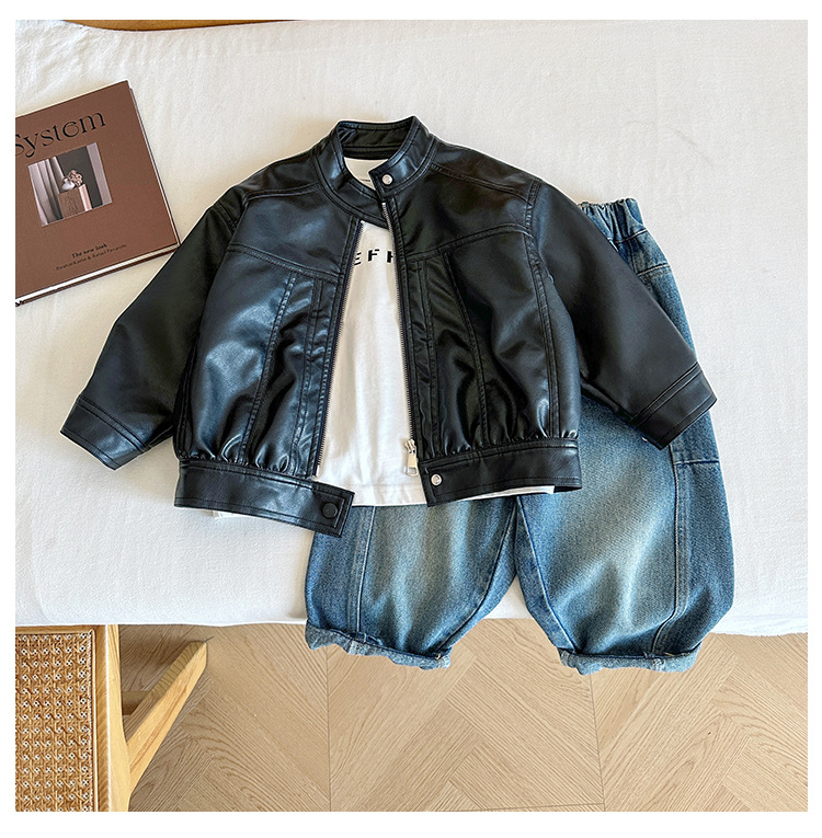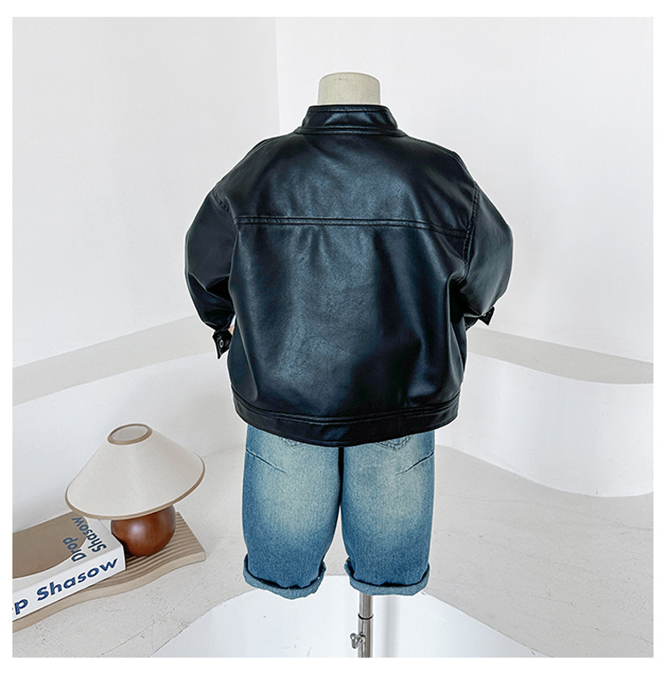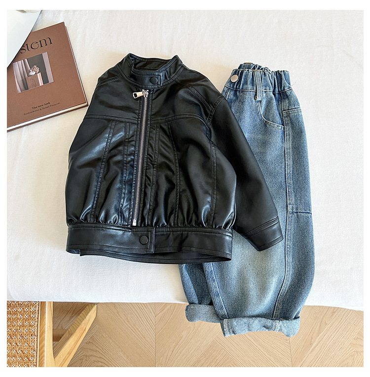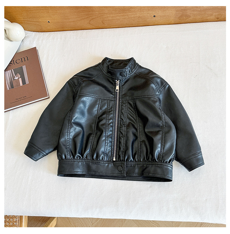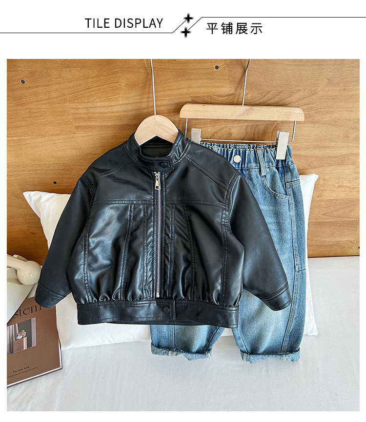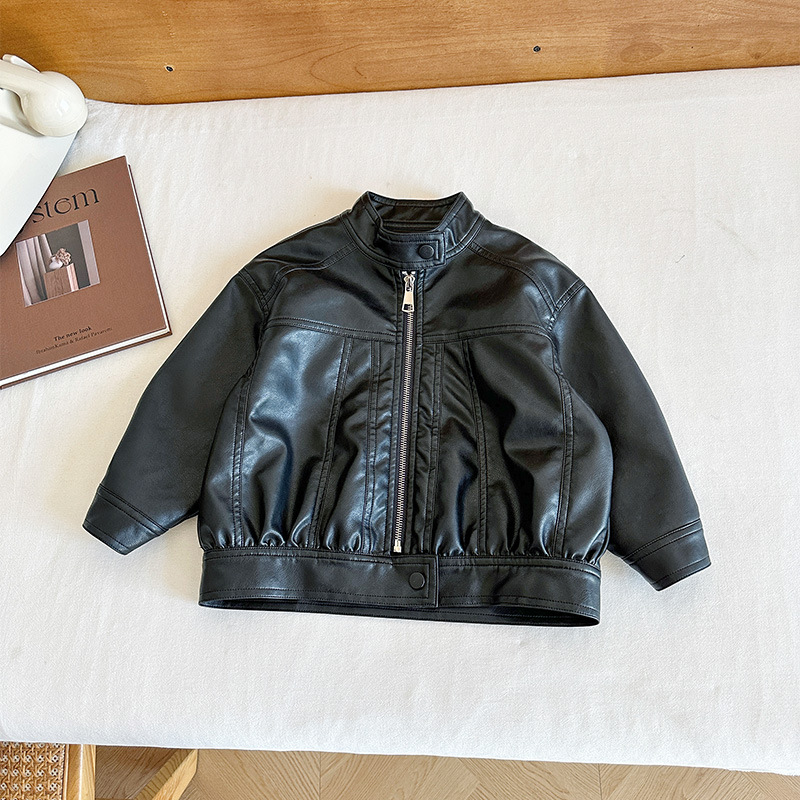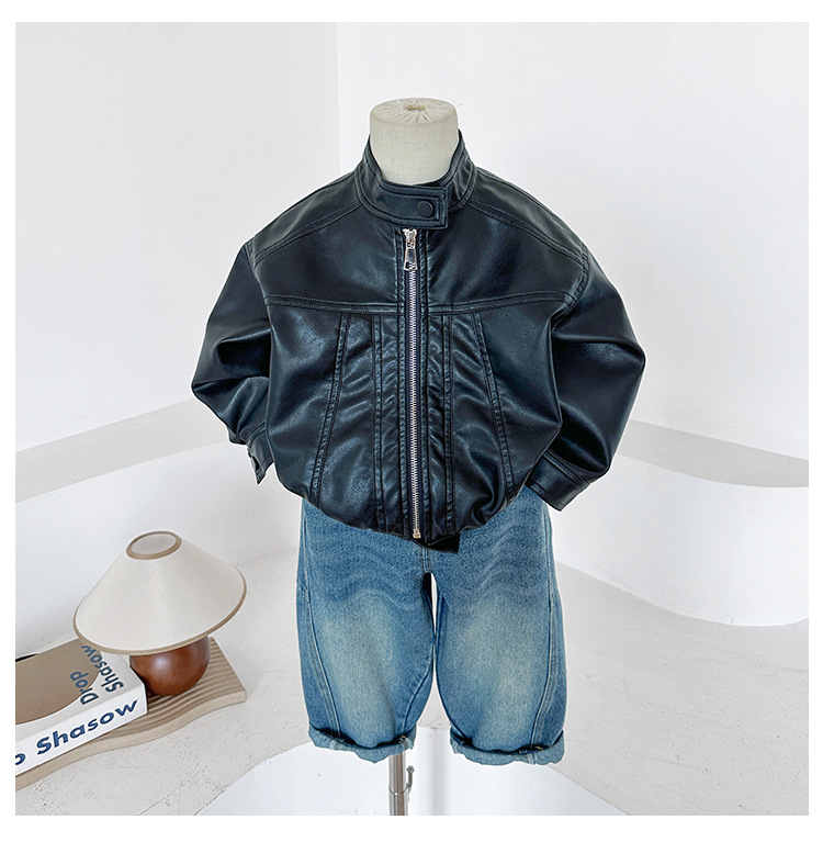 바람의 계곡 2024 가을 새 아동복 레트로 올매치 스탠딩 칼라 자켓 소년 소녀를위한 잘 생긴 가죽 자켓스토어 가기