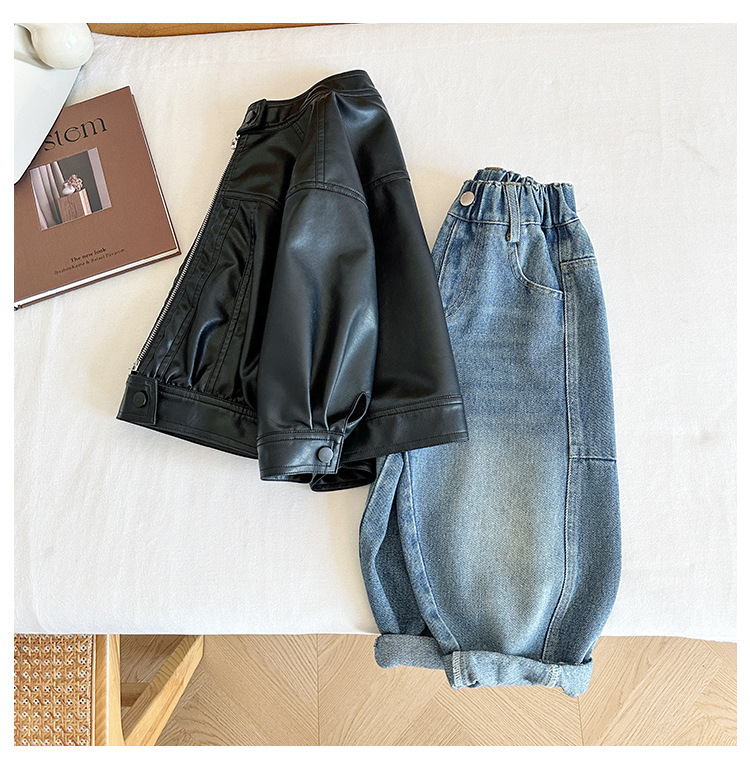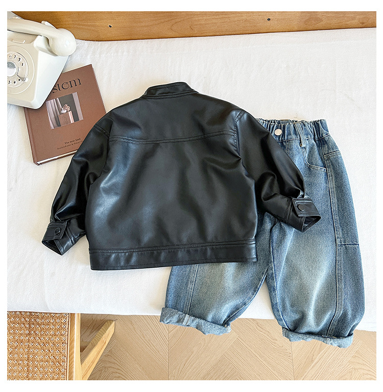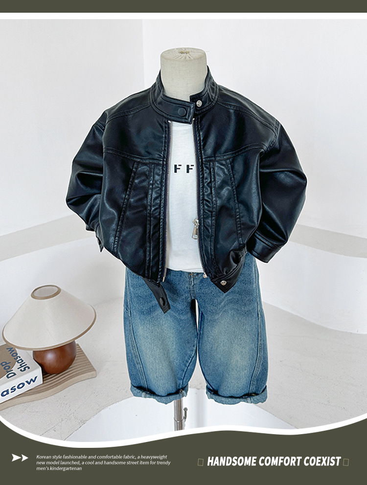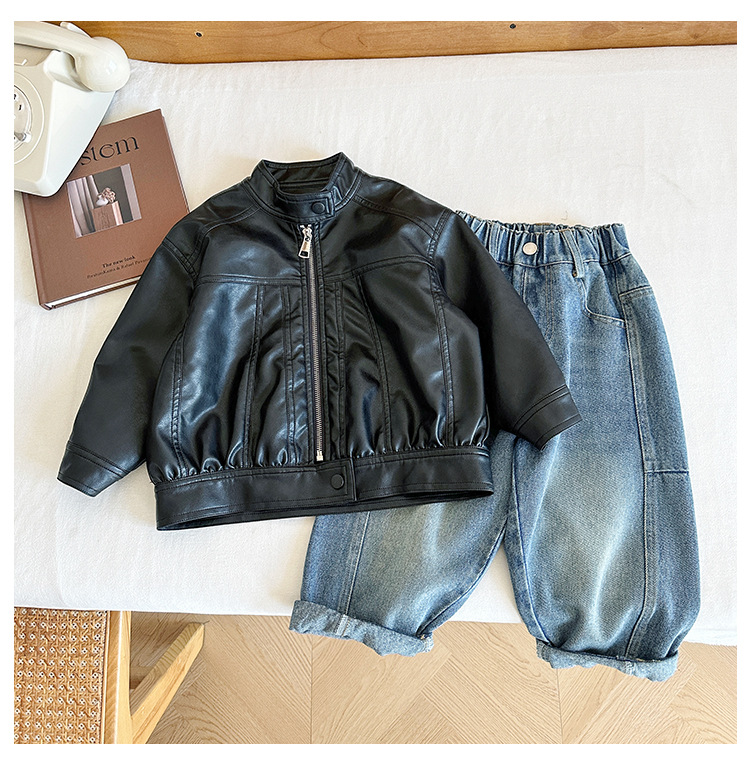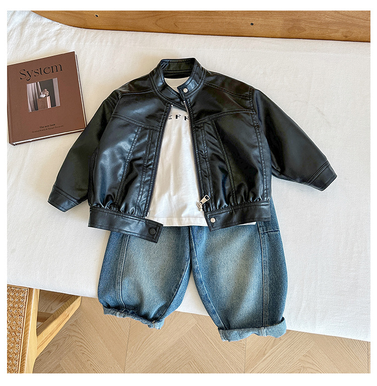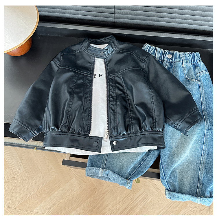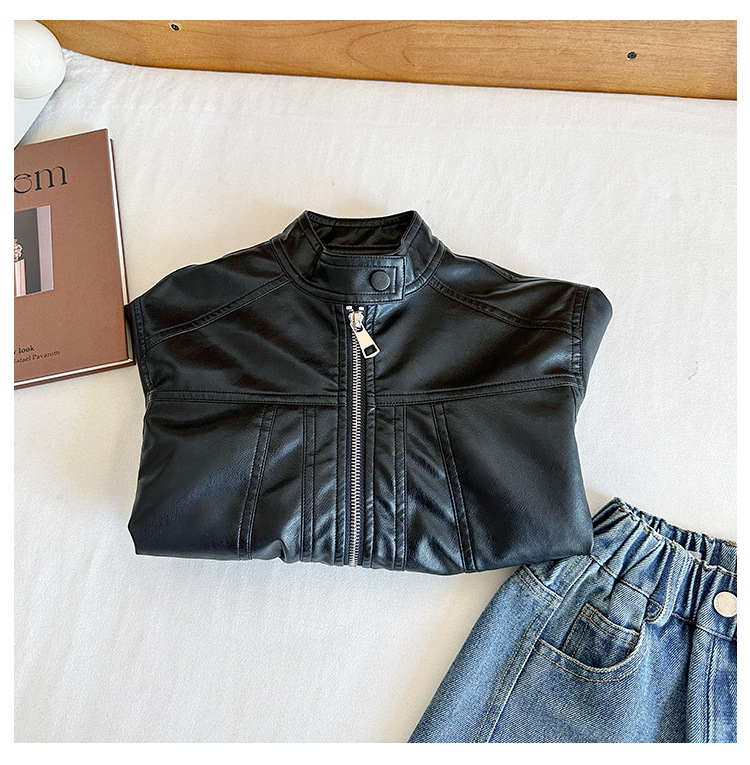 바람의 계곡 2024 가을 새 아동복 레트로 올매치 스탠딩 칼라 자켓 소년 소녀를위한 잘 생긴 가죽 자켓스토어 가기
