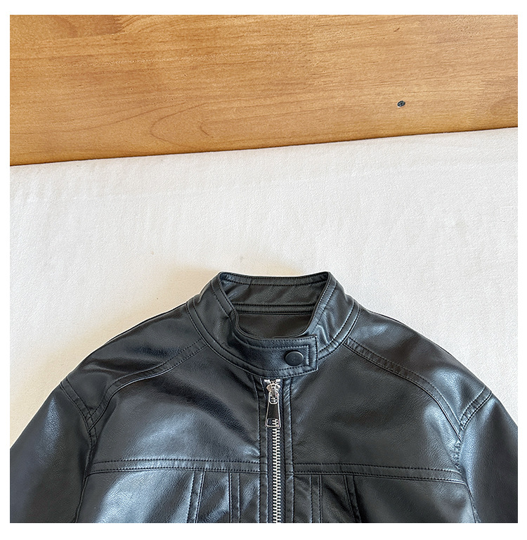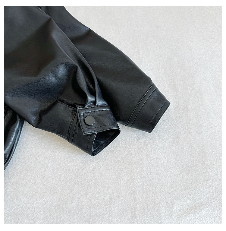 바람의 계곡 2024 가을 새 아동복 레트로 올매치 스탠딩 칼라 자켓 소년 소녀를위한 잘 생긴 가죽 자켓