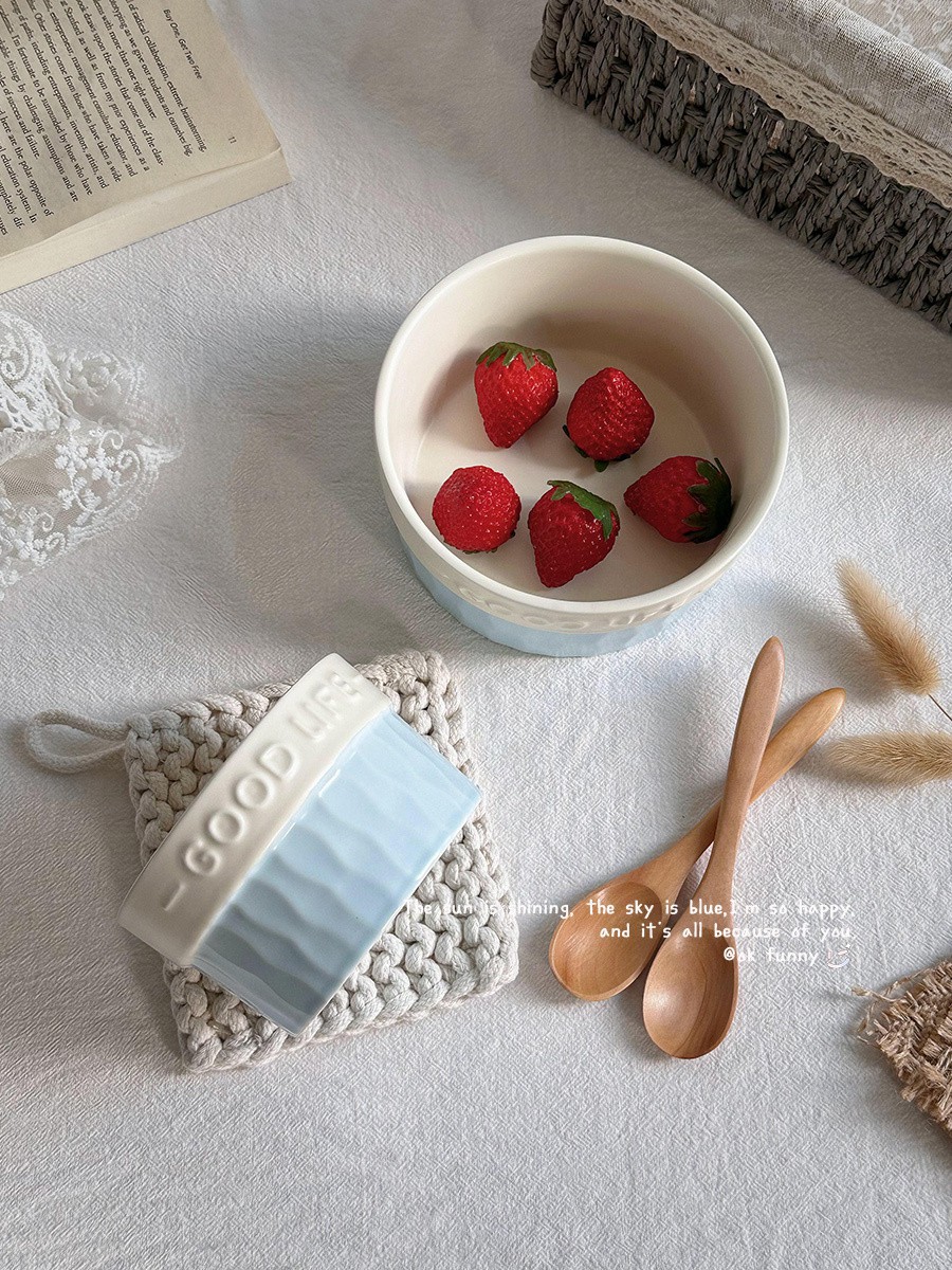 한국 스타일 Ins 양각 간단한 디저트 가정용 세라믹 그릇 고부가가치 식기 요구르트 그릇 밥 그릇 아침 네트 그릇