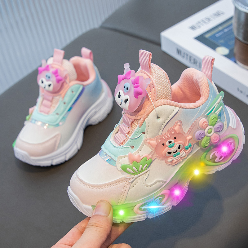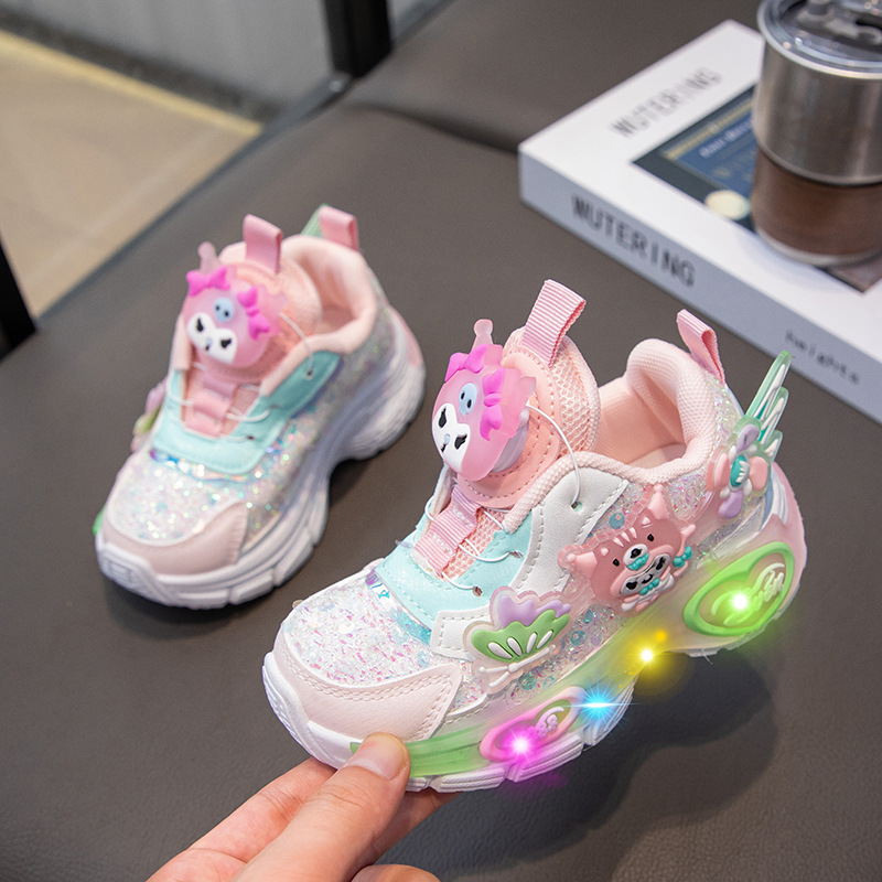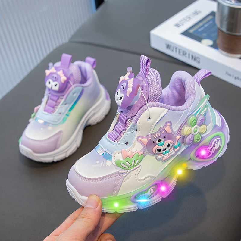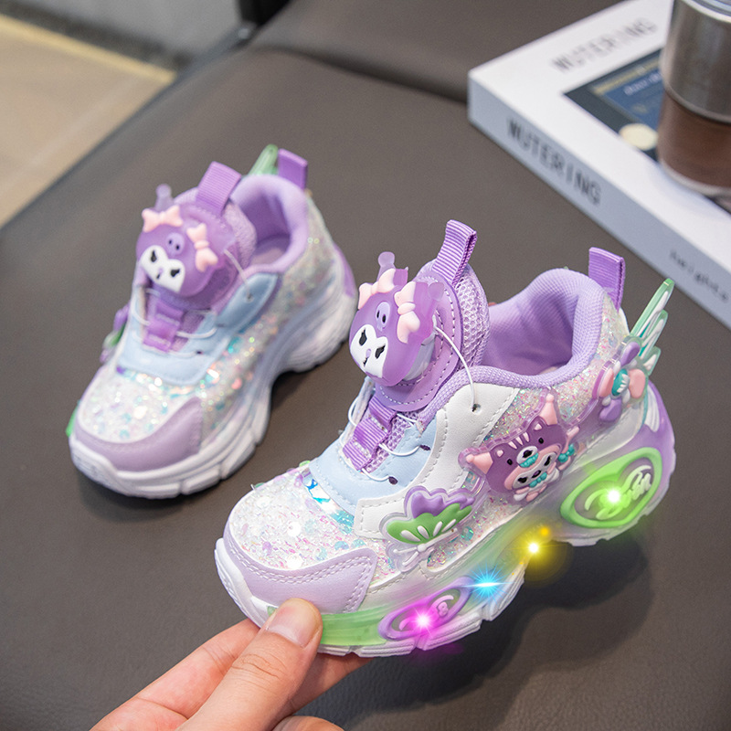 2025 봄 신상 여아 운동화 어린이 쿠로미 라이트 회전 버튼 운동화 공주 소녀 발광 신발