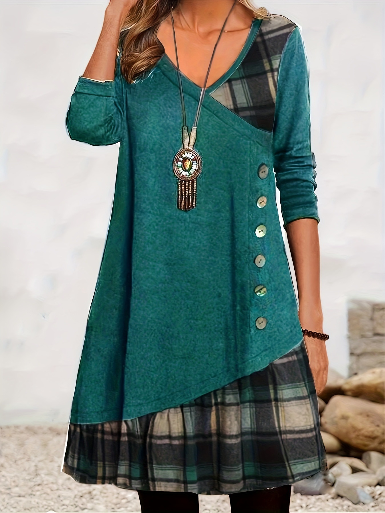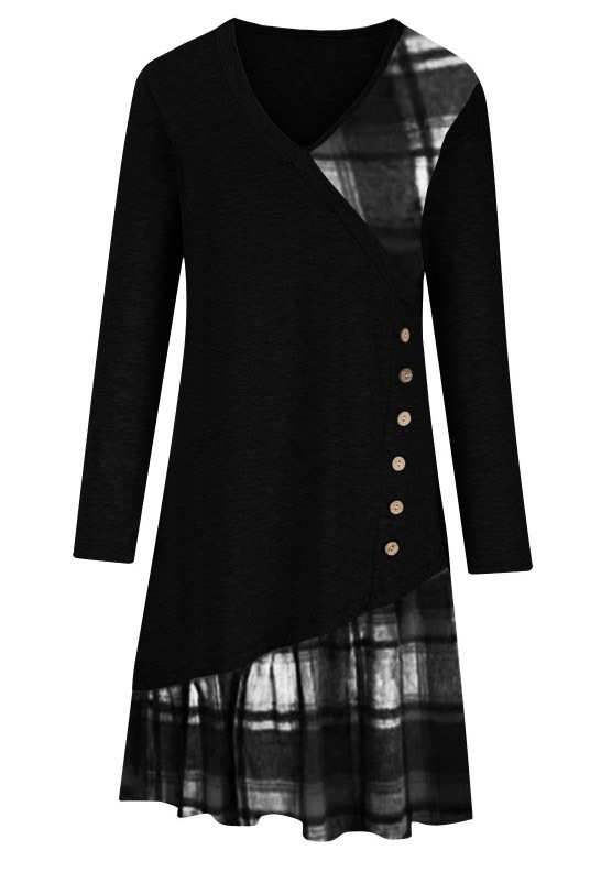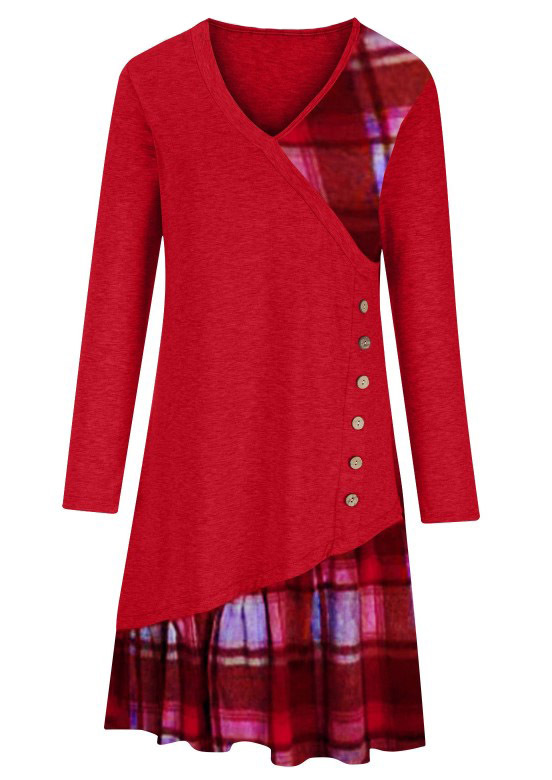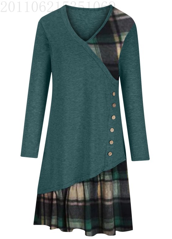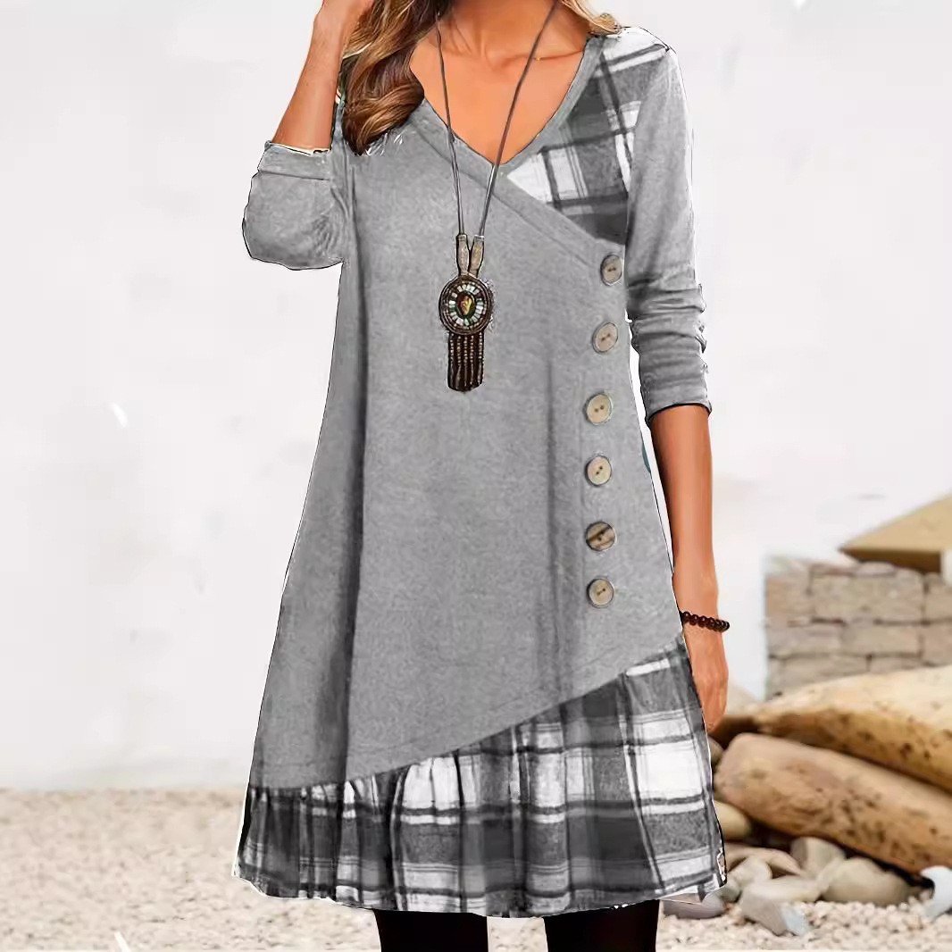 2025 가을 겨울 신상 유럽 및 미국 스타일 해외 직구 아마존 독립 사이트 체크무늬 배색 긴팔 원피스스토어 가기