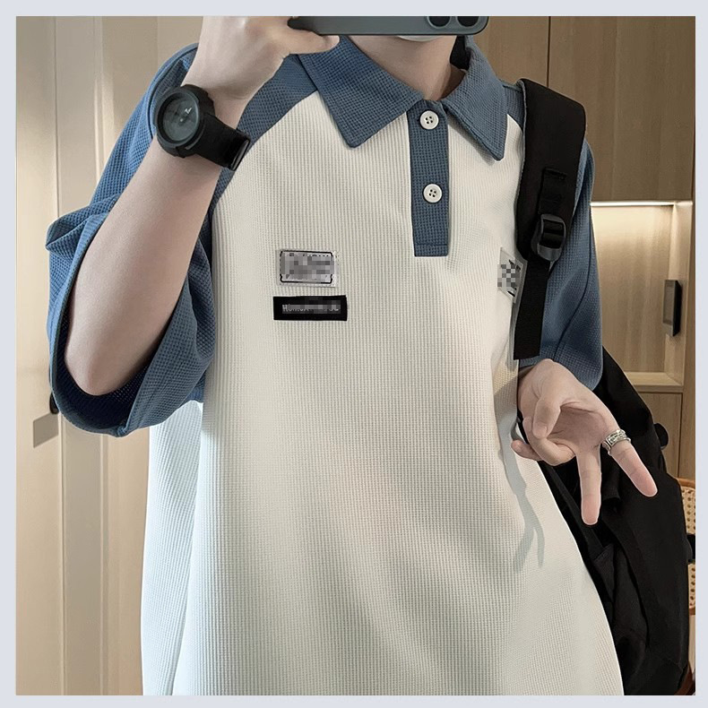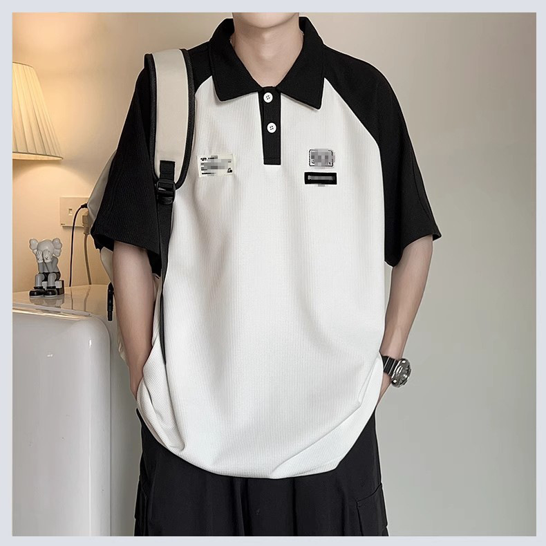 폴로 셔츠 남성 반팔 여름 일본 스타일 트렌디 브랜드 헤비 코튼 티셔츠 대학 스타일 대비 컬러 느슨한 반소매 티셔츠스토어 가기