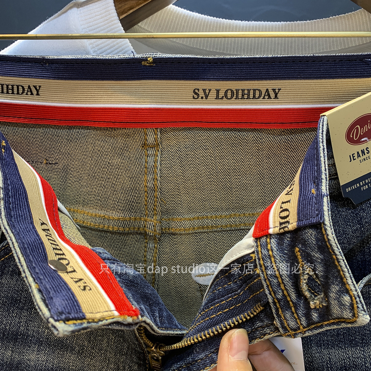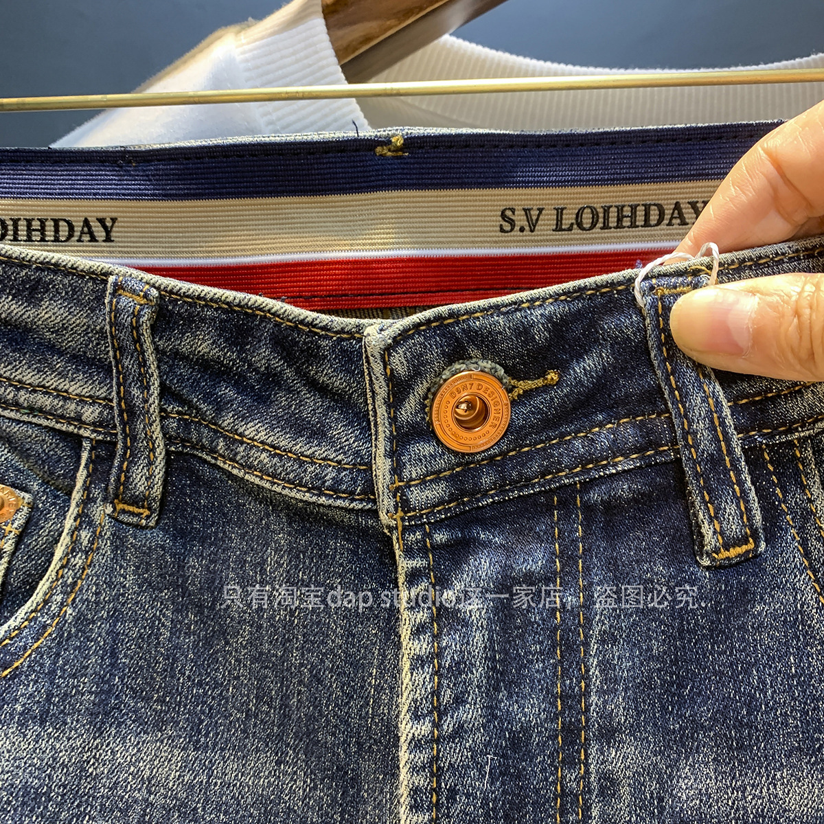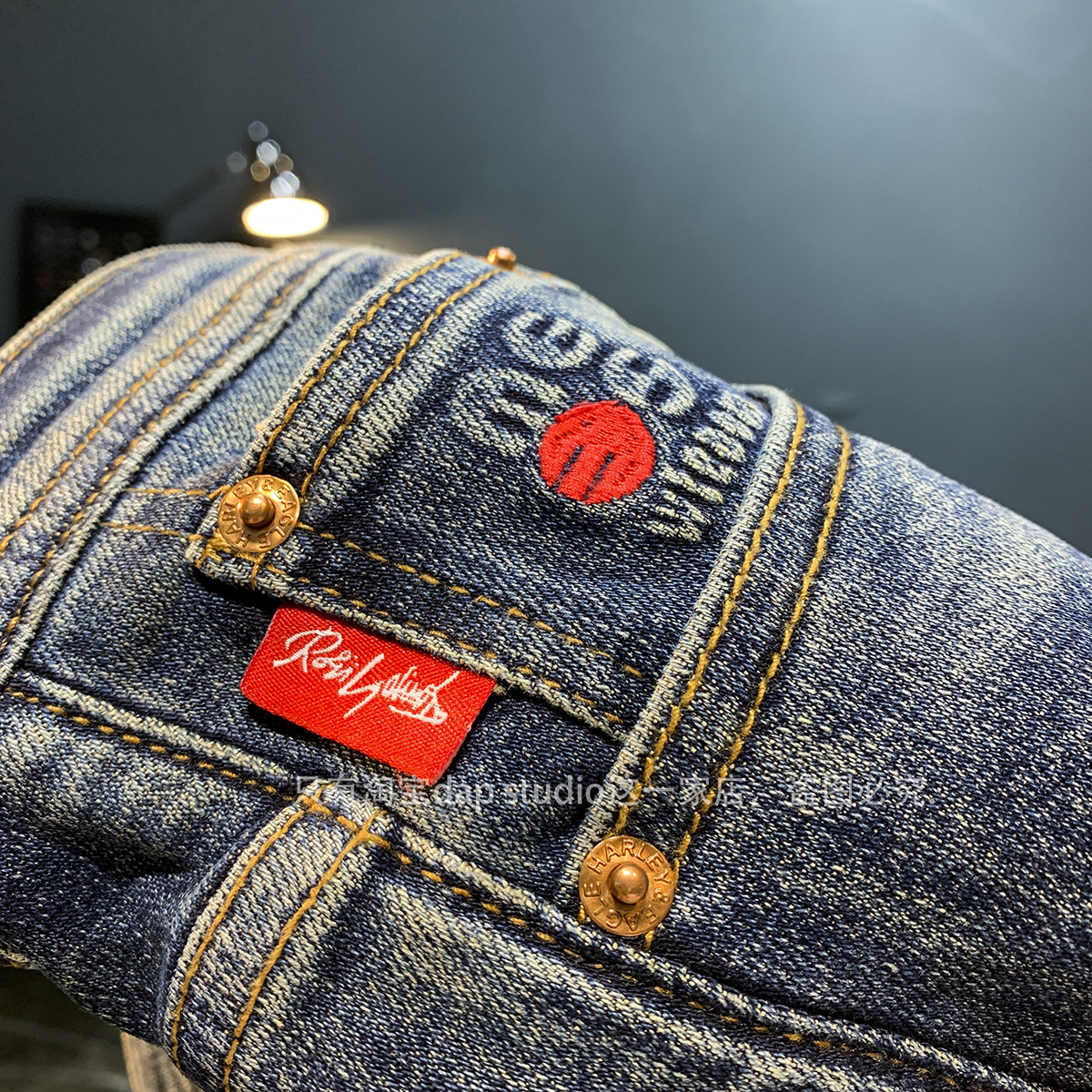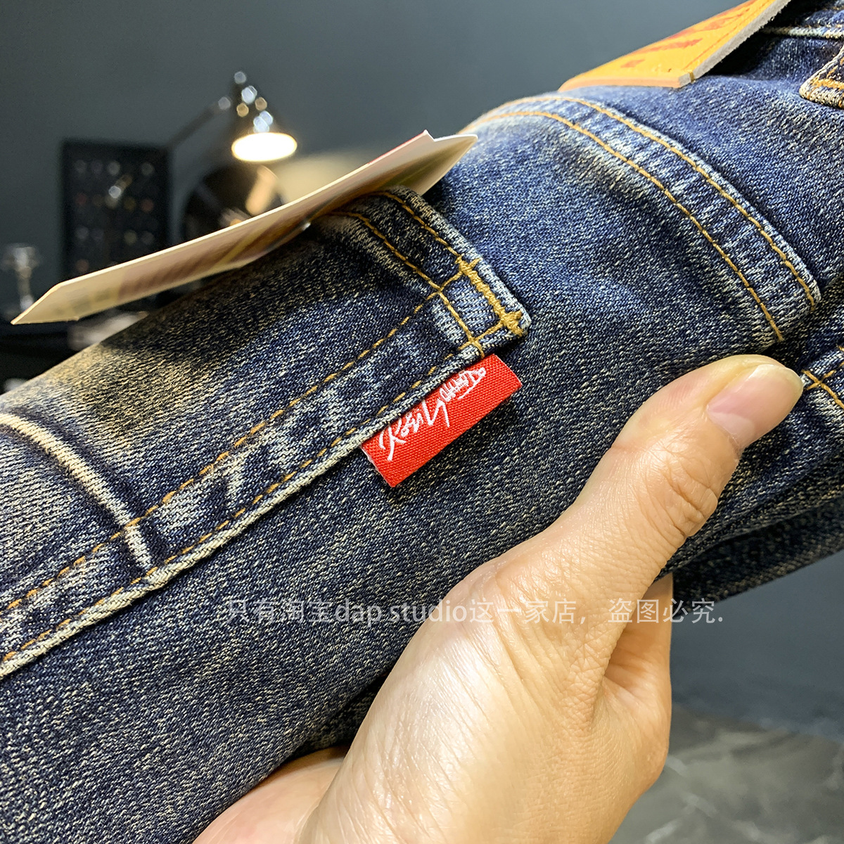 하이 엔드 청바지 남성용 가을 골동품 느낌 조난 작은 스트레이트 레그 캐주얼 바지 디자인 느낌 트렌디 한 프린트 슬림 핏 바지스토어 가기