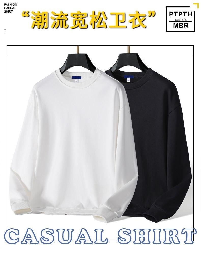 긴 소매 티셔츠 남성용 가을 및 겨울 Ins 인기 브랜드 느슨한 두꺼운 캐주얼 베이스 셔츠 인쇄 라운드 넥 스웨터스토어 가기
