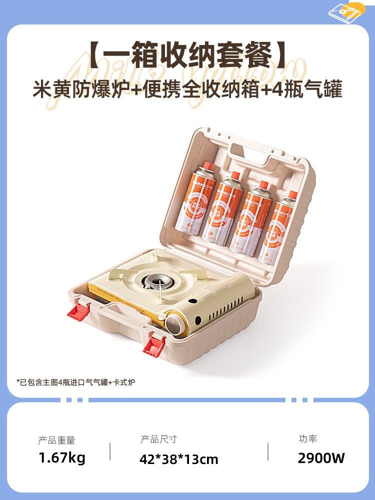 • 초박형 베이지색 안전 방폭 카세트 스토브 + 휴대용 풀 세트 보관함 + 가스 4병