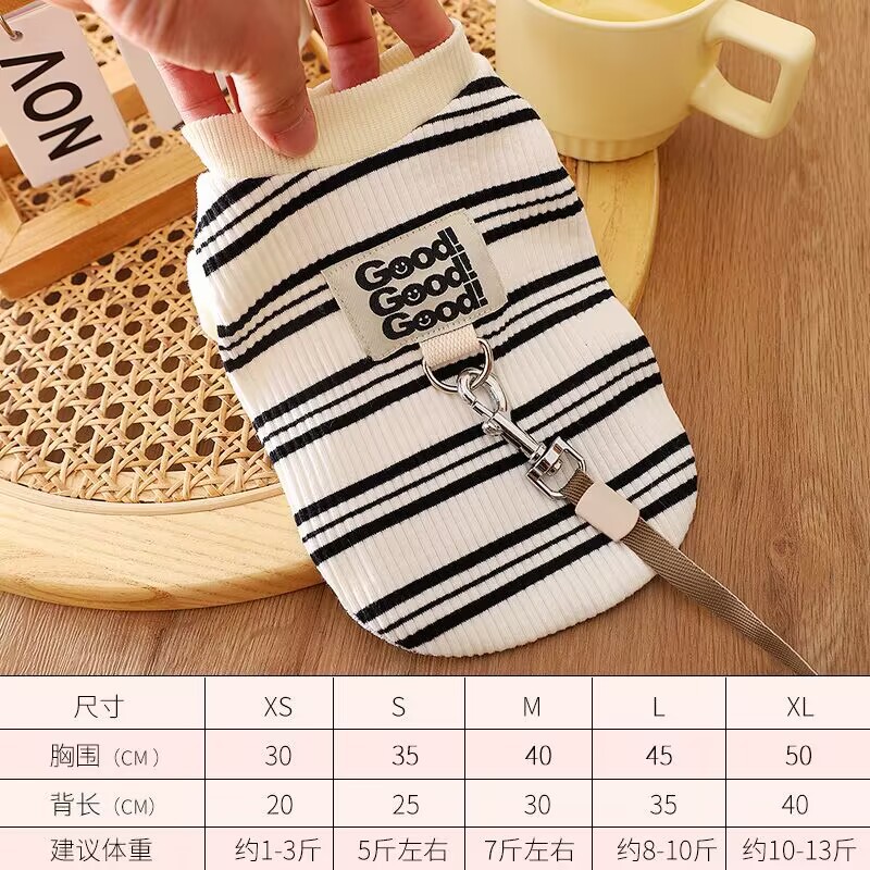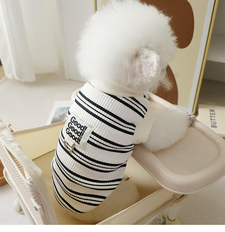 개 옷 편지 기본 셔츠 애완 동물 줄무늬 가을과 겨울 견인 요크셔 작은 개 풀오버스토어 가기
