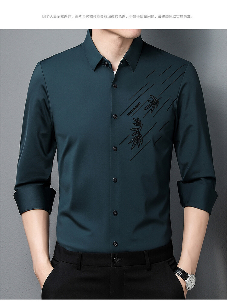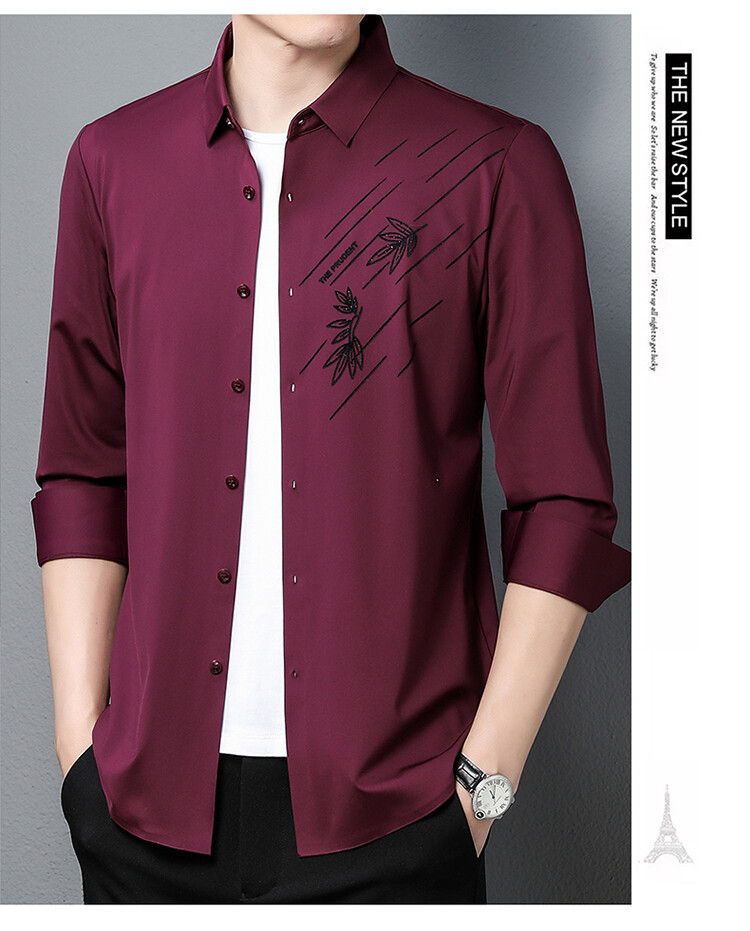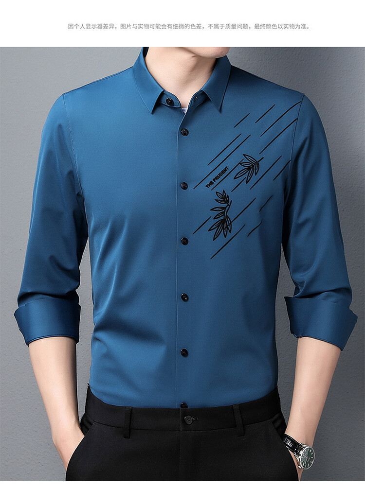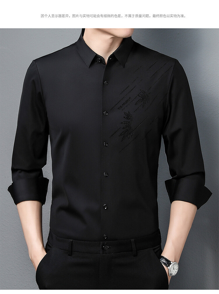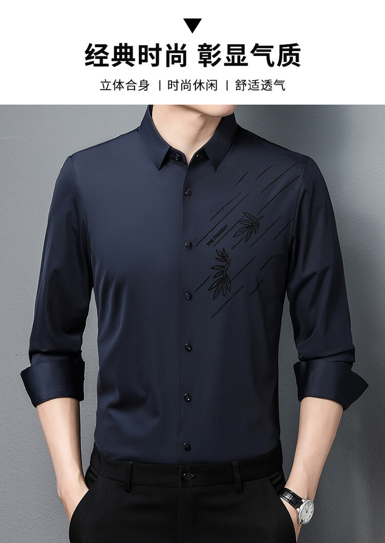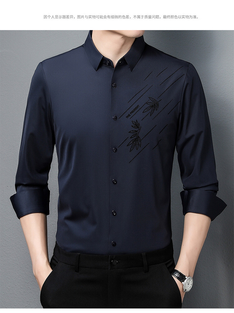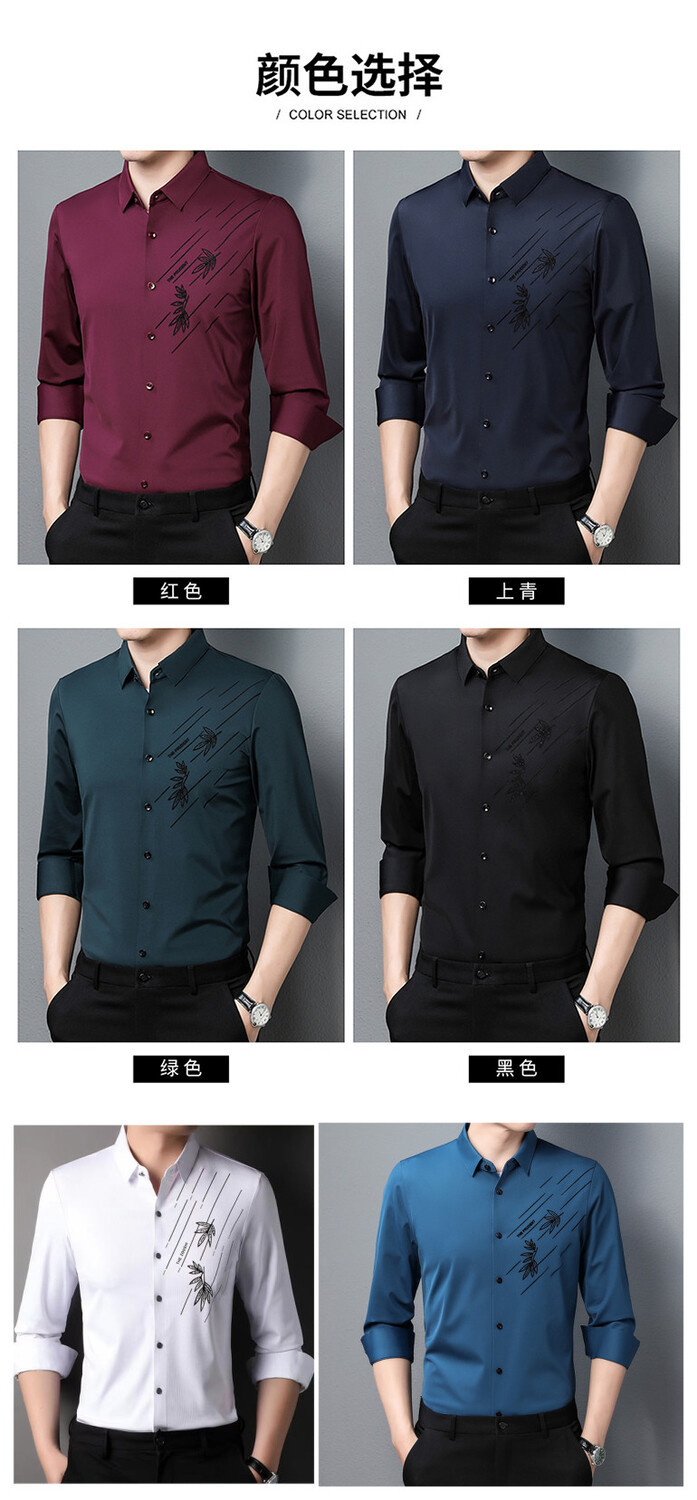 봄과 가을 새로운 남성의 긴 소매 원활한 비즈니스 셔츠 유행 캐주얼 셔츠 주름 방지 다림질 무료 높은 탄성 헤어