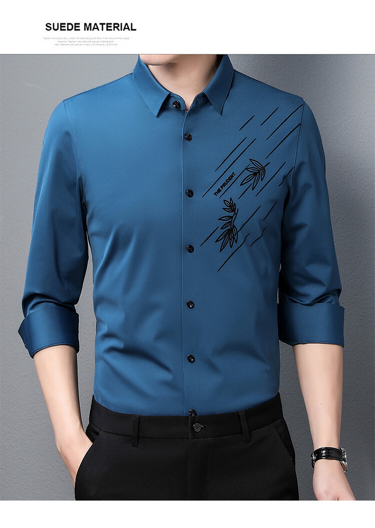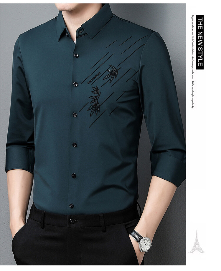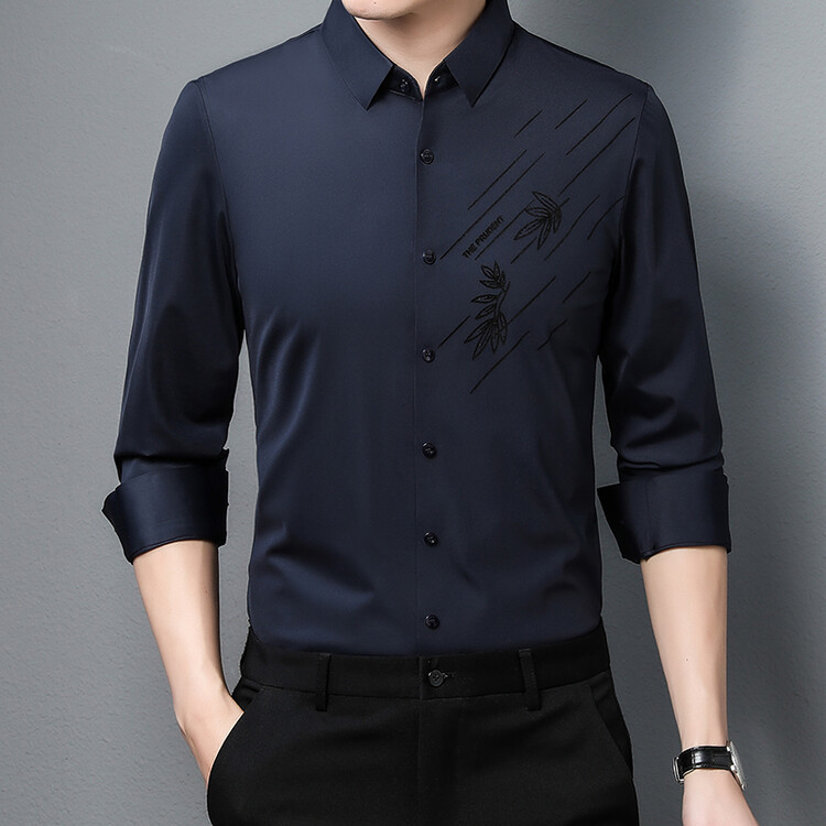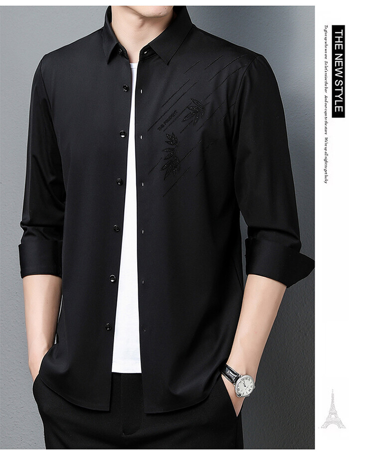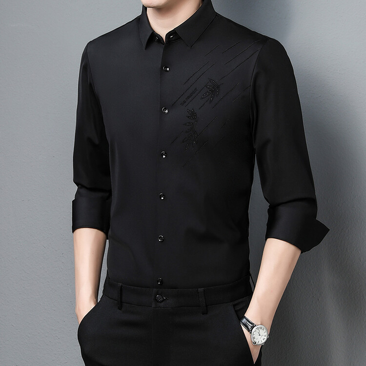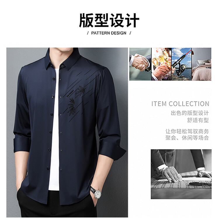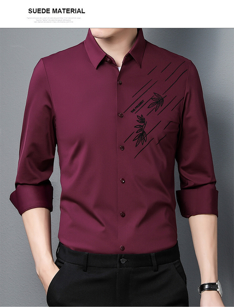 봄과 가을 새로운 남성의 긴 소매 원활한 비즈니스 셔츠 유행 캐주얼 셔츠 주름 방지 다림질 무료 높은 탄성 헤어
