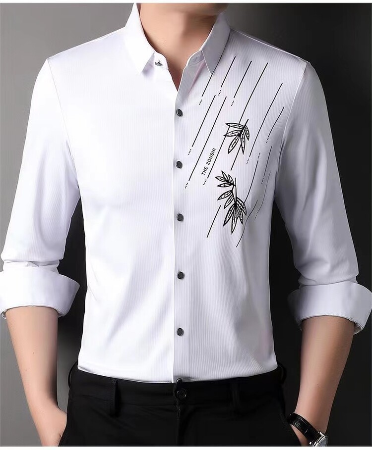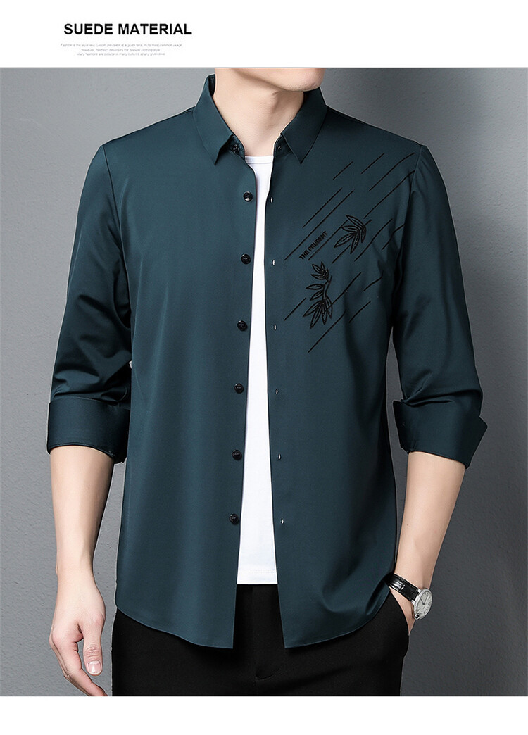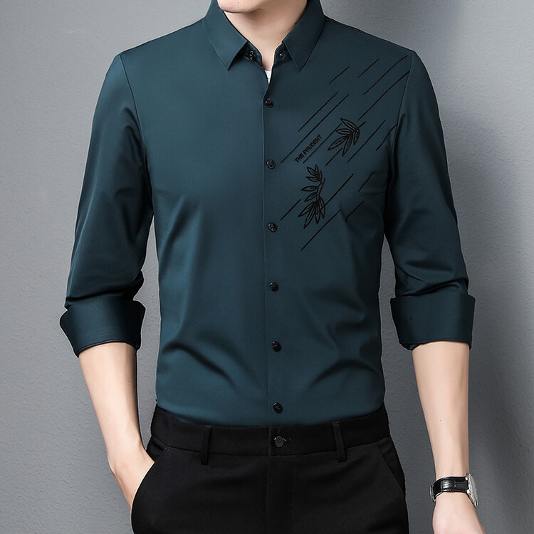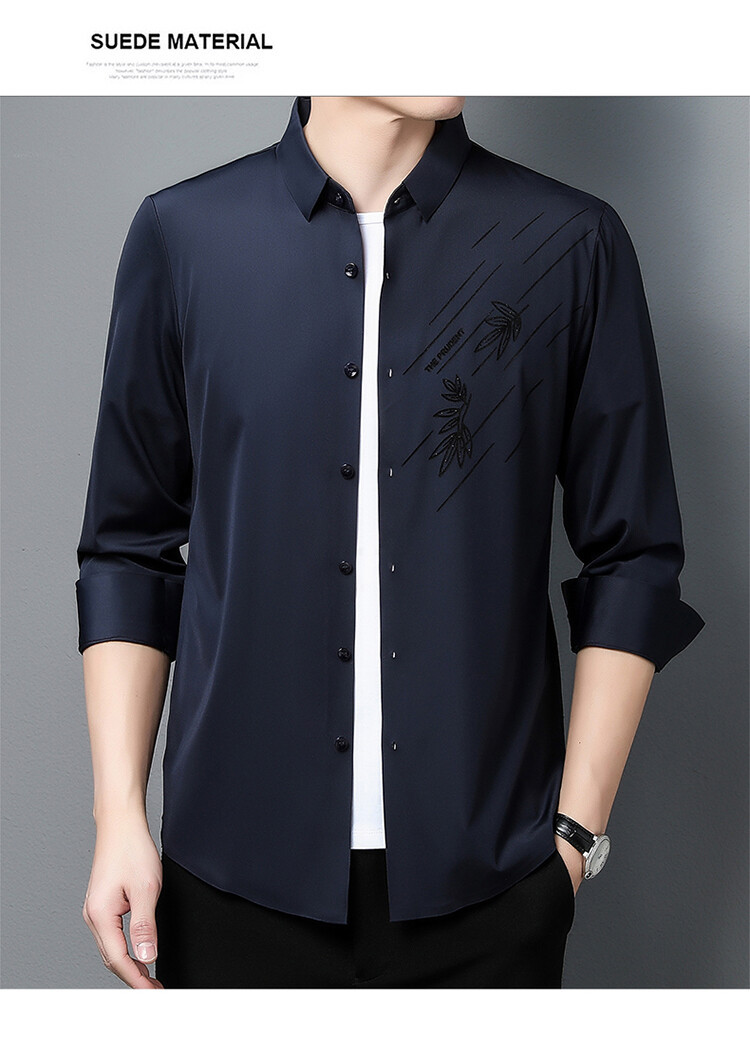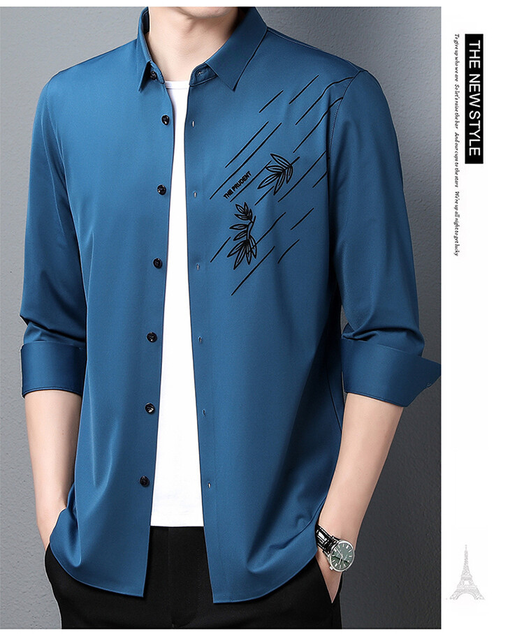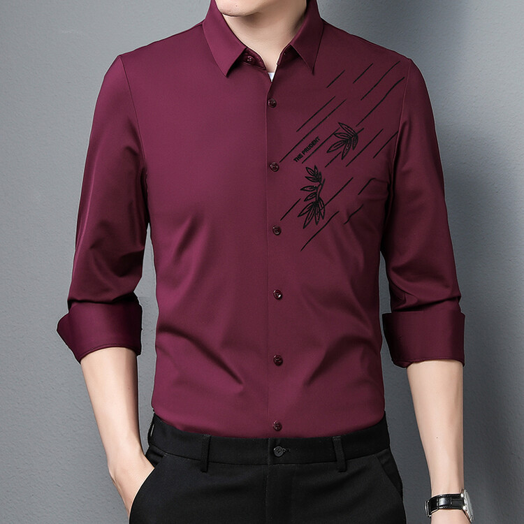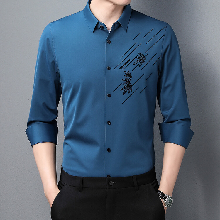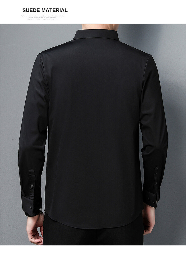 봄과 가을 새로운 남성의 긴 소매 원활한 비즈니스 셔츠 유행 캐주얼 셔츠 주름 방지 다림질 무료 높은 탄성 헤어