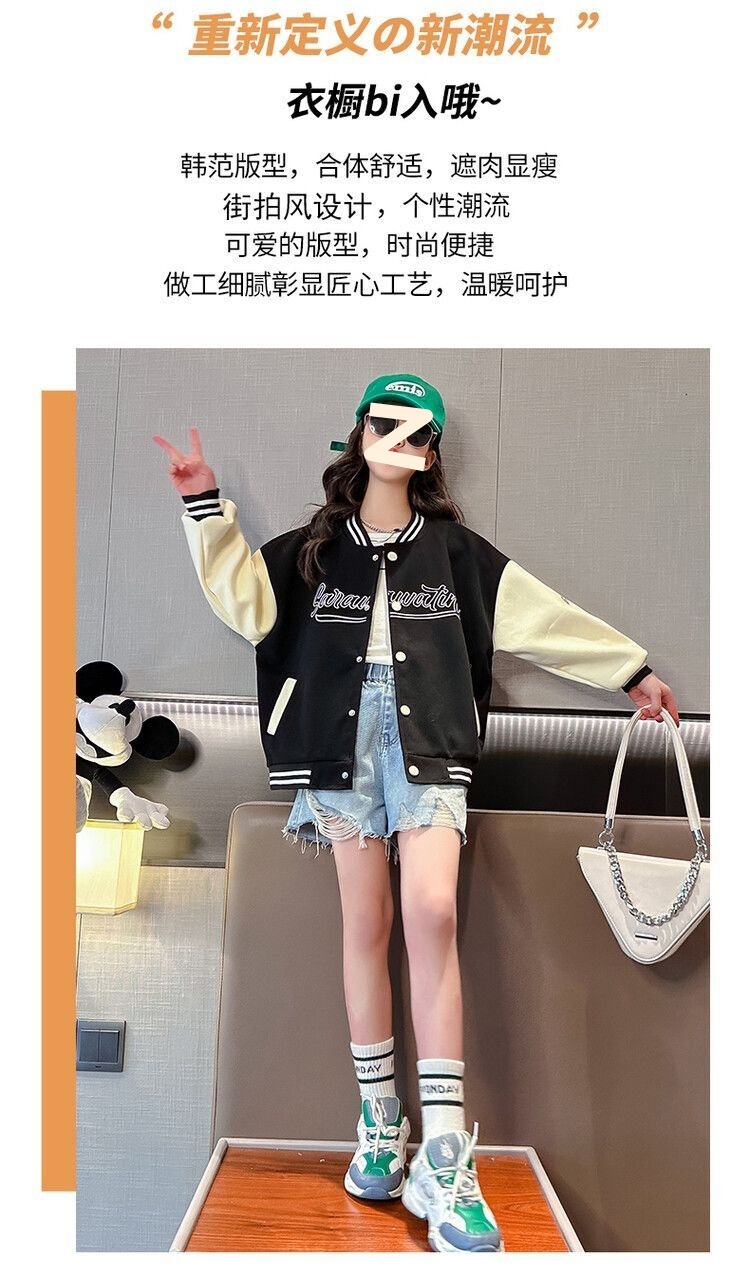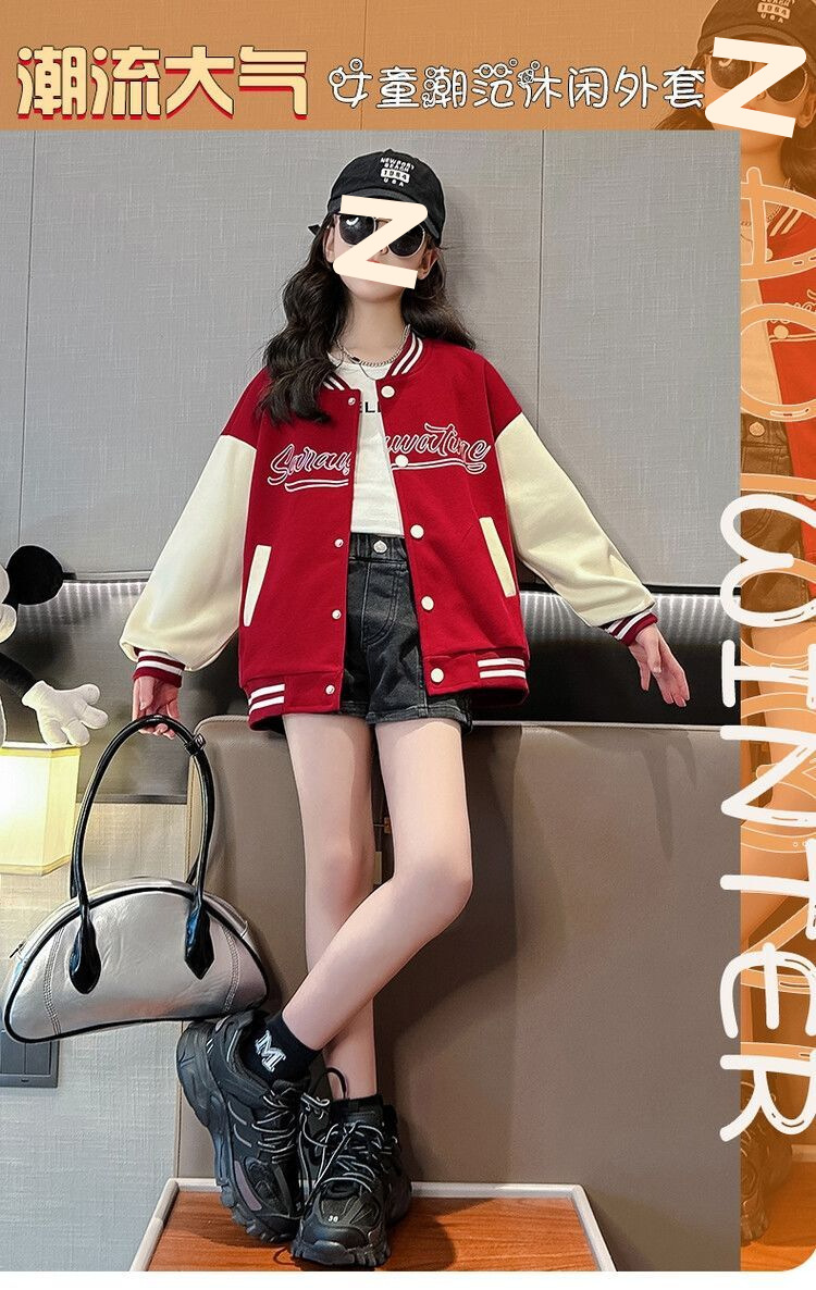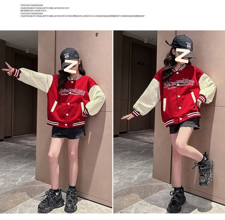 소녀의 봄과 가을 새로운 일본 야구 세트 2024 새로운 어린이 서양식 컬러 매칭 긴팔 한국 코트 카디건스토어 가기