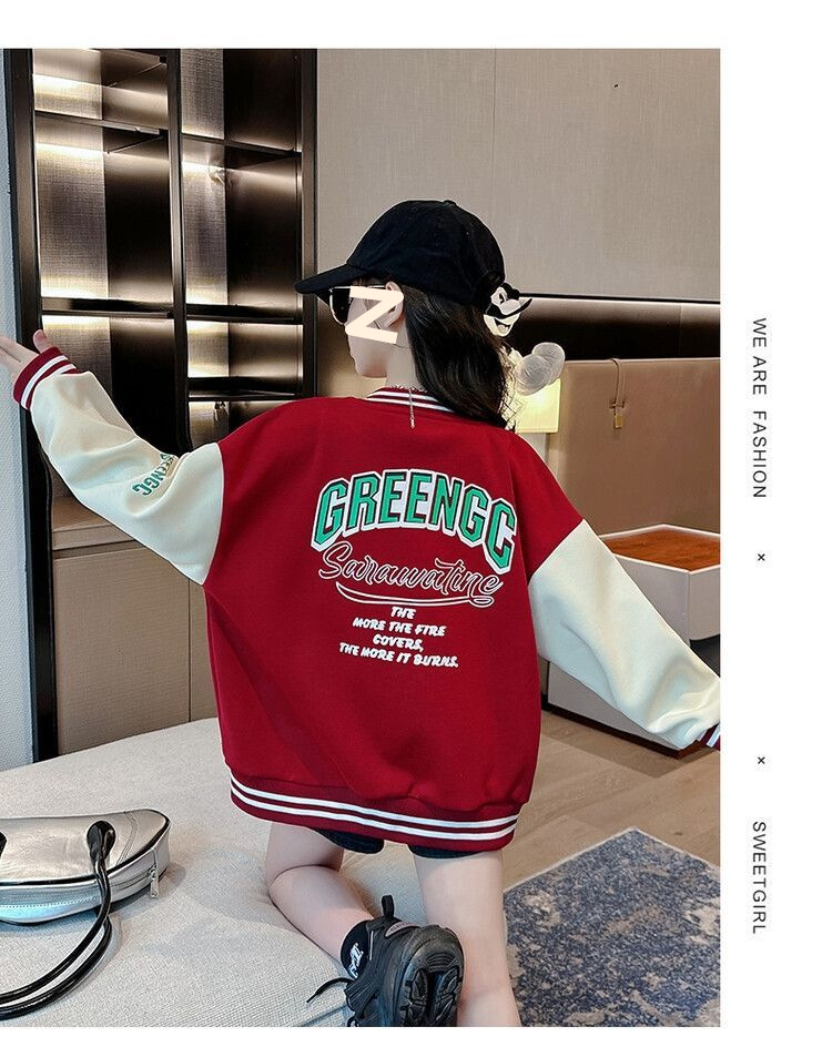 소녀의 봄과 가을 새로운 일본 야구 세트 2024 새로운 어린이 서양식 컬러 매칭 긴팔 한국 코트 카디건