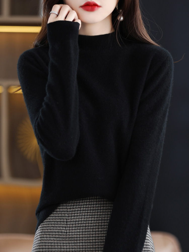 미니멀리스트 라이트 럭셔리 반 터틀넥 스웨터 여성의 가을과 겨울 느슨한 슬림 스웨터 2024 새로운 스타일 서양식 내베이스 셔츠