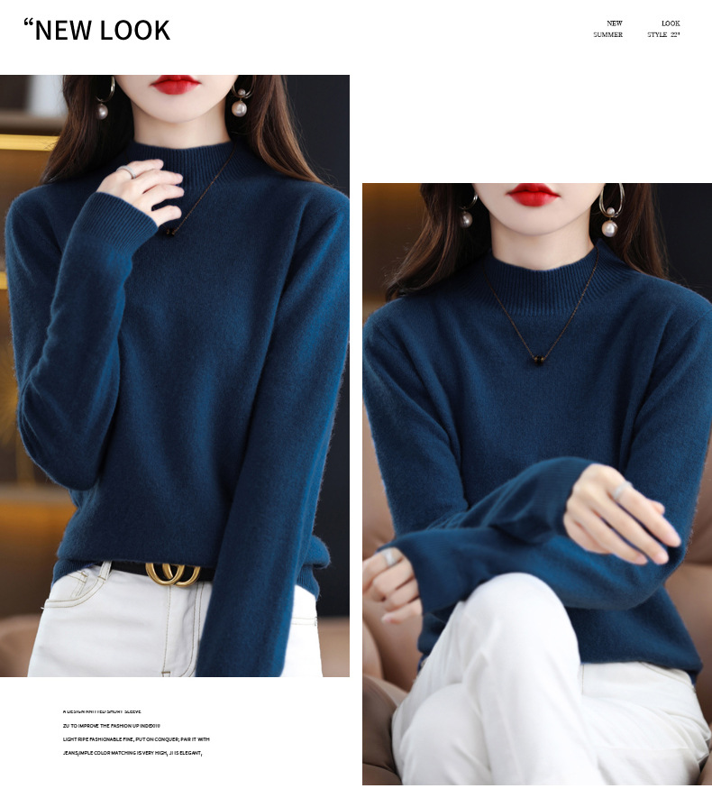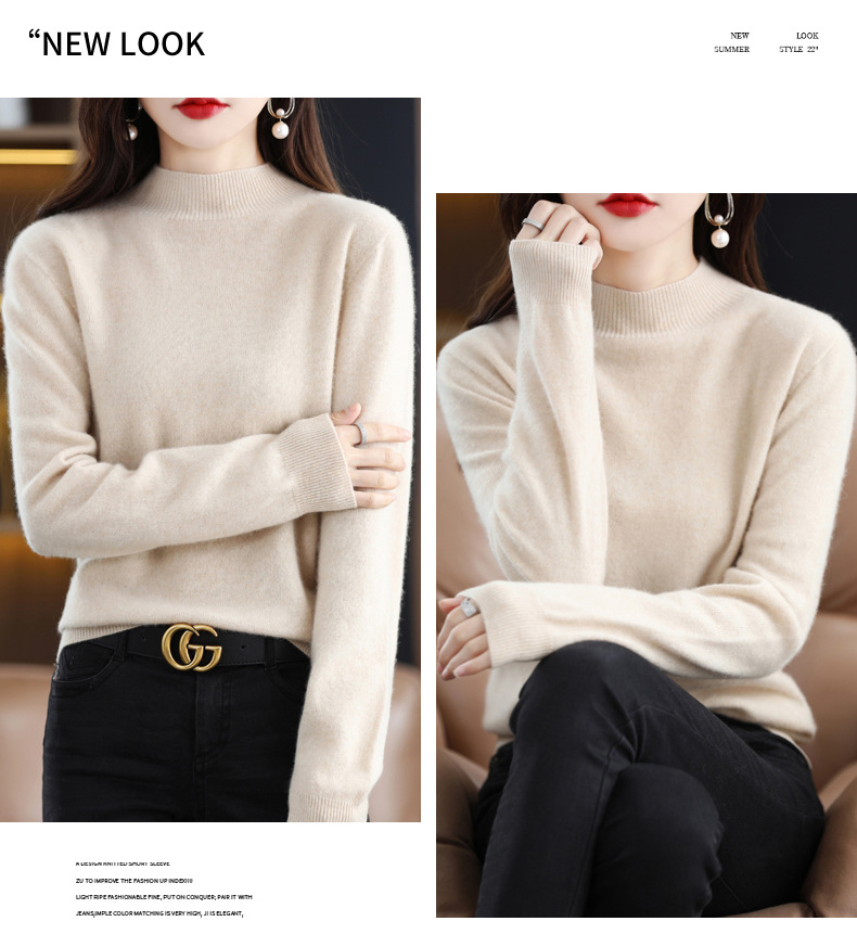 미니멀리스트 라이트 럭셔리 반 터틀넥 스웨터 여성의 가을과 겨울 느슨한 슬림 스웨터 2024 새로운 스타일 서양식 내베이스 셔츠스토어 가기