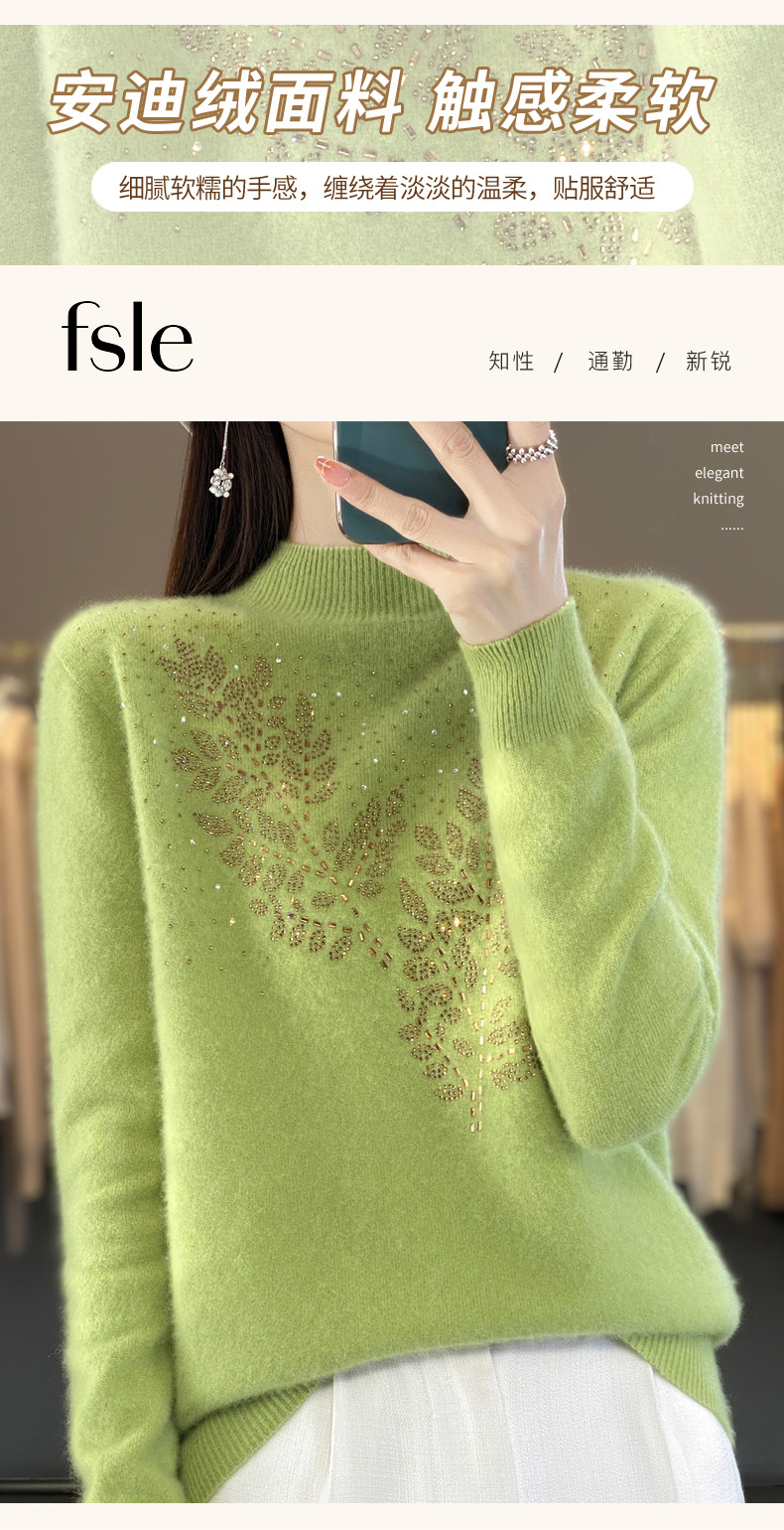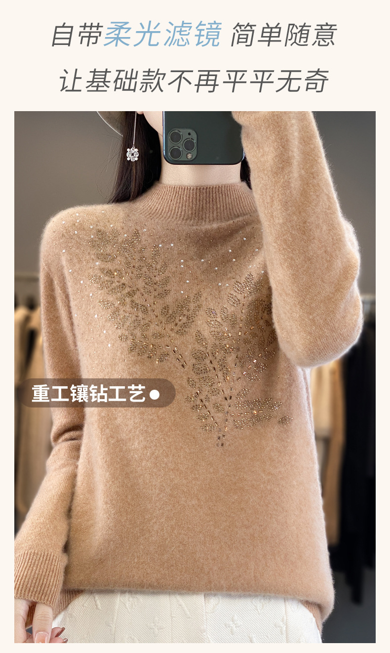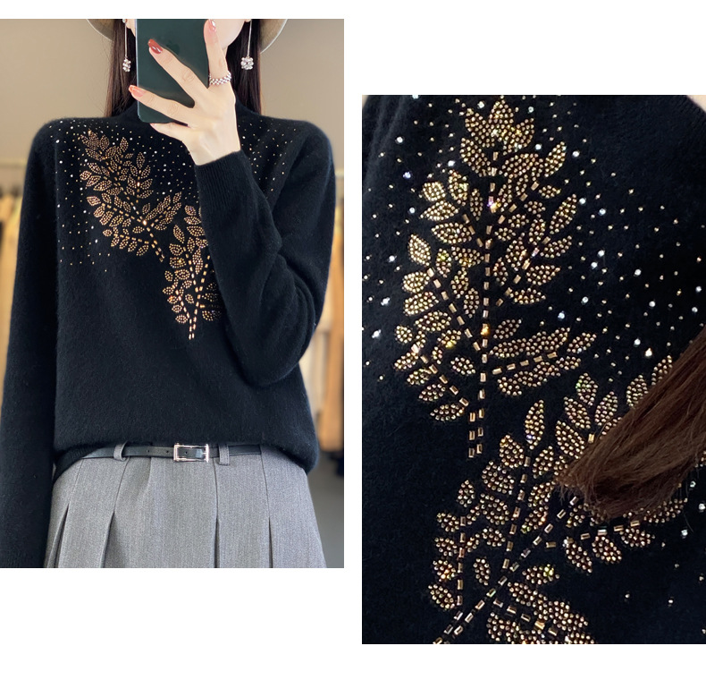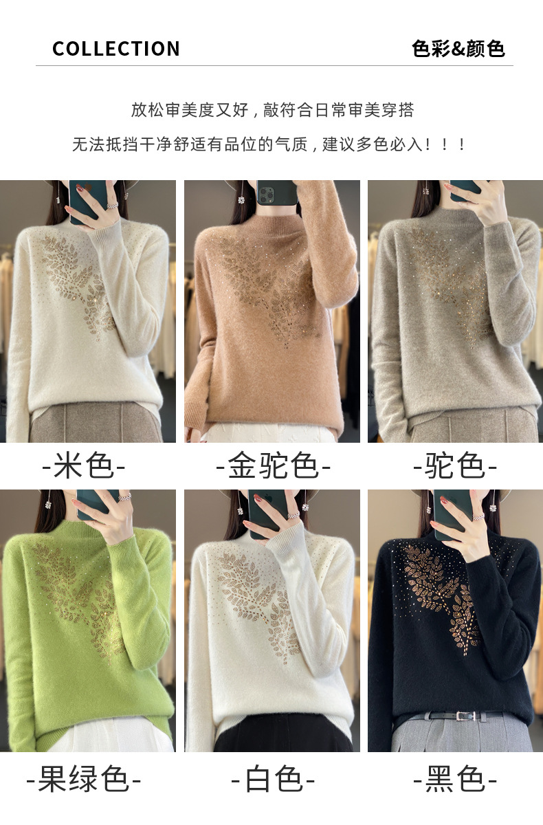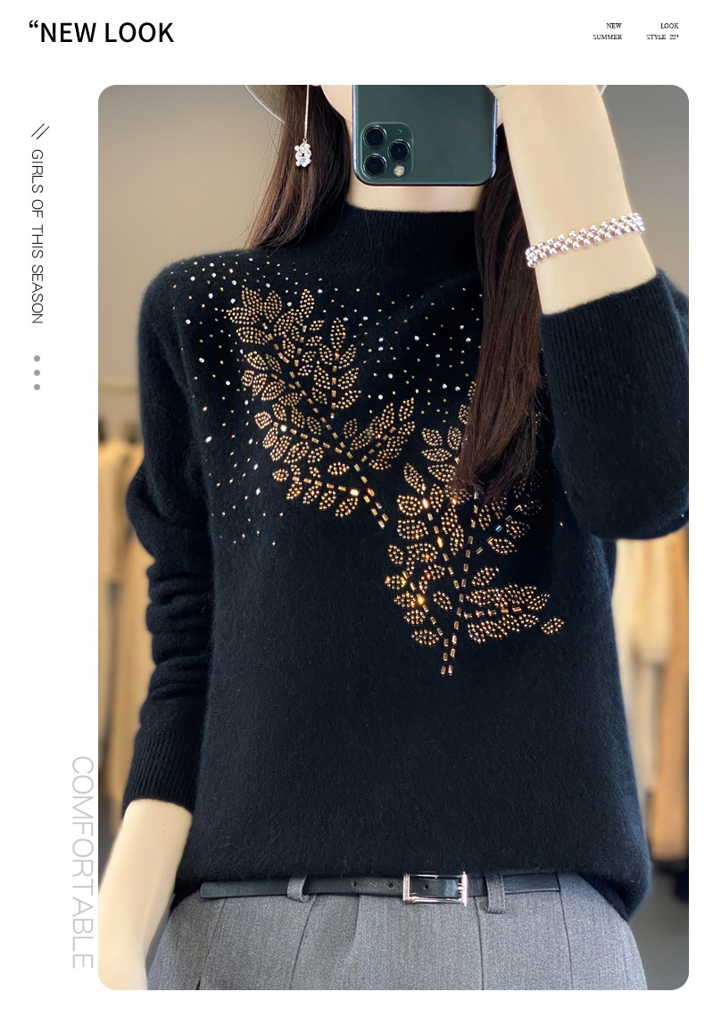 패셔너블하고 나이를 줄여주는 루즈하고 슬림한 긴팔 풀오버 스웨터, 핫 다이아몬드 스플라이싱 하프 터틀넥 스웨터스토어 가기