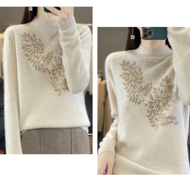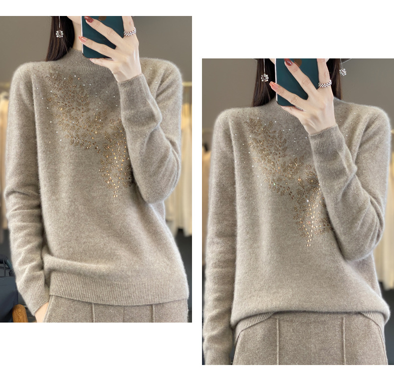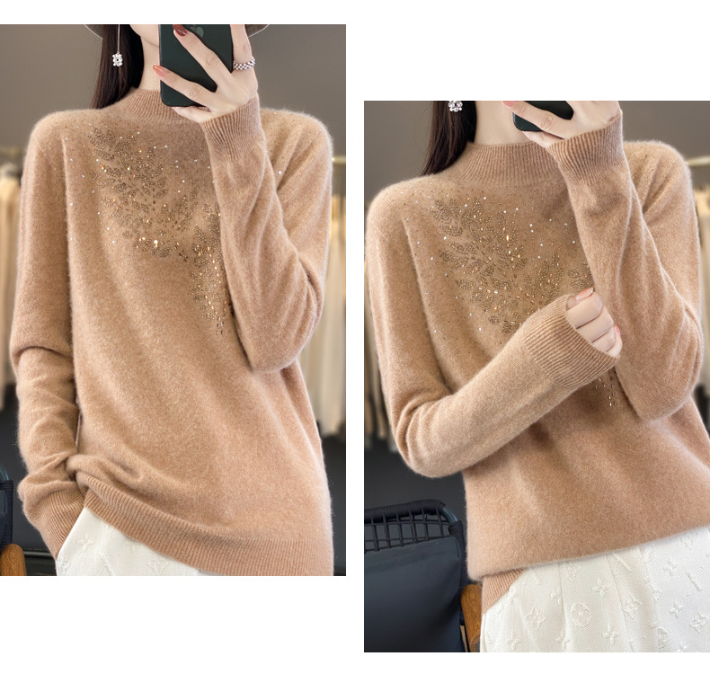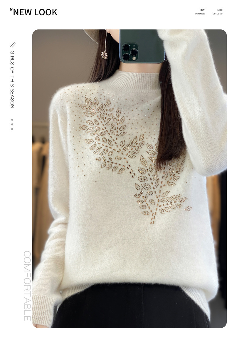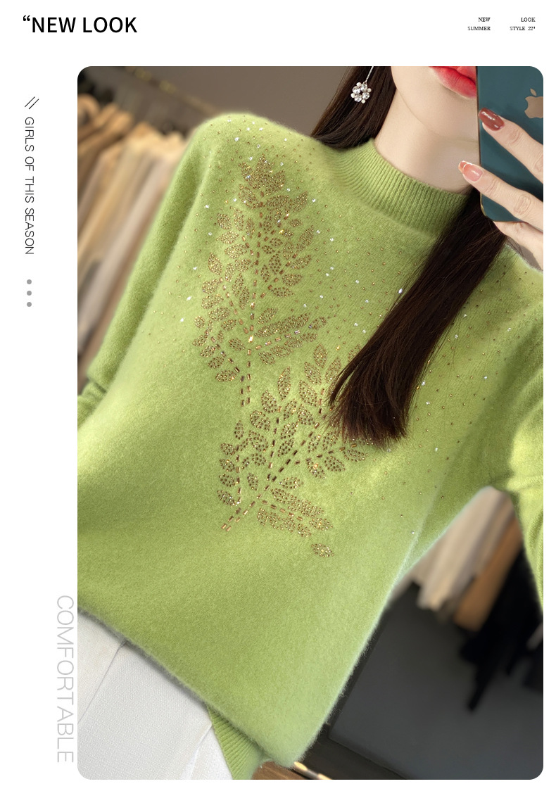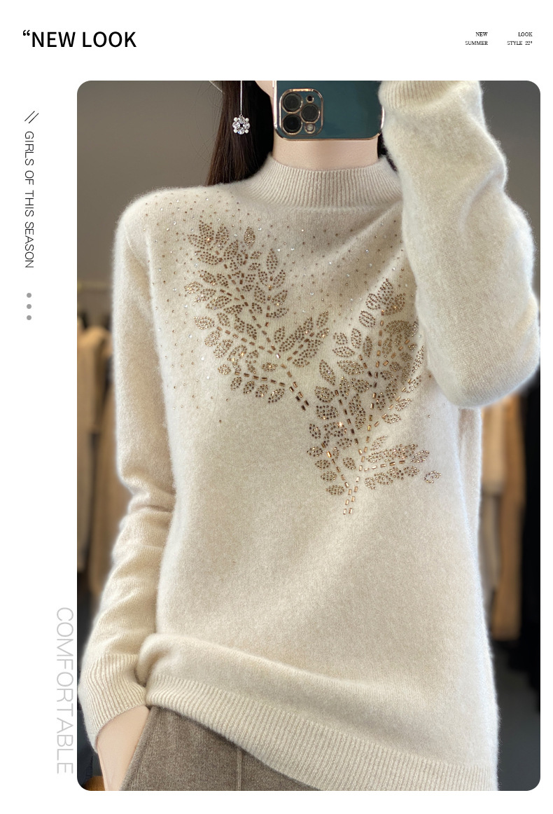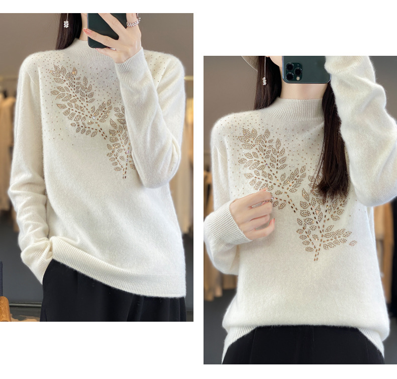 패셔너블하고 나이를 줄여주는 루즈하고 슬림한 긴팔 풀오버 스웨터, 핫 다이아몬드 스플라이싱 하프 터틀넥 스웨터스토어 가기