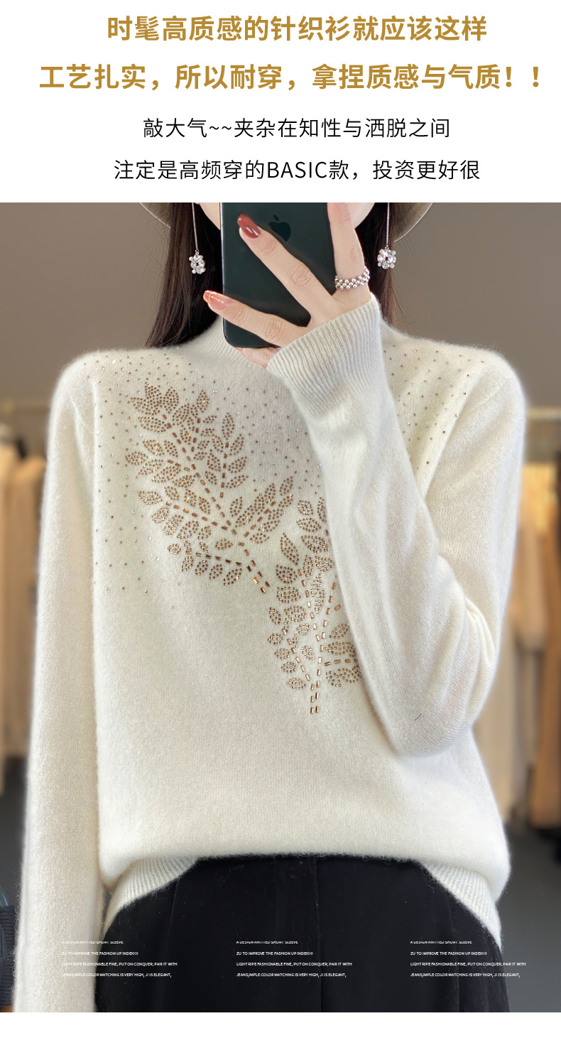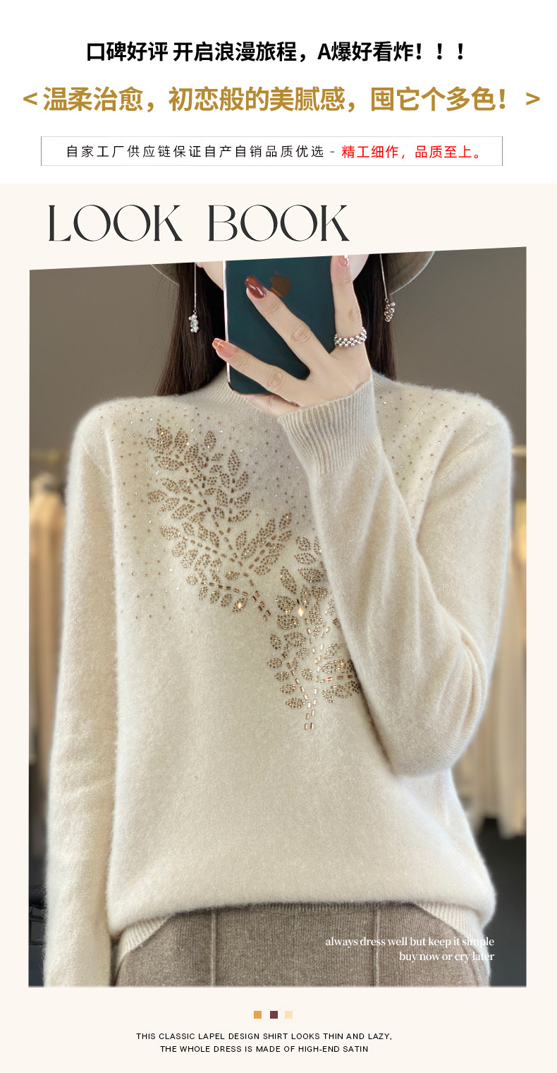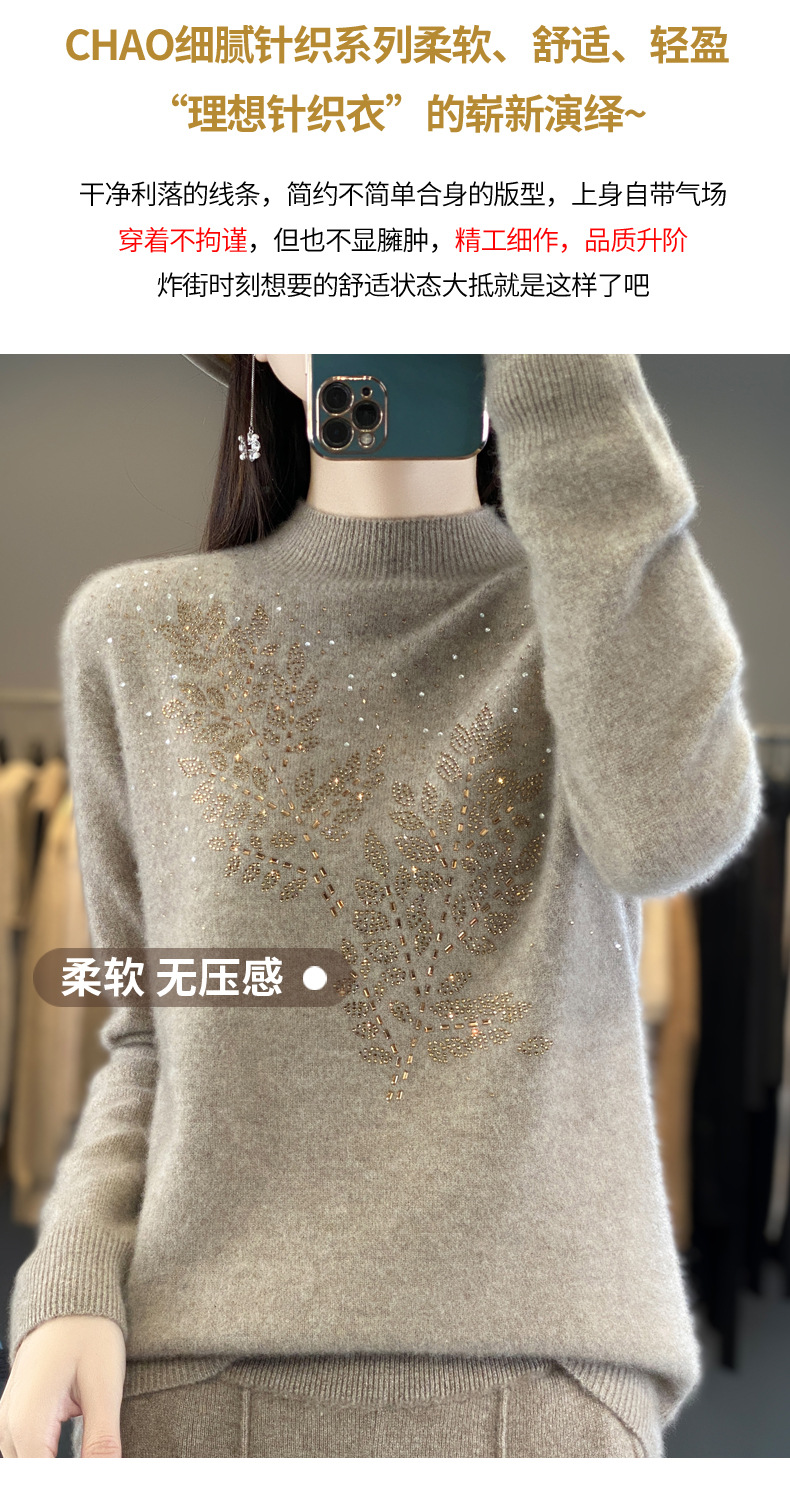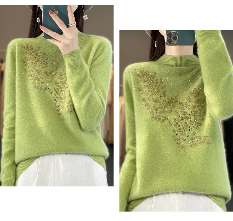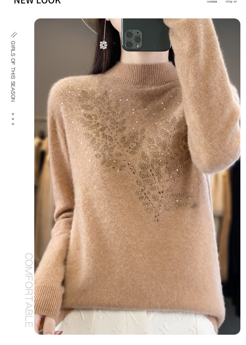 패셔너블하고 나이를 줄여주는 루즈하고 슬림한 긴팔 풀오버 스웨터, 핫 다이아몬드 스플라이싱 하프 터틀넥 스웨터스토어 가기