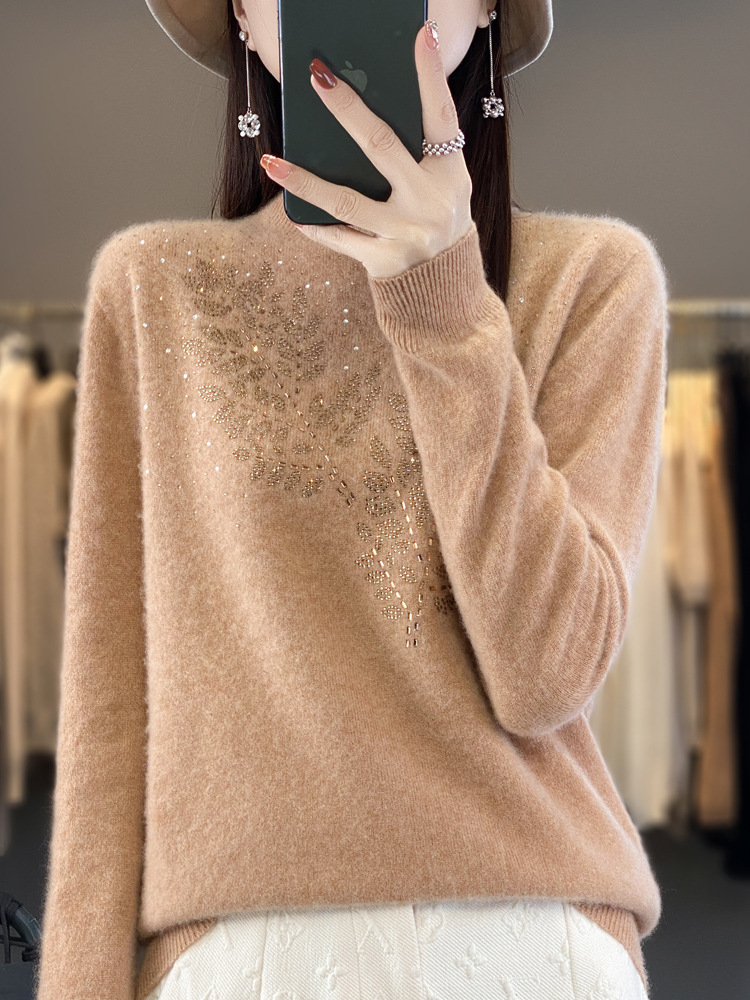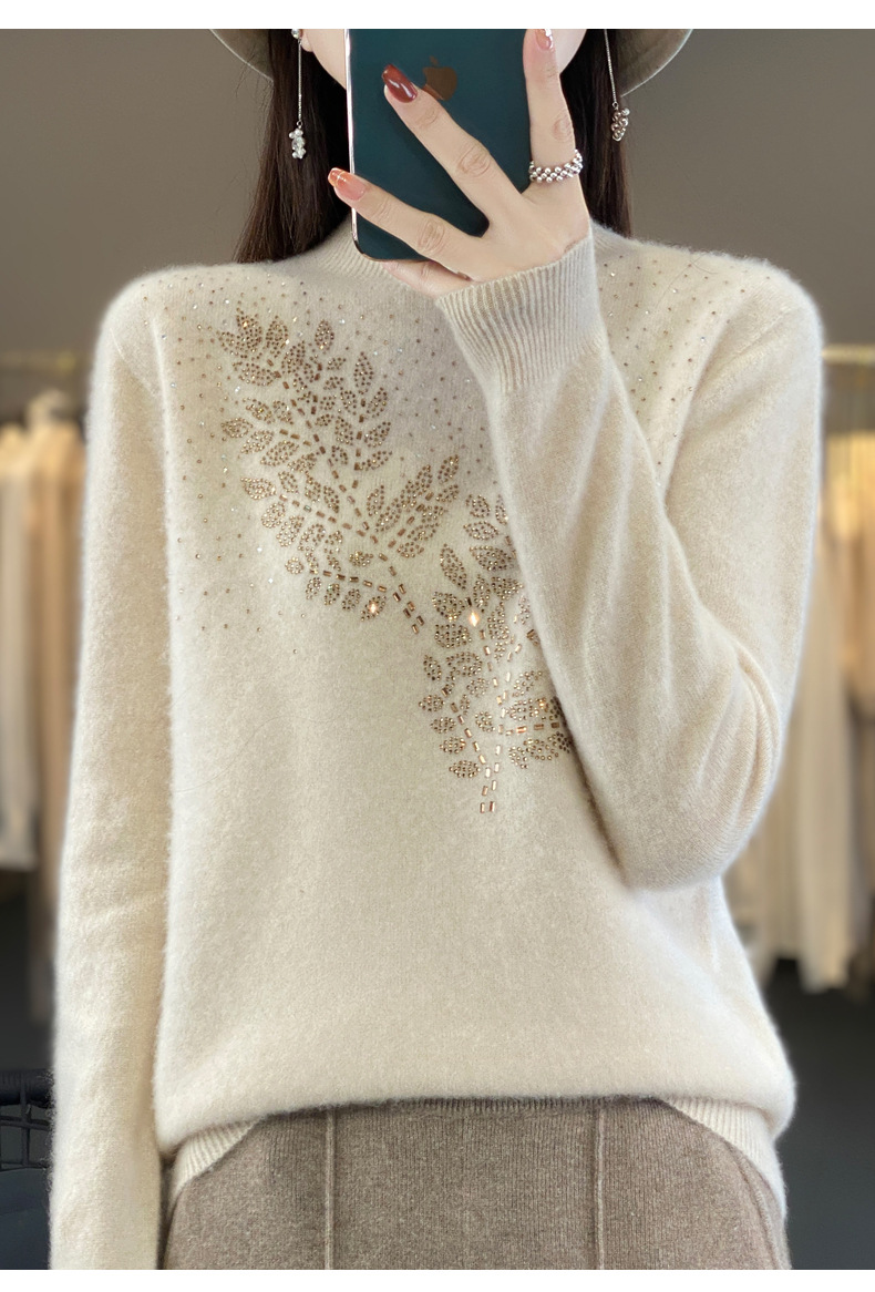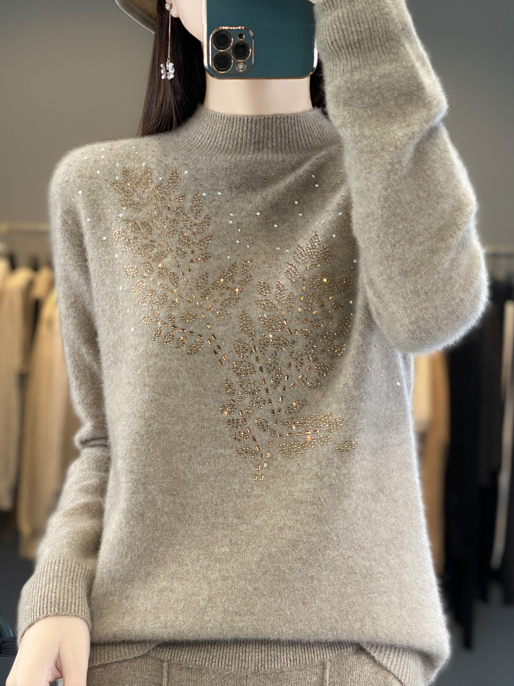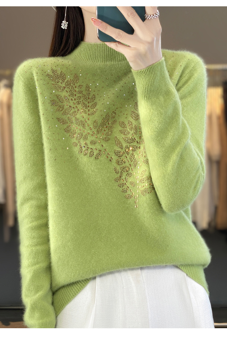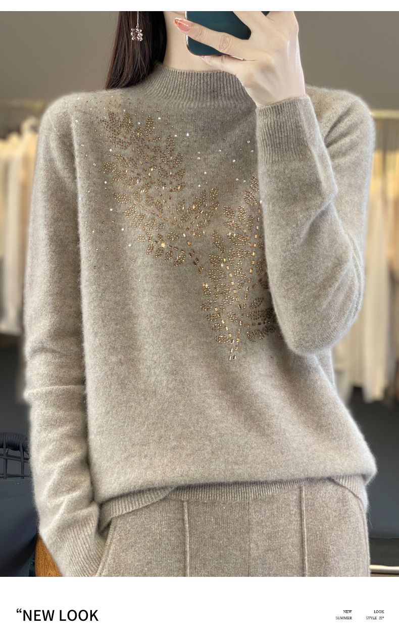 패셔너블하고 나이를 줄여주는 루즈하고 슬림한 긴팔 풀오버 스웨터, 핫 다이아몬드 스플라이싱 하프 터틀넥 스웨터스토어 가기