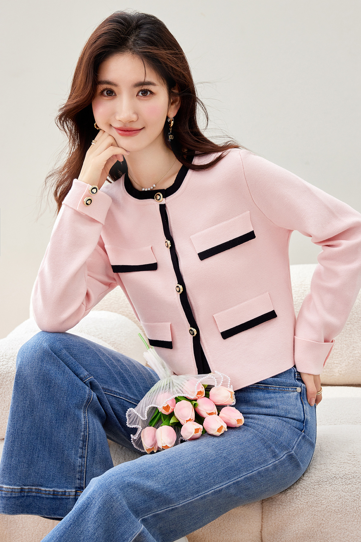 Xiaoxiang 스타일 코트 여성용 Miu Miu 2024 새로운 가을과 겨울 니트 카디건 외복 스웨터