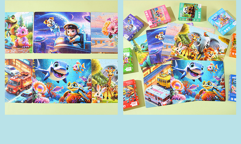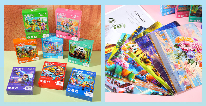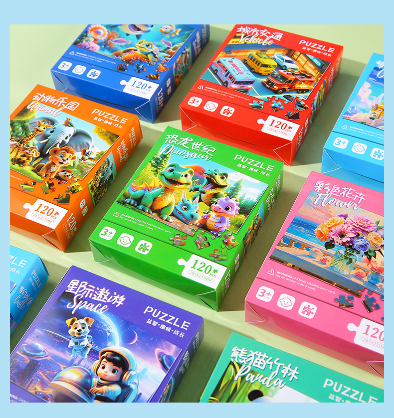 새로운 어린이 재미있는 퍼즐 120 만화 패턴 박스형 퍼즐 아기 조기 교육 작은 장난감 마구간 도매스토어 가기