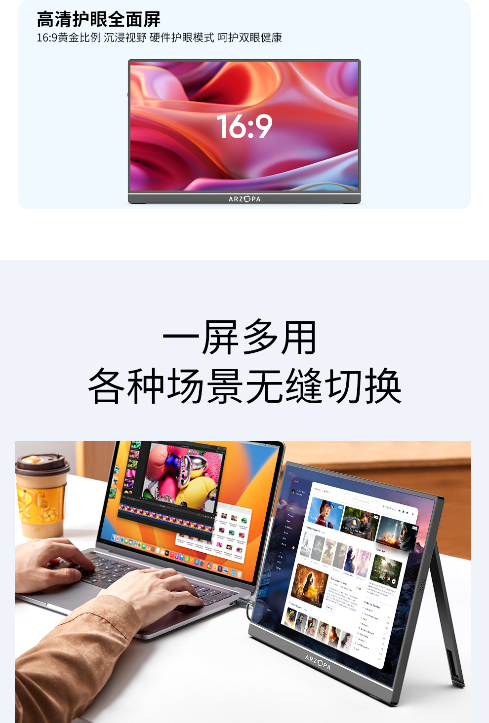 ARZOPA17.3 인치 휴대용 디스플레이 노트북 컴퓨터 휴대 전화 확장 화면 스위치/PS5 외부 화면스토어 가기