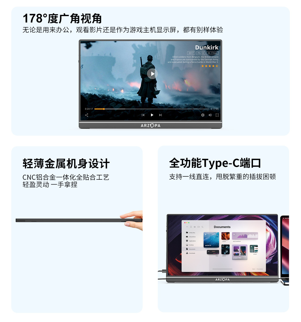 ARZOPA17.3 인치 휴대용 디스플레이 노트북 컴퓨터 휴대 전화 확장 화면 스위치/PS5 외부 화면
