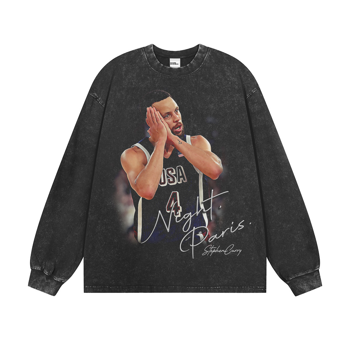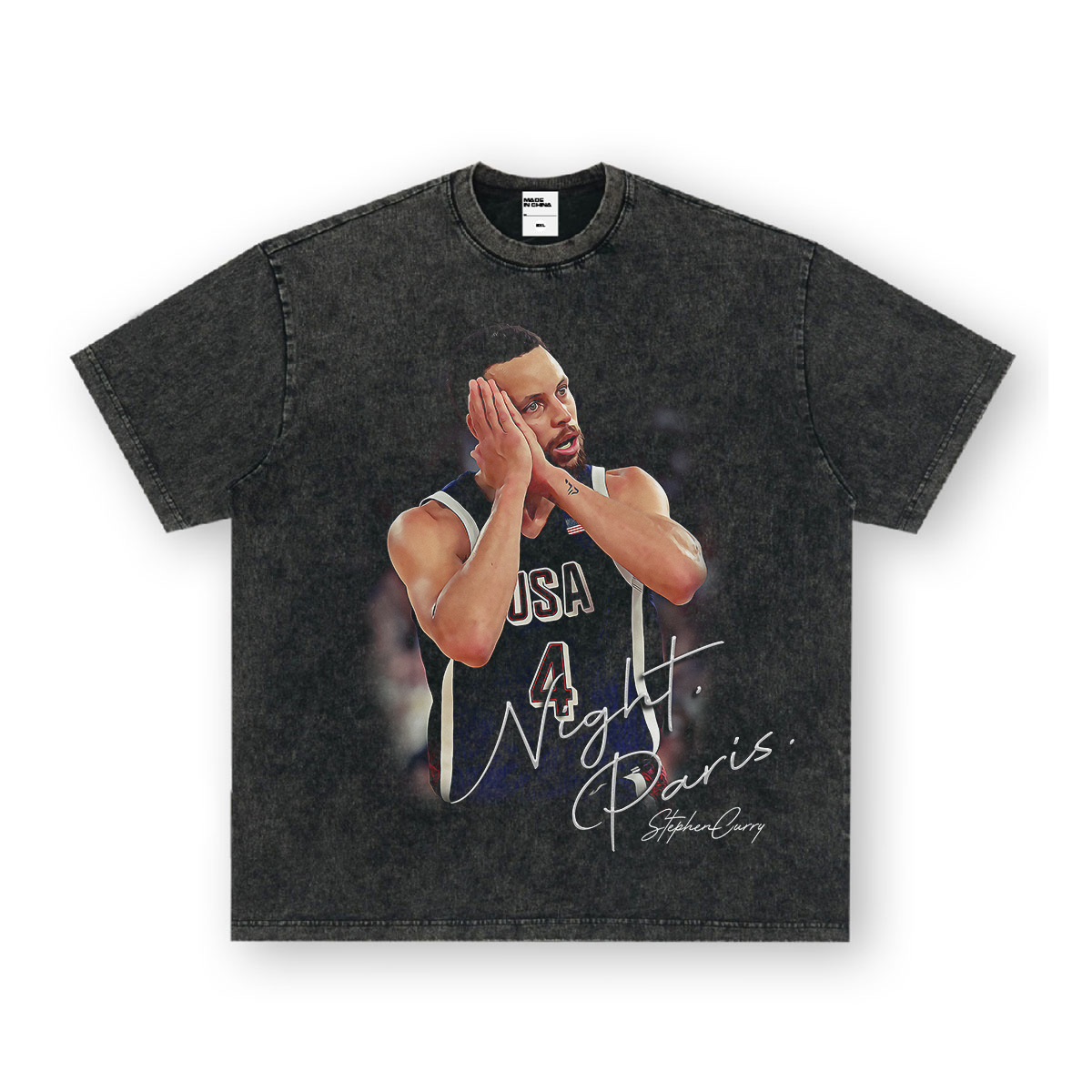 카레 수면 파리 굿나잇 반팔 티셔츠 남성용 아메리칸 스트리트 인쇄 크로스 보더 헤비 빈티지 세탁 티셔츠