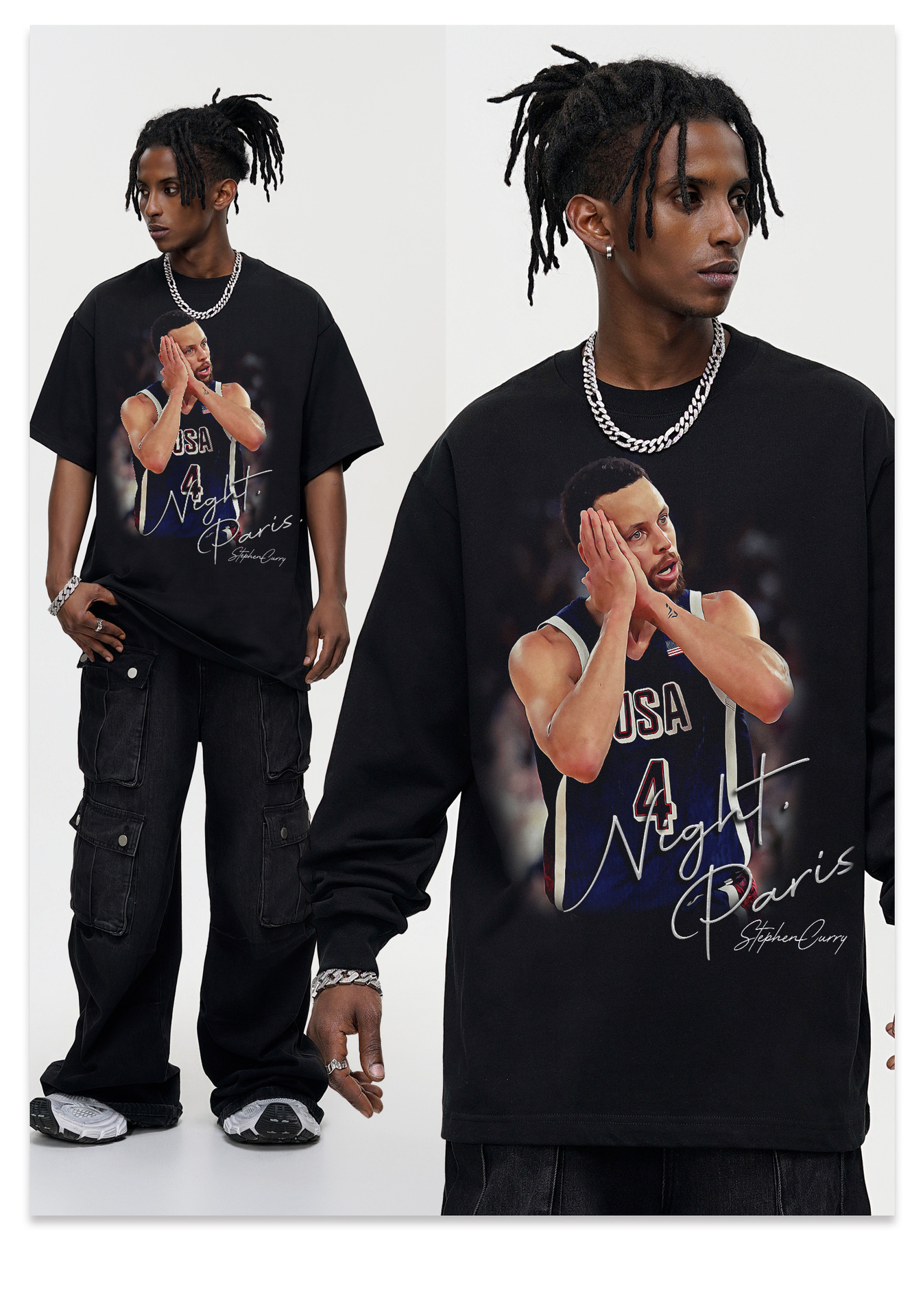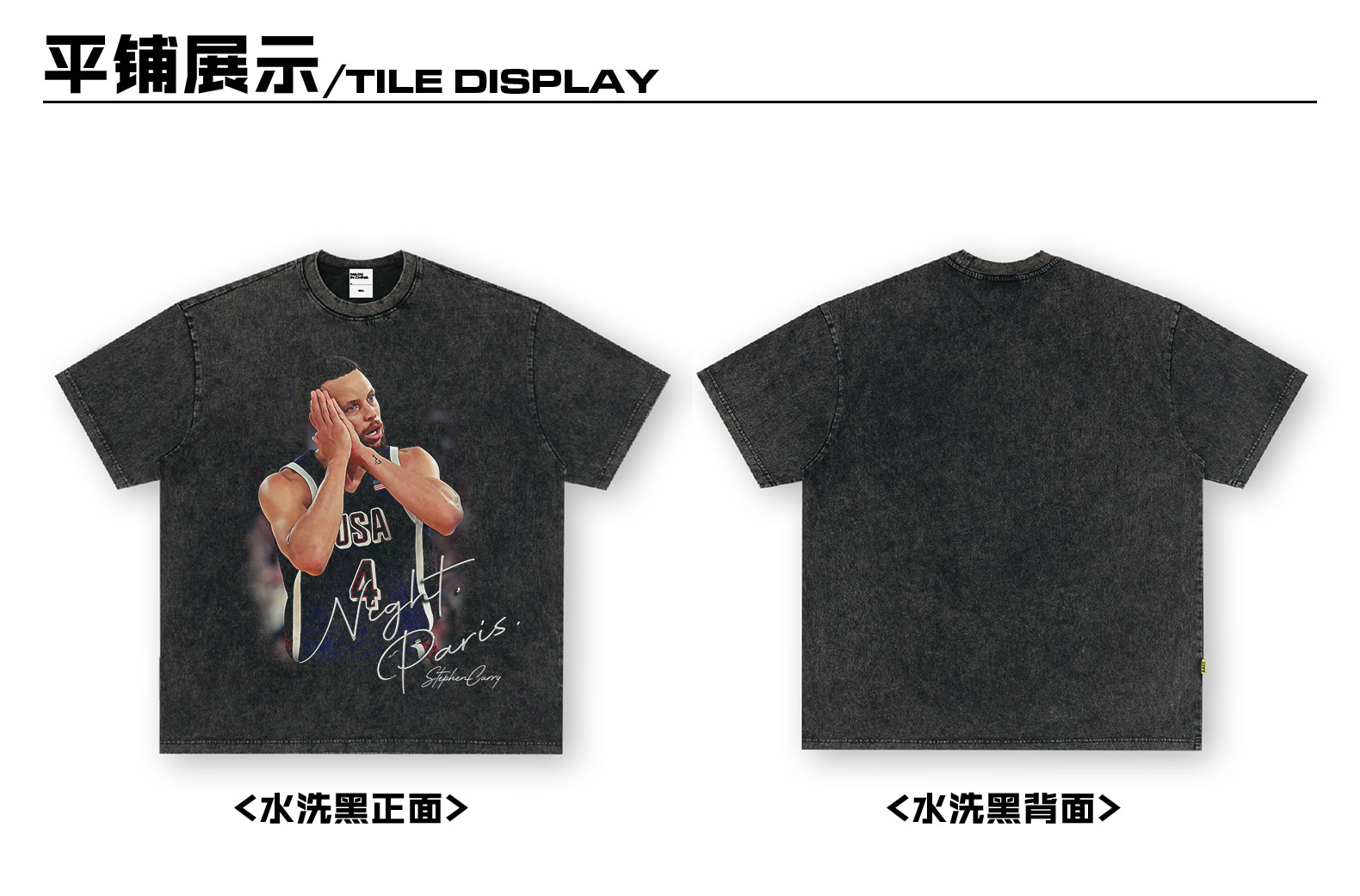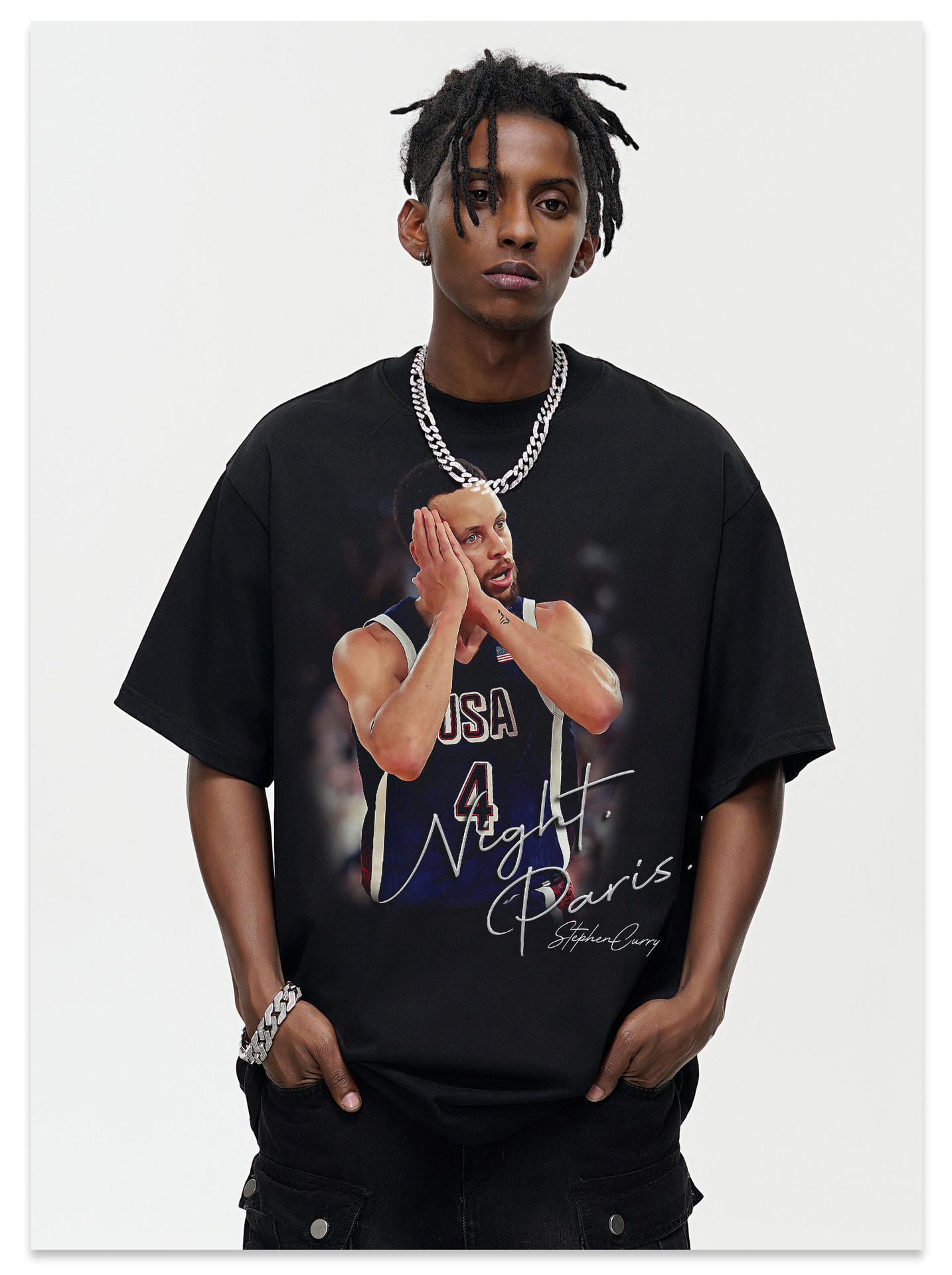 카레 수면 파리 굿나잇 반팔 티셔츠 남성용 아메리칸 스트리트 인쇄 크로스 보더 헤비 빈티지 세탁 티셔츠스토어 가기