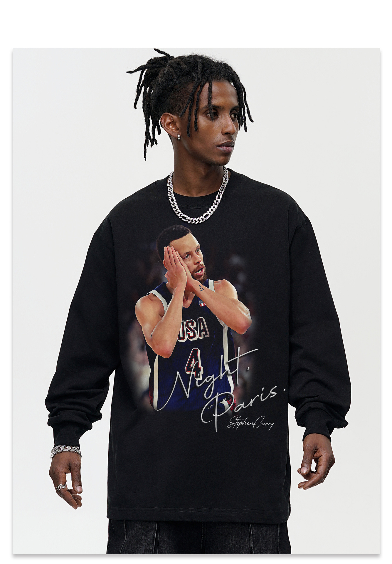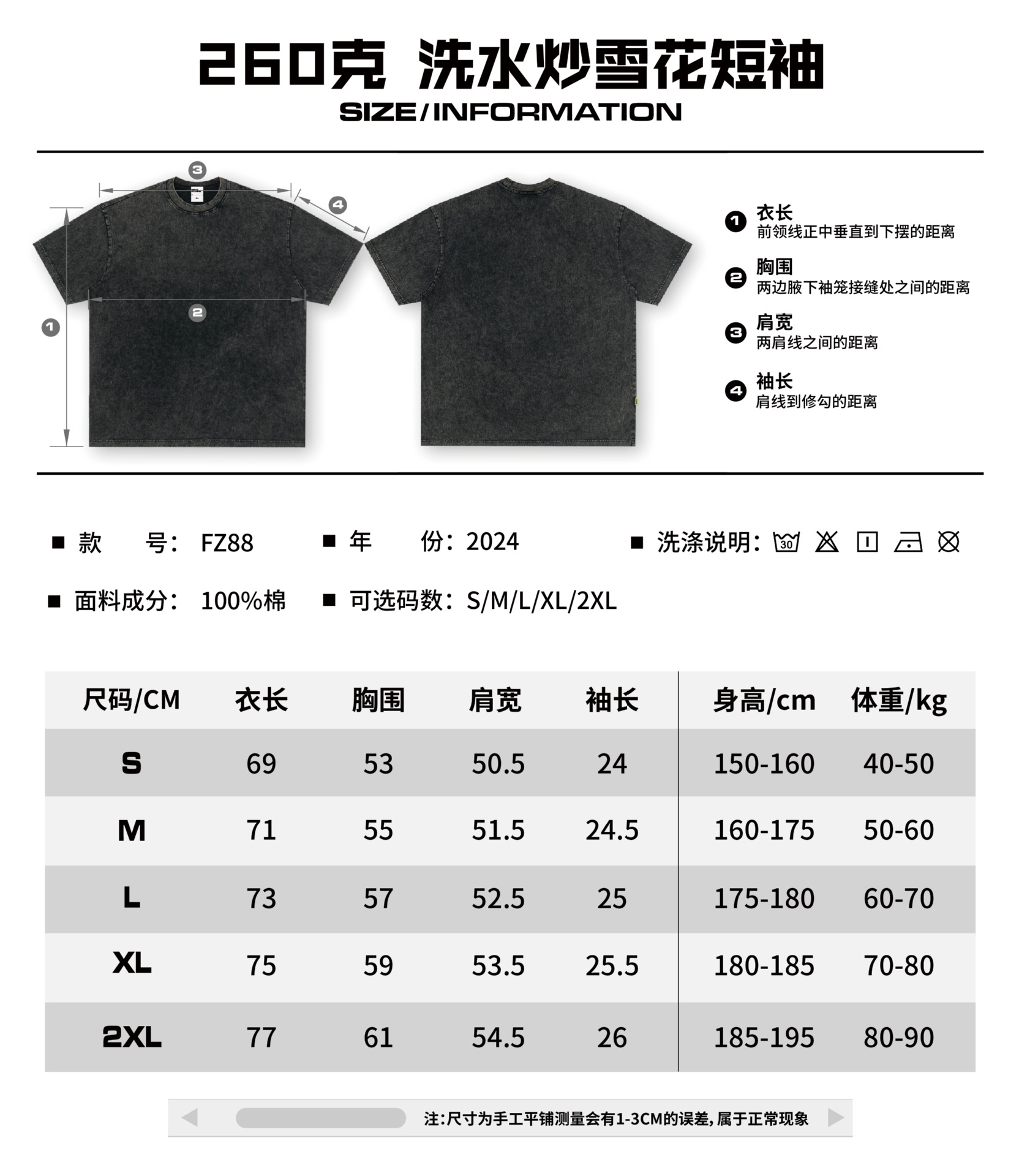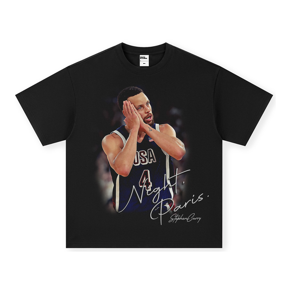 카레 수면 파리 굿나잇 반팔 티셔츠 남성용 아메리칸 스트리트 인쇄 크로스 보더 헤비 빈티지 세탁 티셔츠스토어 가기