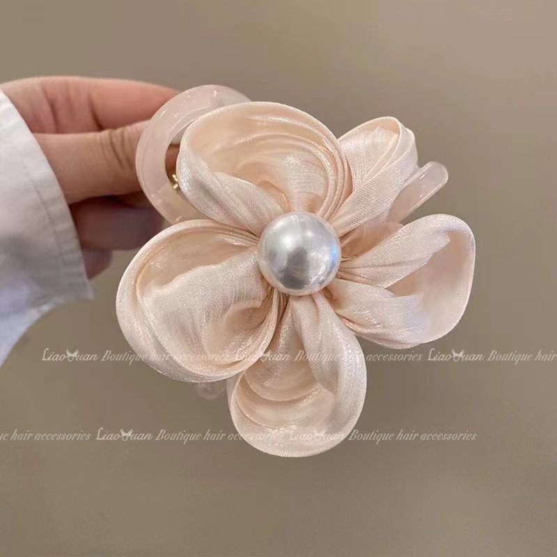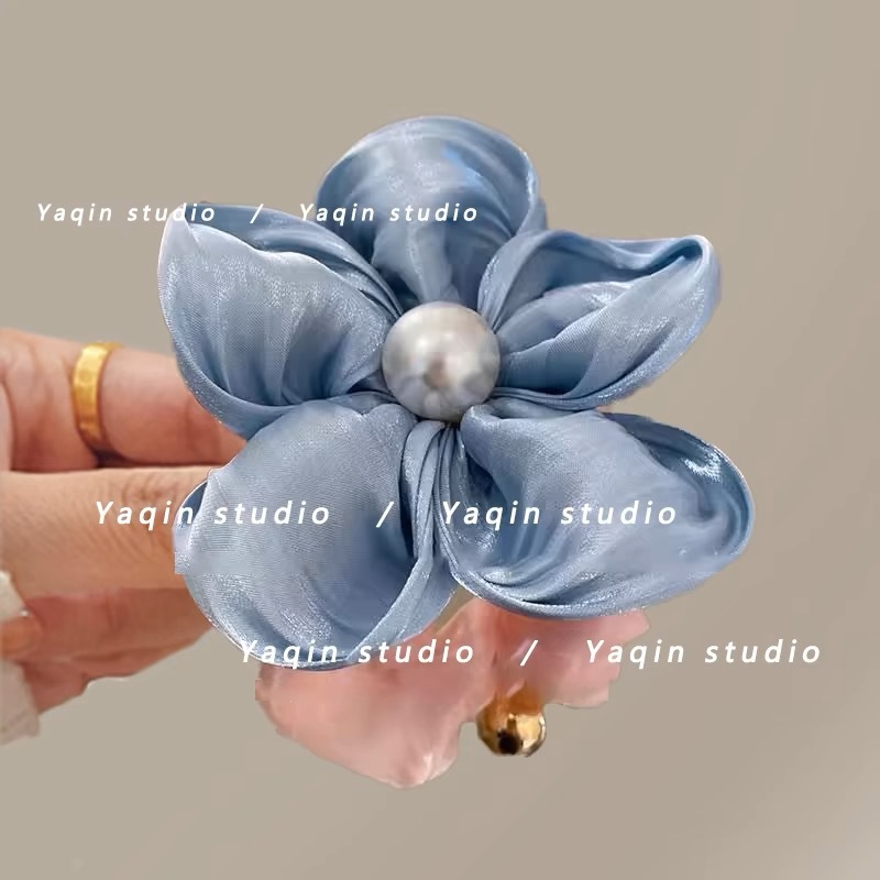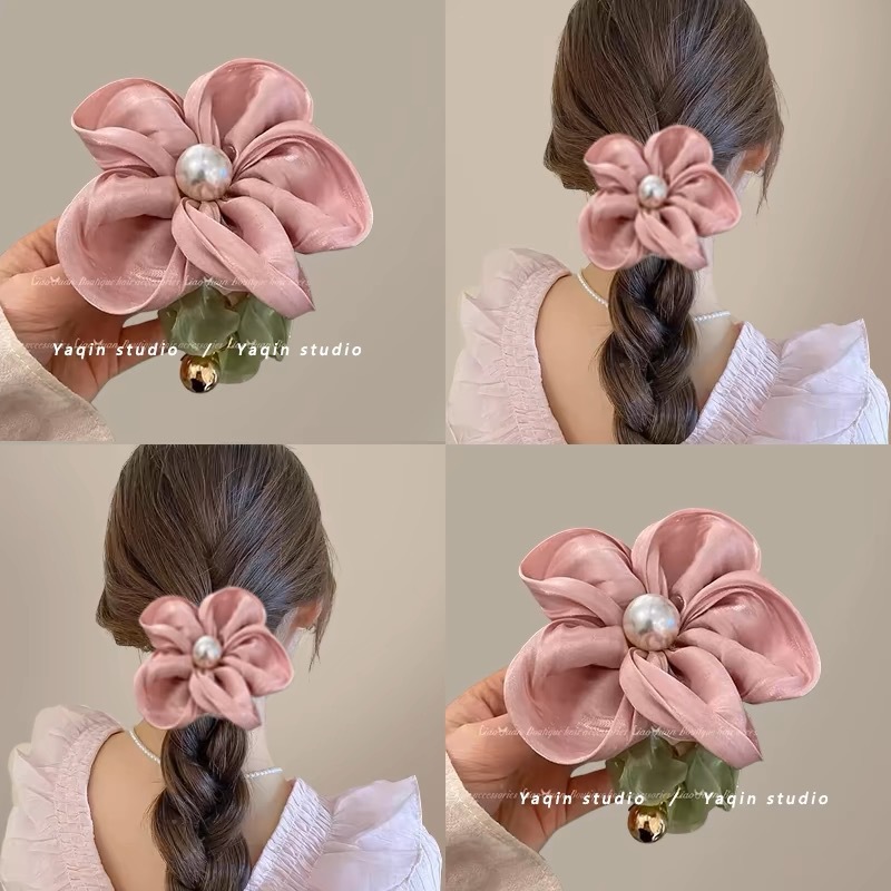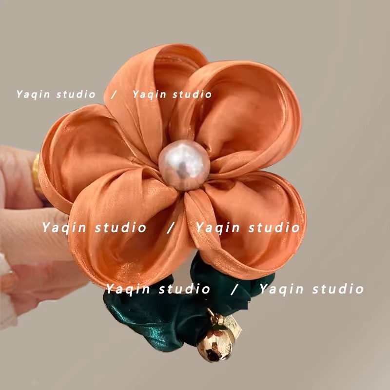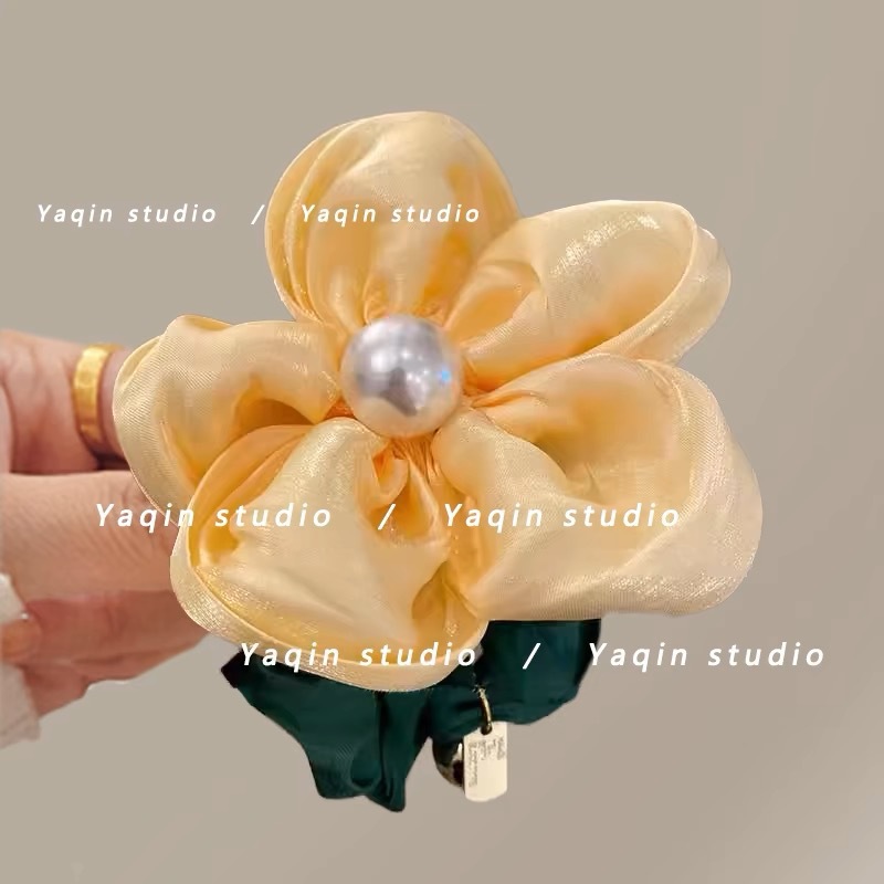 2024 한국 스타일 새로운 하이 엔드 대형 장내 헤어 링 요정 스타일 고무 텐더 여성 넥타이 헤드 여름과 봄 분위기 꽃 진주 헤어 링
