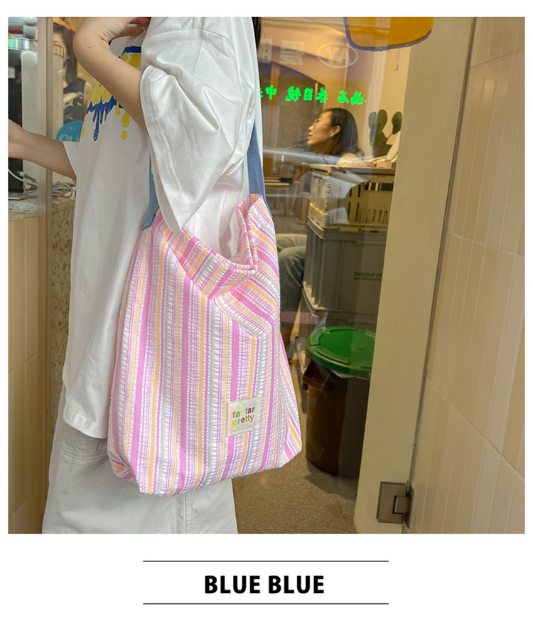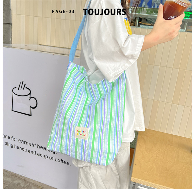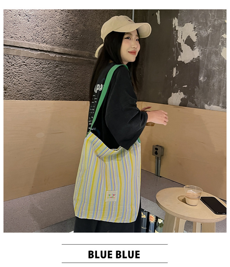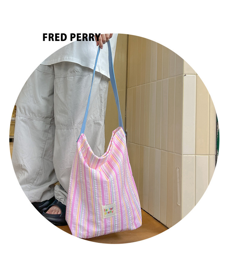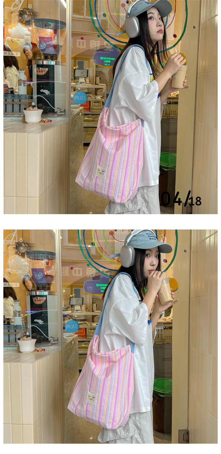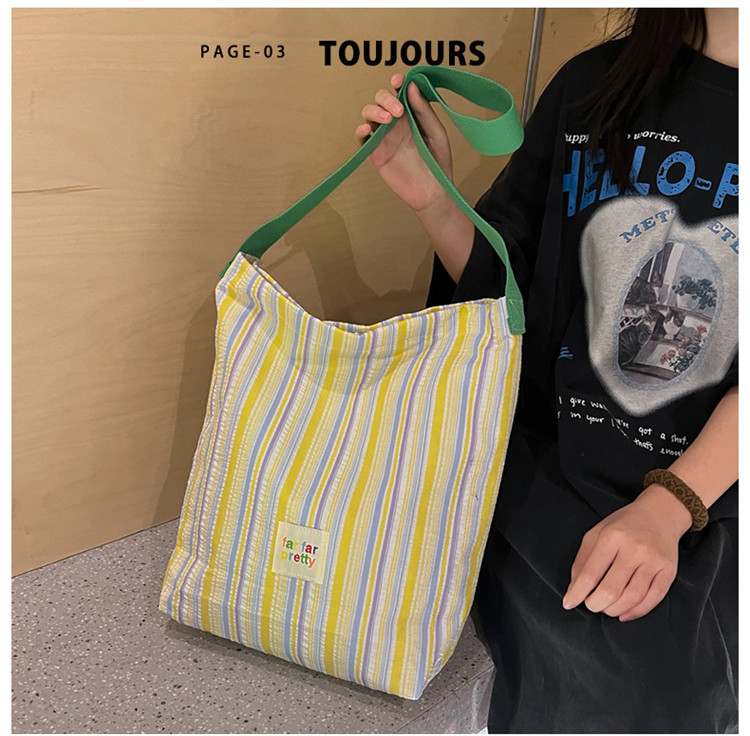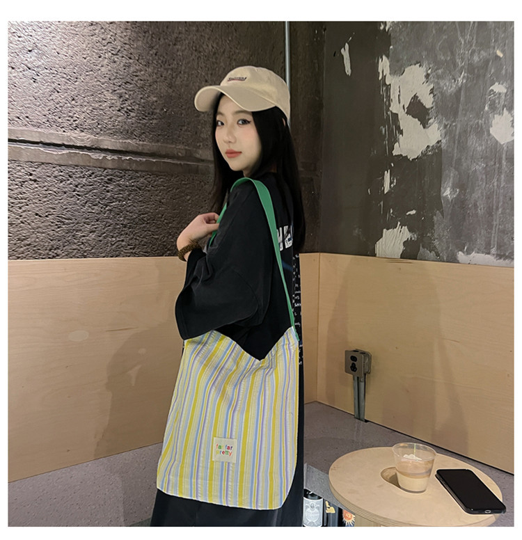 한국 스타일 유행 토트 어깨 가방 2024 새로운 스타일 줄무늬 어깨 가방 간단한 콘트라스트 캔버스 크로스 백 여성스토어 가기