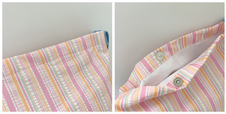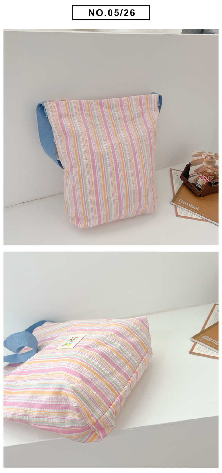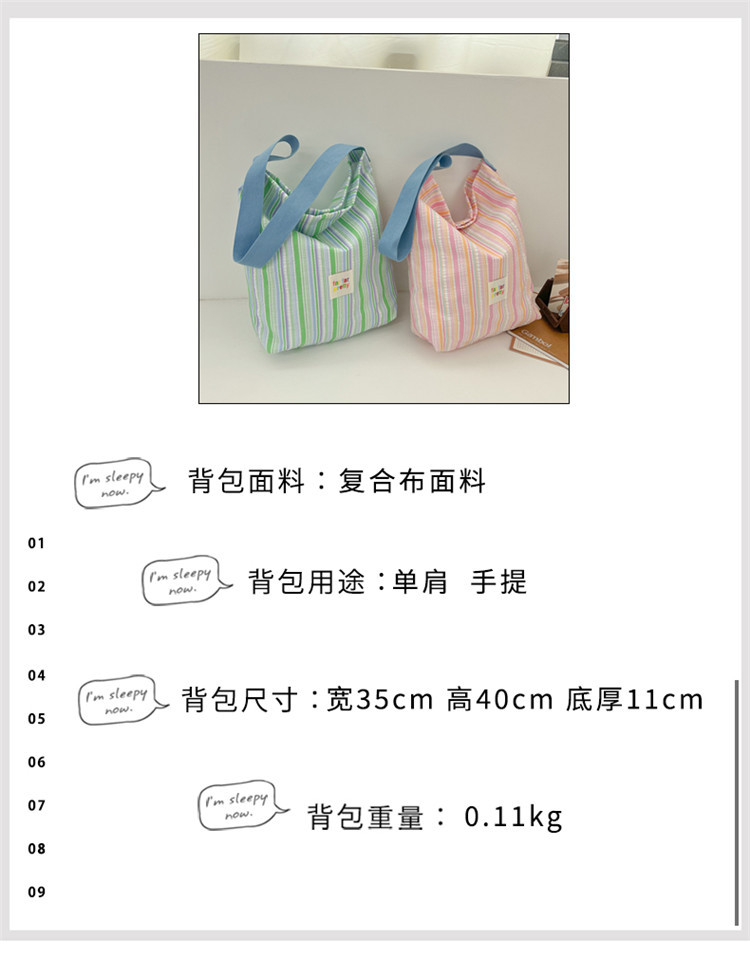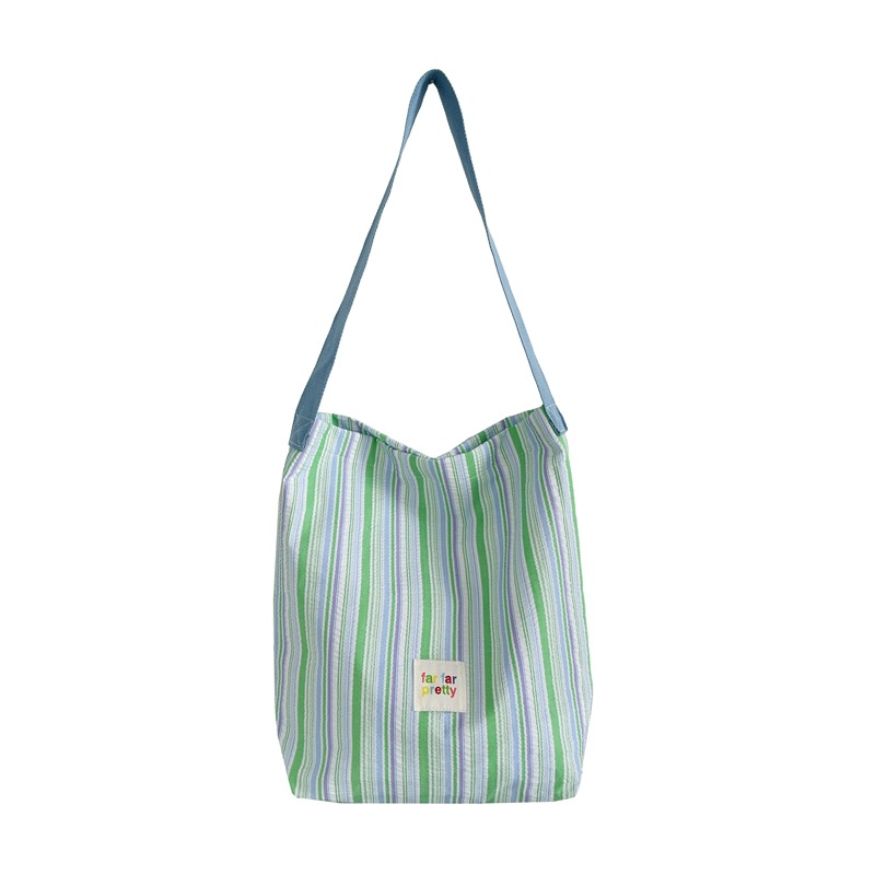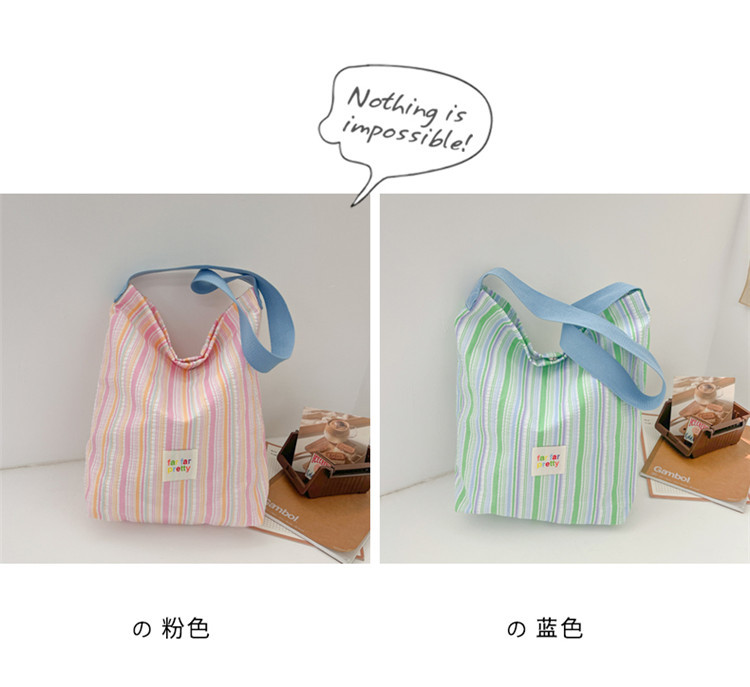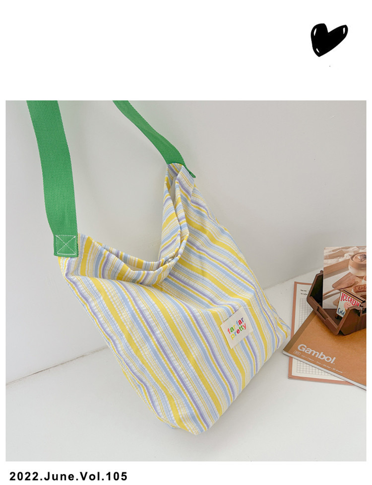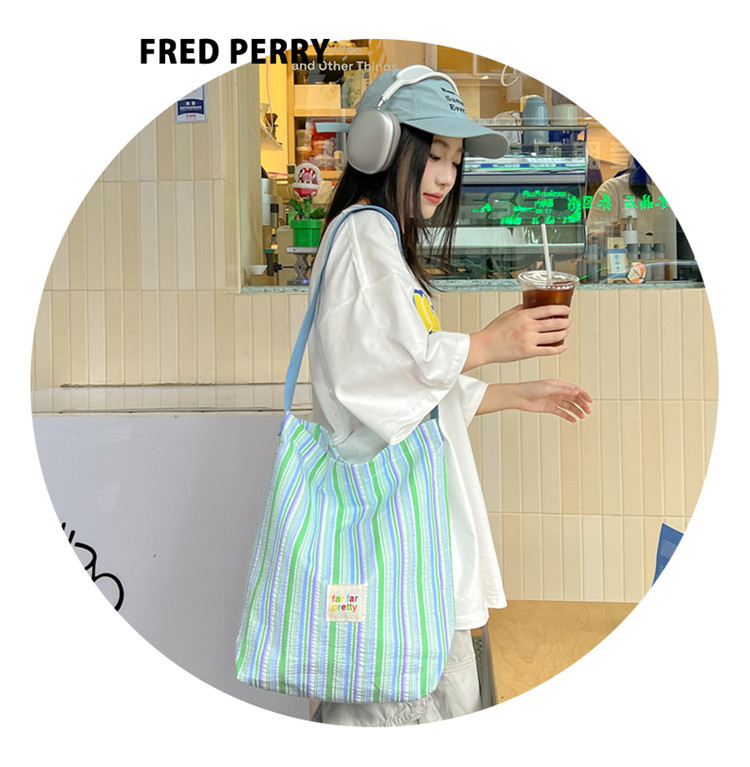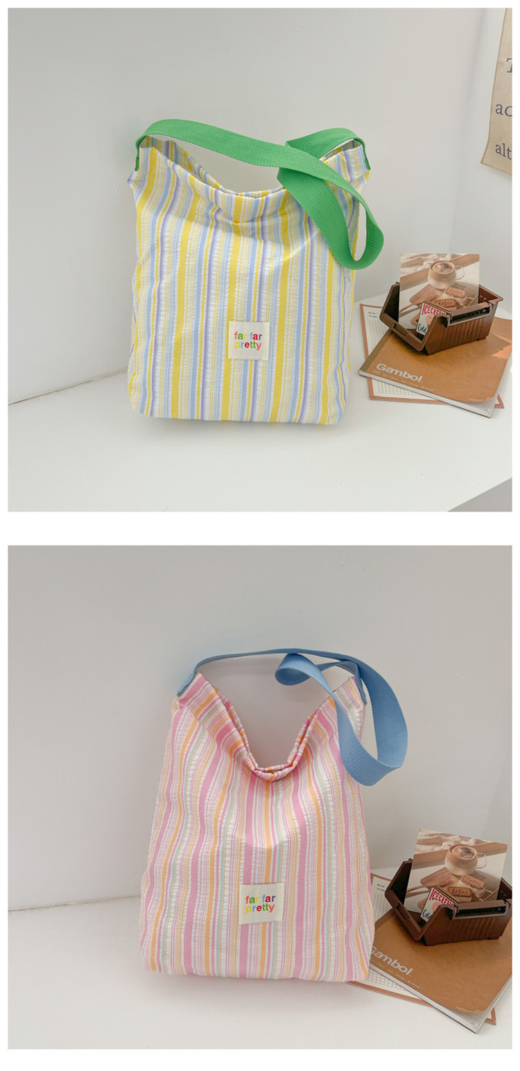 한국 스타일 유행 토트 어깨 가방 2024 새로운 스타일 줄무늬 어깨 가방 간단한 콘트라스트 캔버스 크로스 백 여성스토어 가기