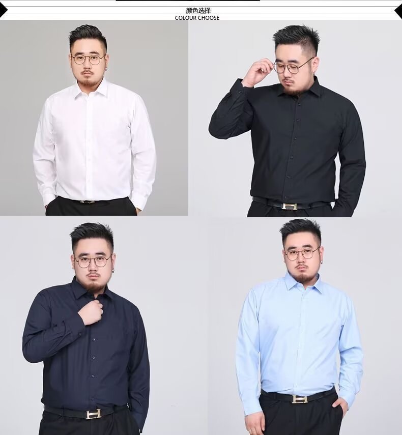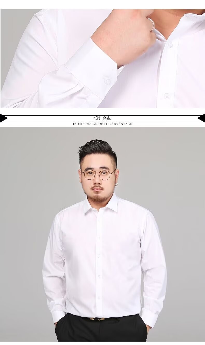 뚱뚱한 남자의 대형 긴팔 흰색 셔츠 남자 비즈니스 정장 플러스 지방 확대 셔츠 느슨한 철제 뚱뚱한 남자 작업 셔츠스토어 가기