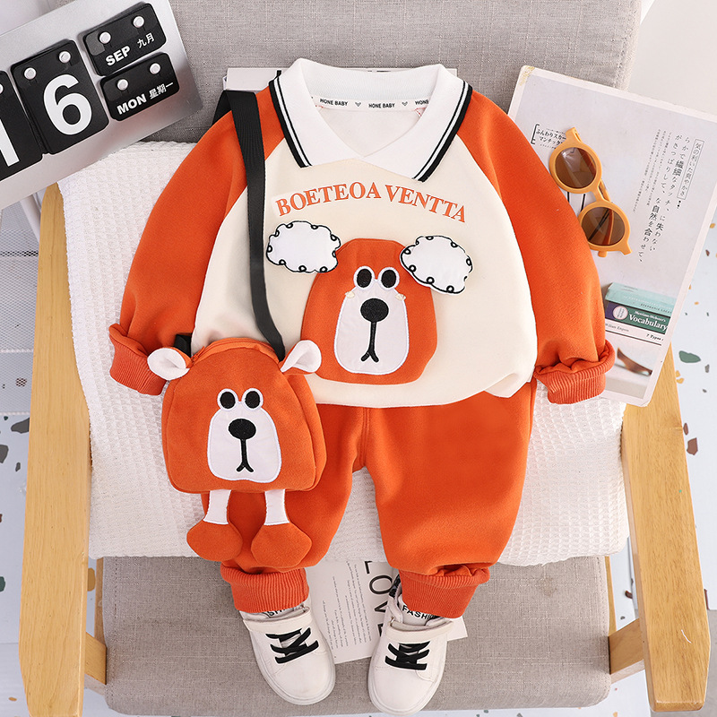 • 오렌지색 풋백 곰 긴팔 투피스 세트