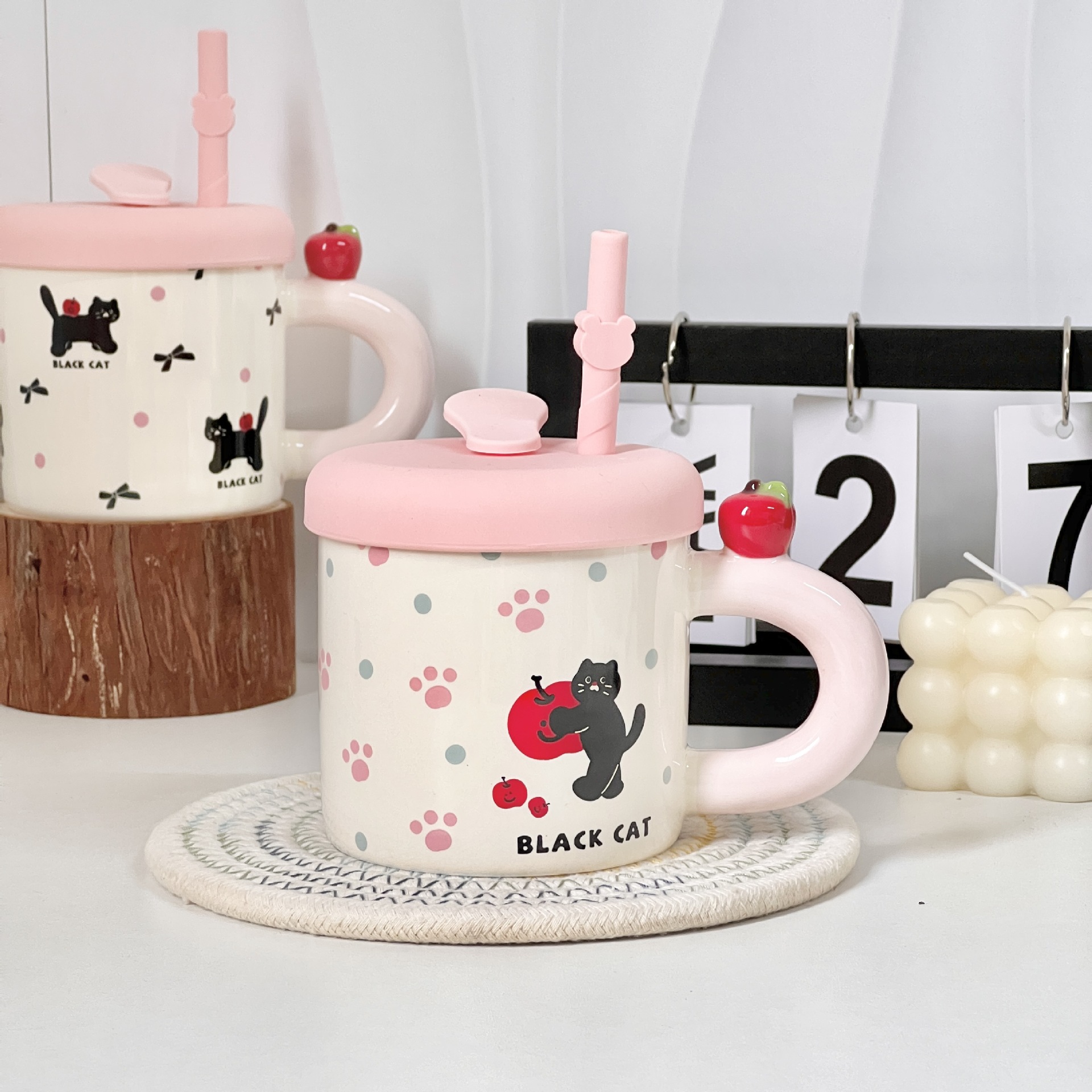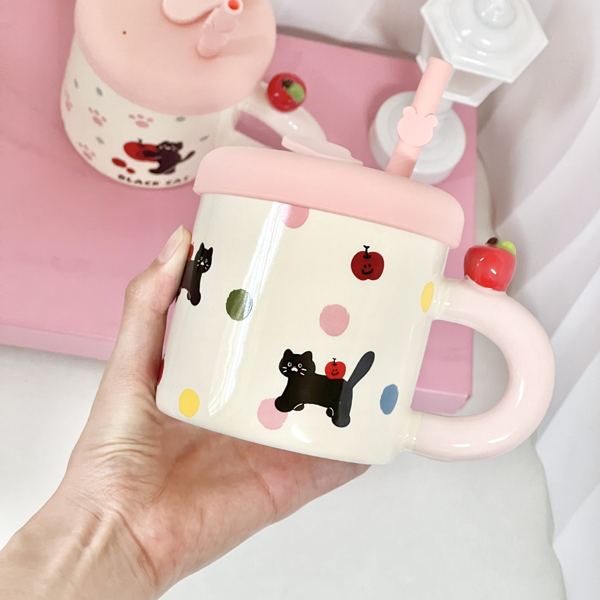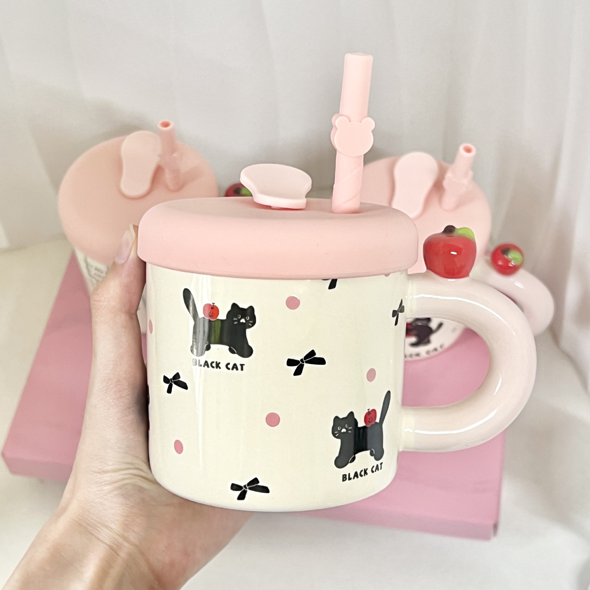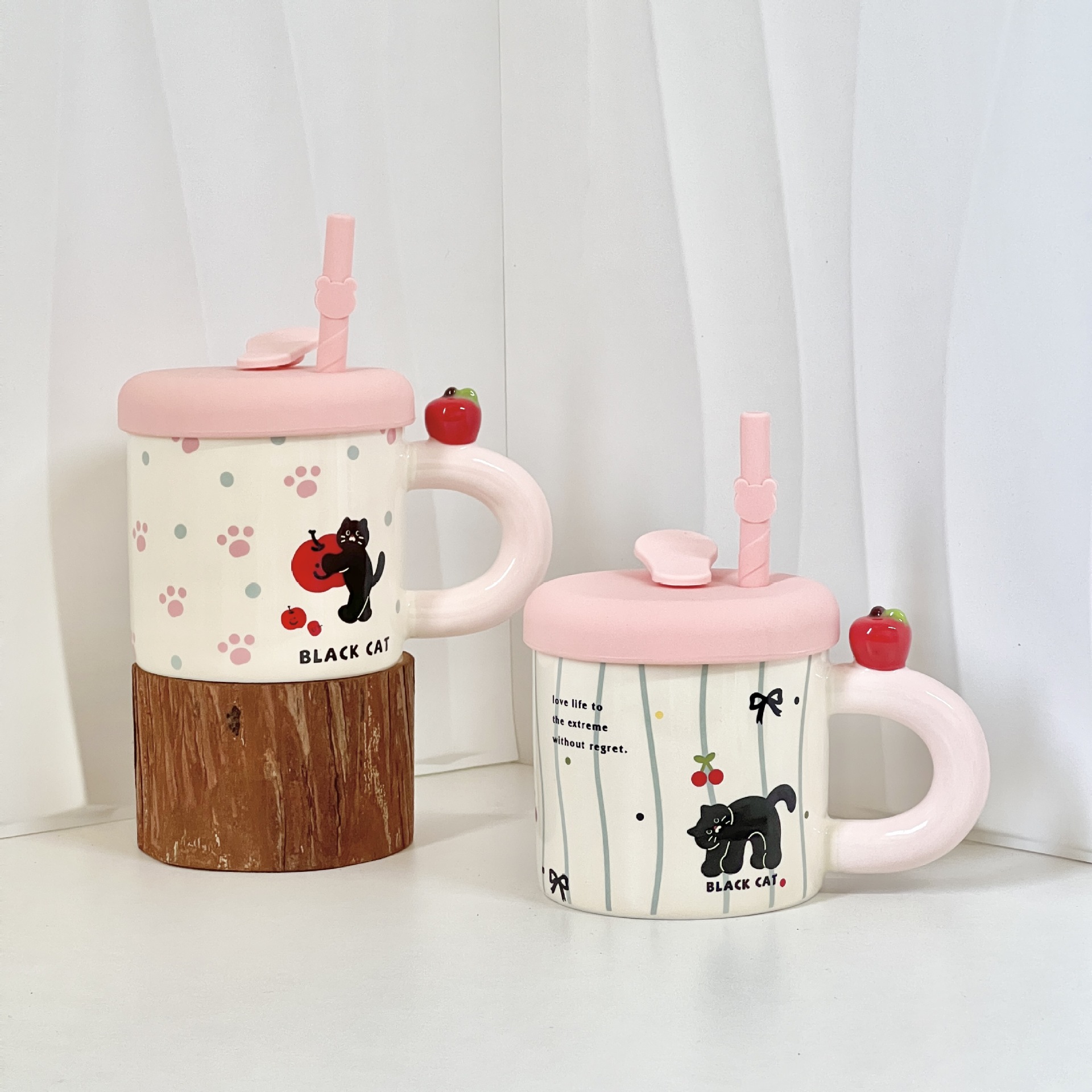 여자친구 생일 선물, 여자아이들을 위한 뚜껑과 빨대가 있는 머그컵, 소녀 감성 컵 선물세트스토어 가기
