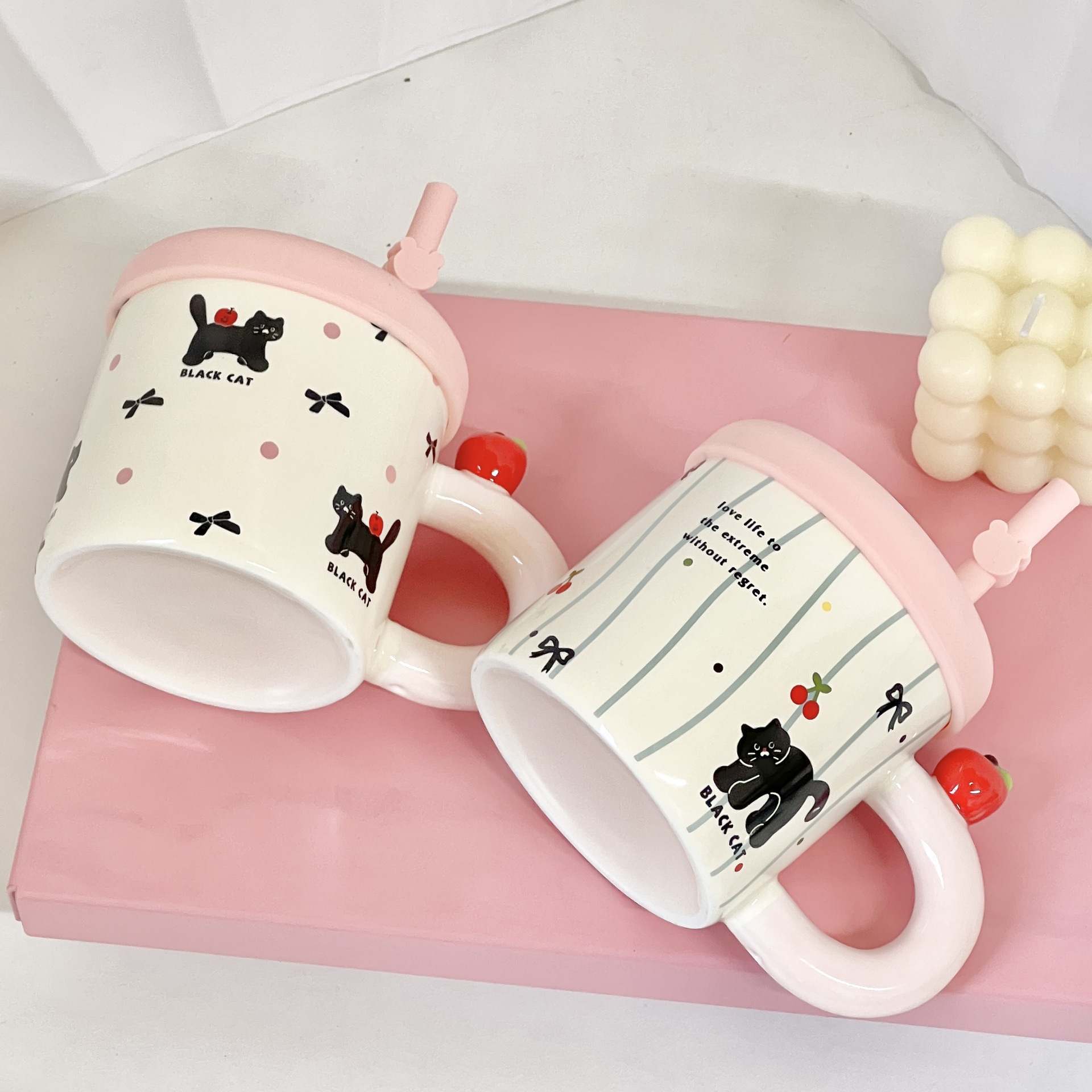 여자친구 생일 선물, 여자아이들을 위한 뚜껑과 빨대가 있는 머그컵, 소녀 감성 컵 선물세트